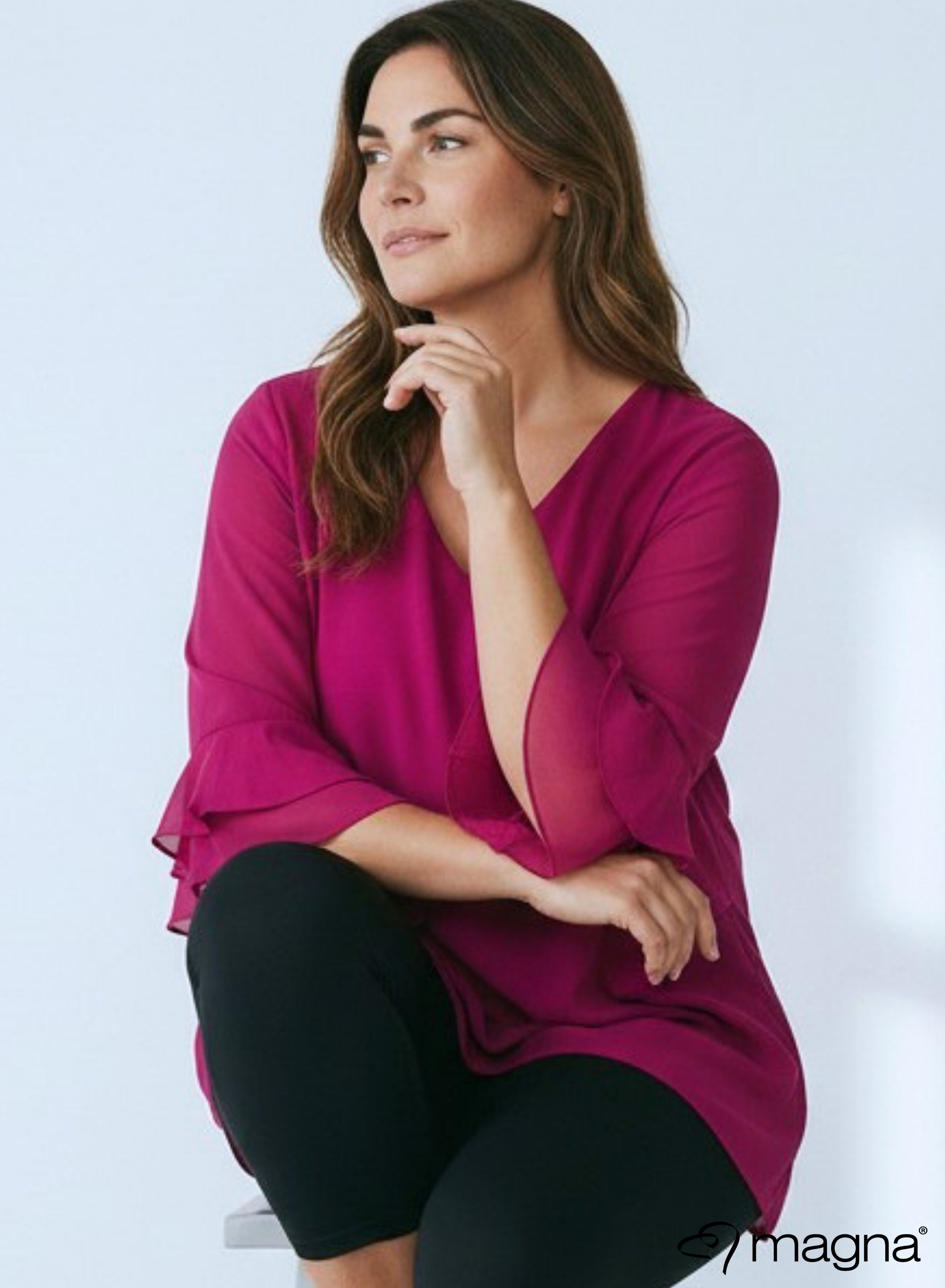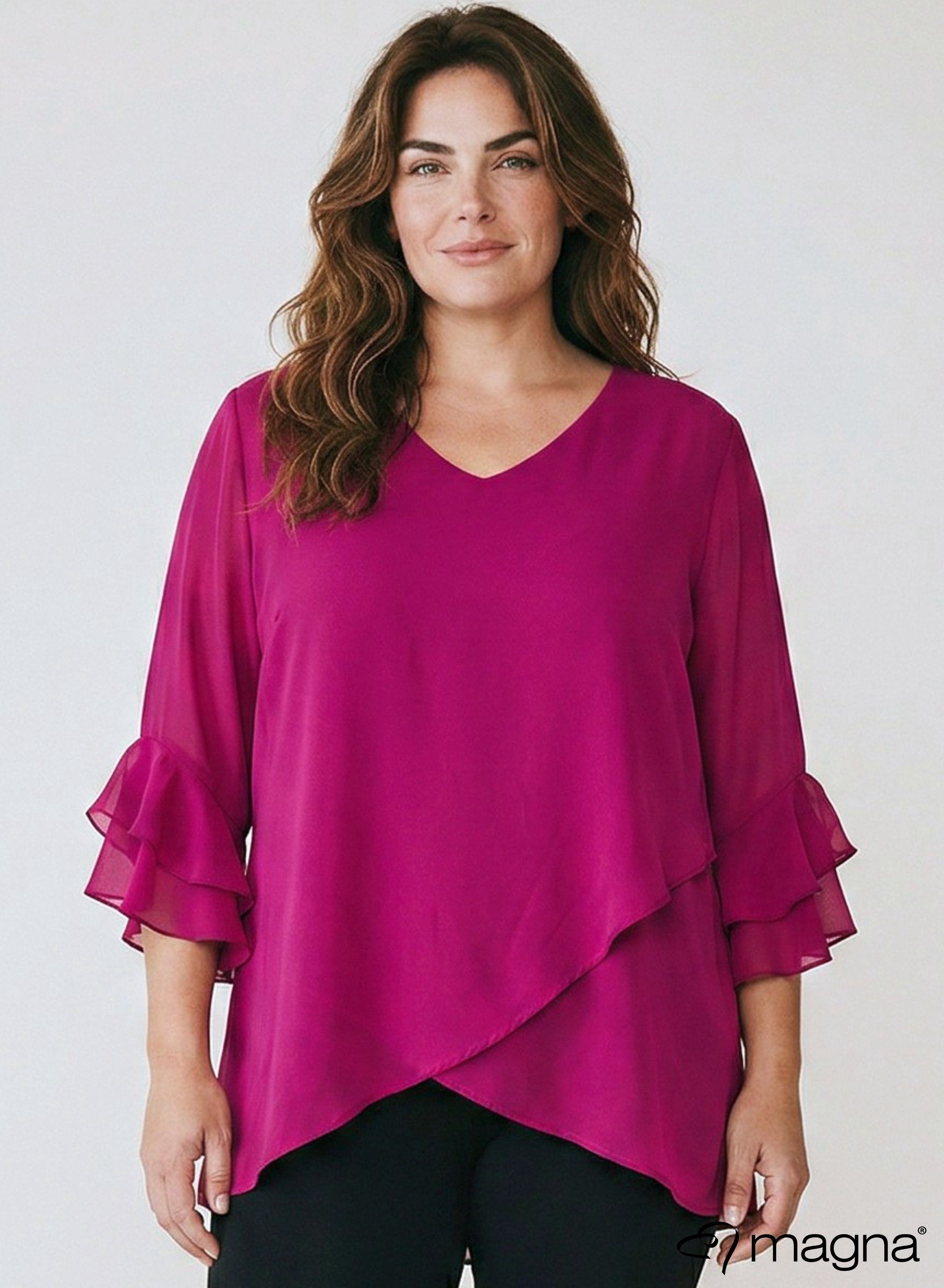 Magna Gelaagde Chiffon Blouse Magenta