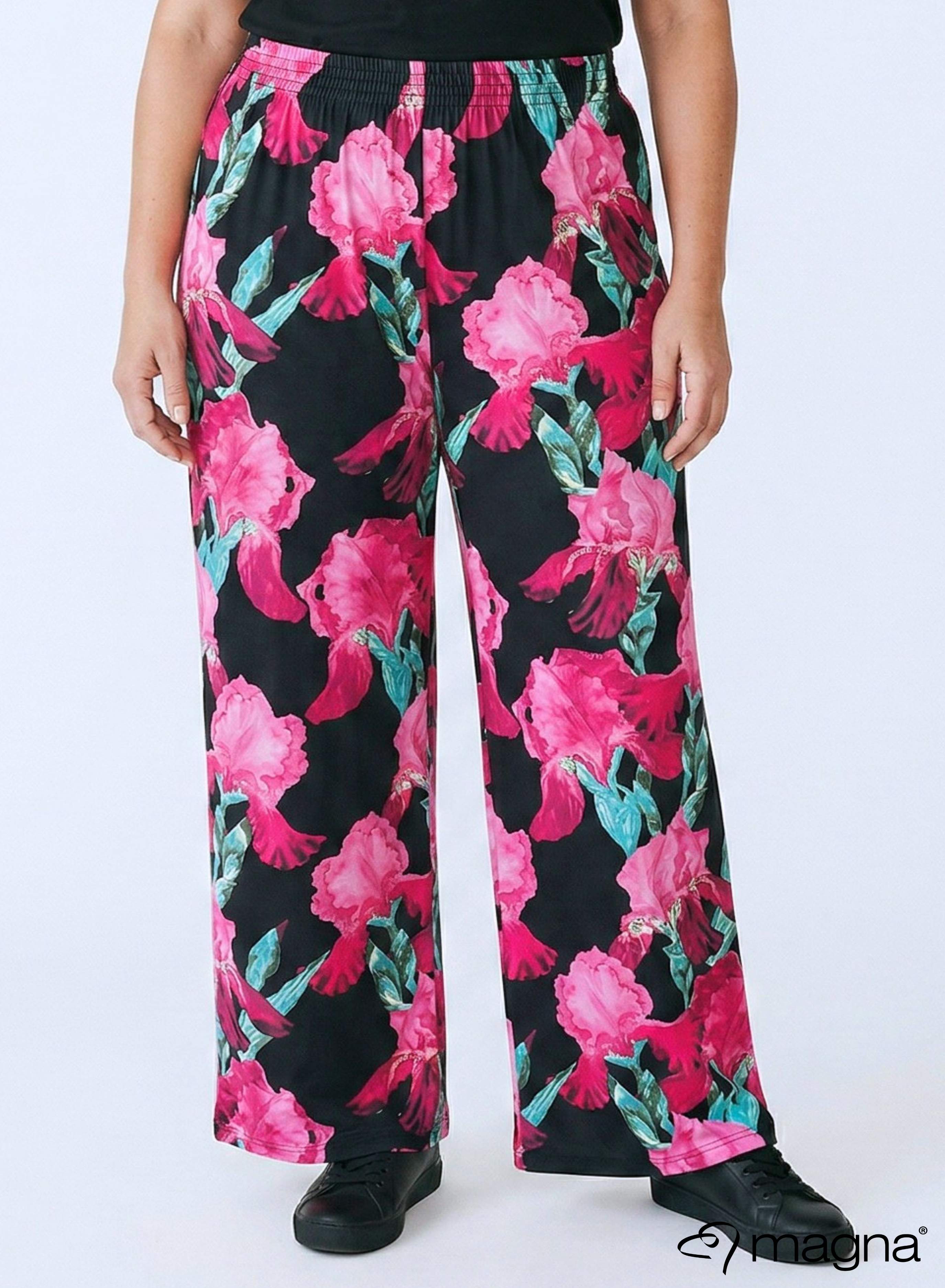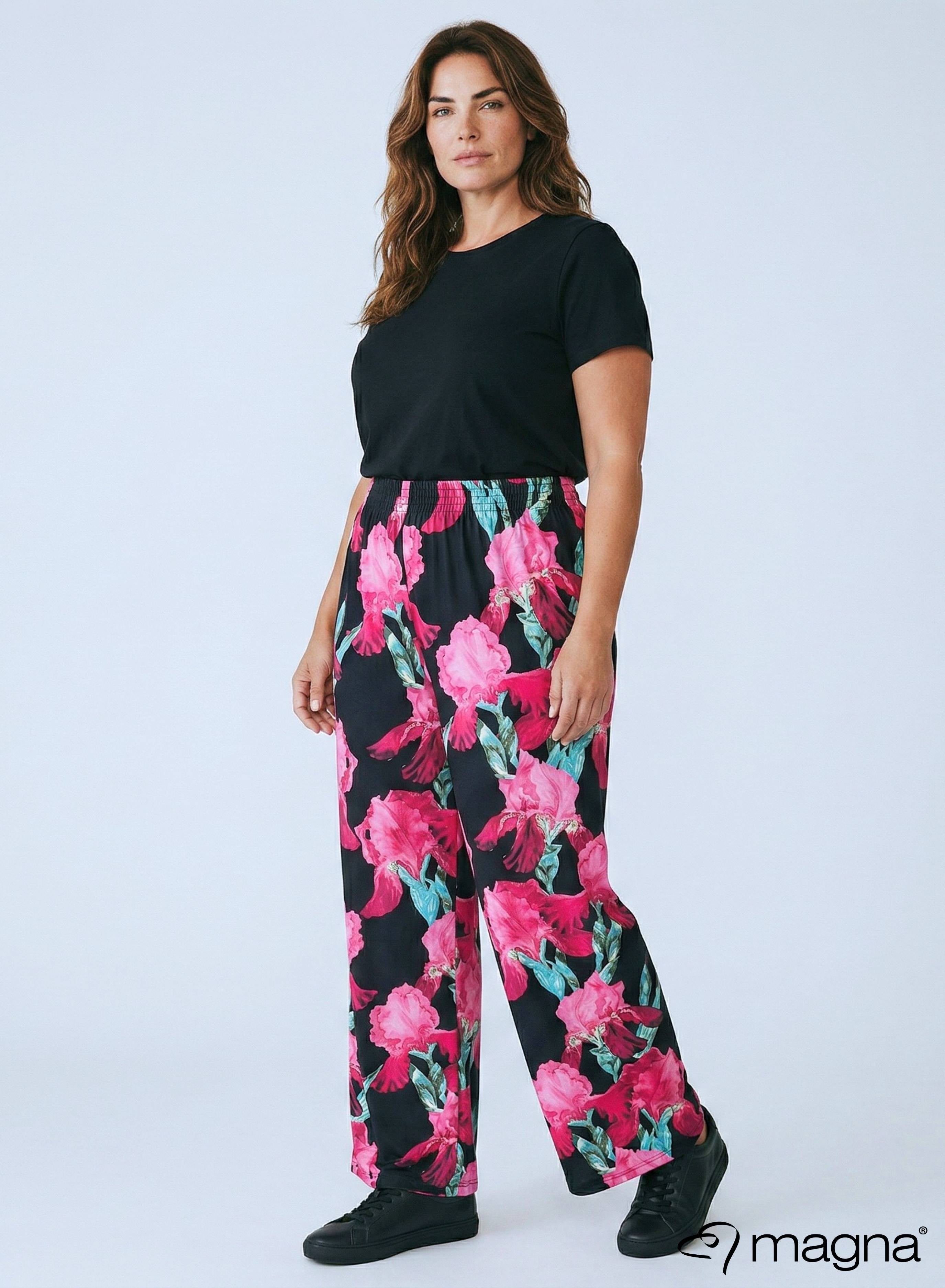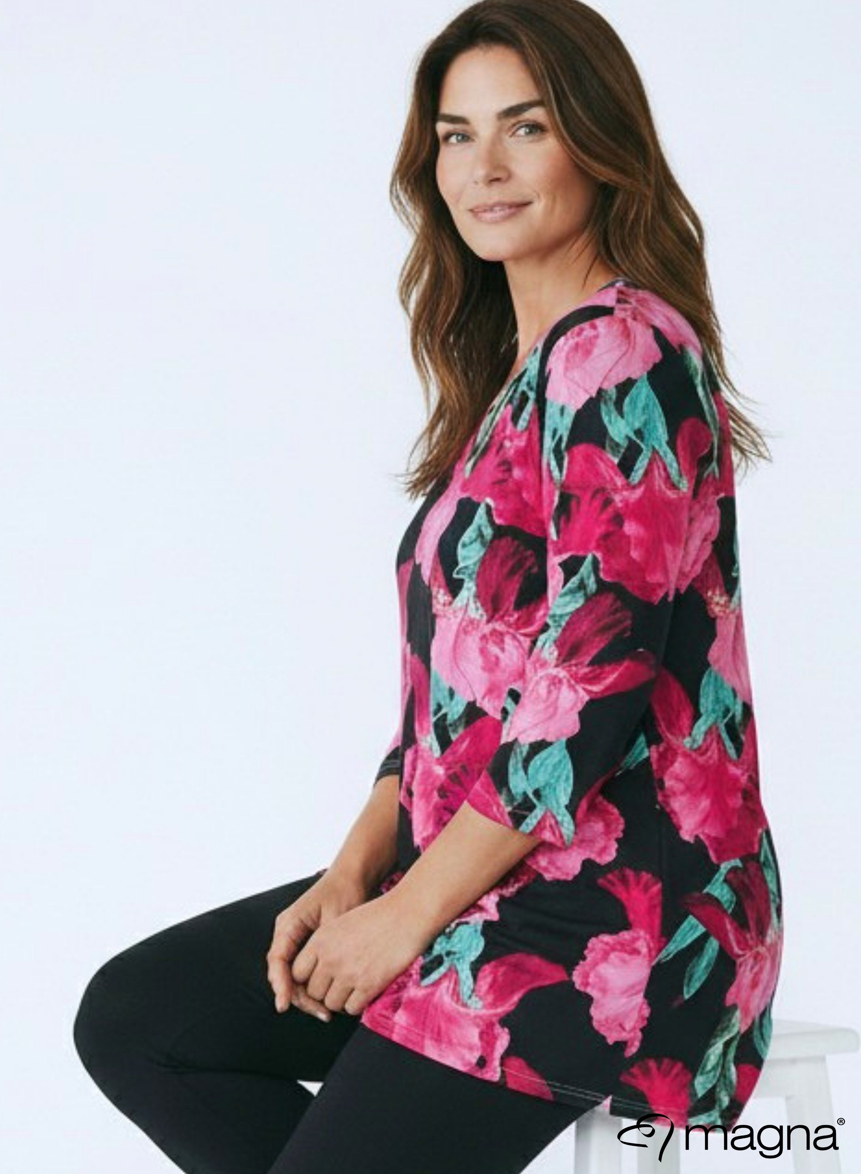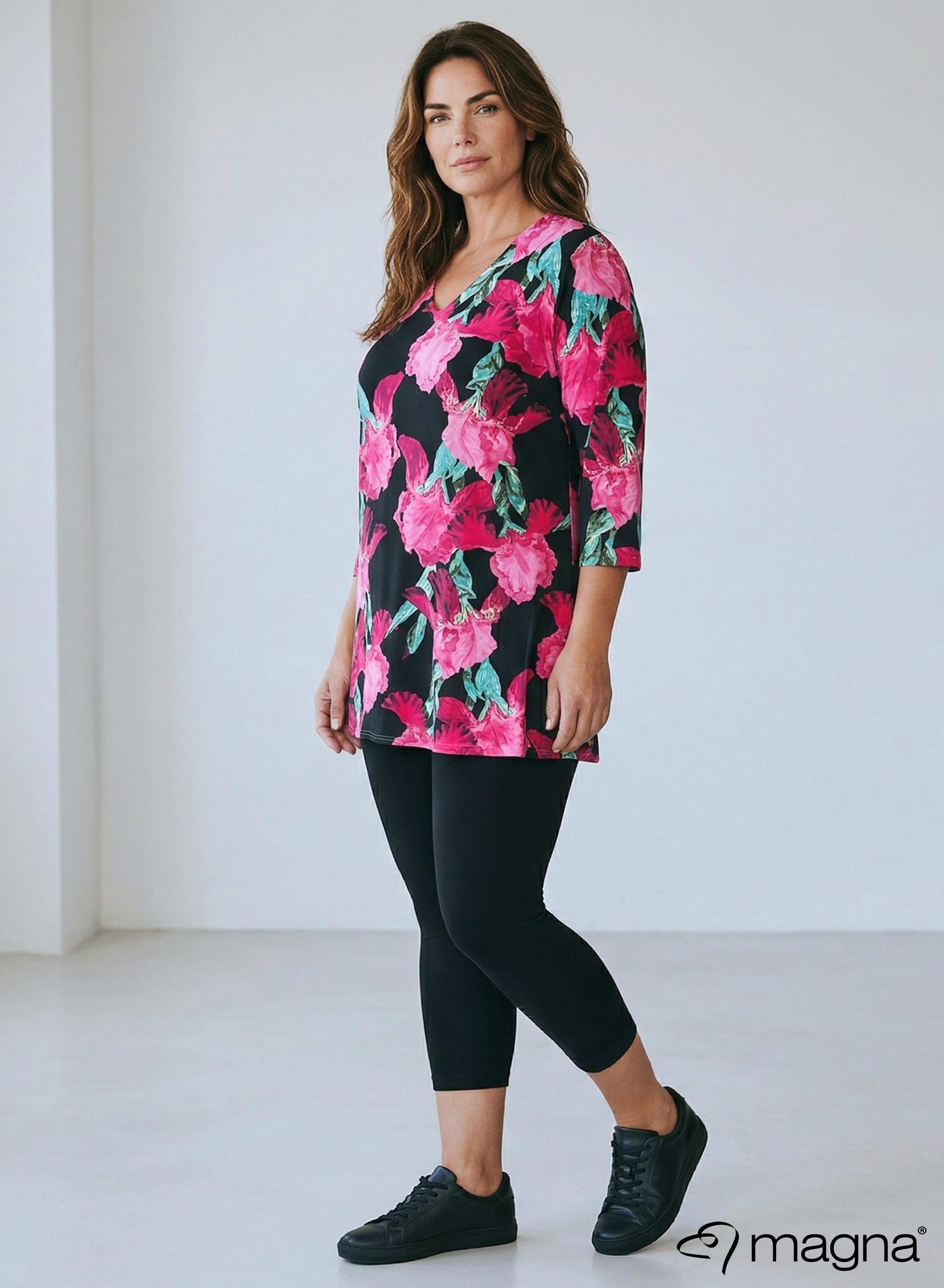 Magna A-lijn Lang Shirt / Tuniek Magenta Groen Bloemenprint
