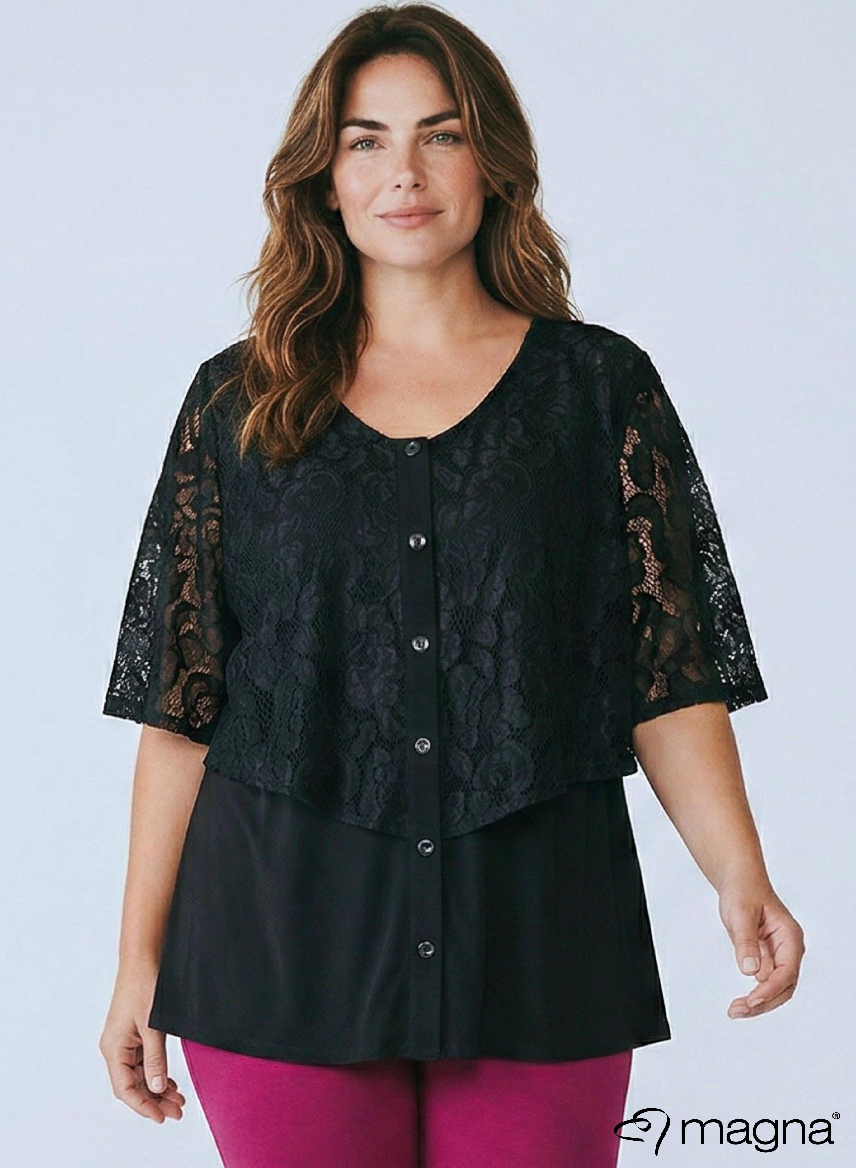 Magna Geplooide Chiffon Blouse Zwart