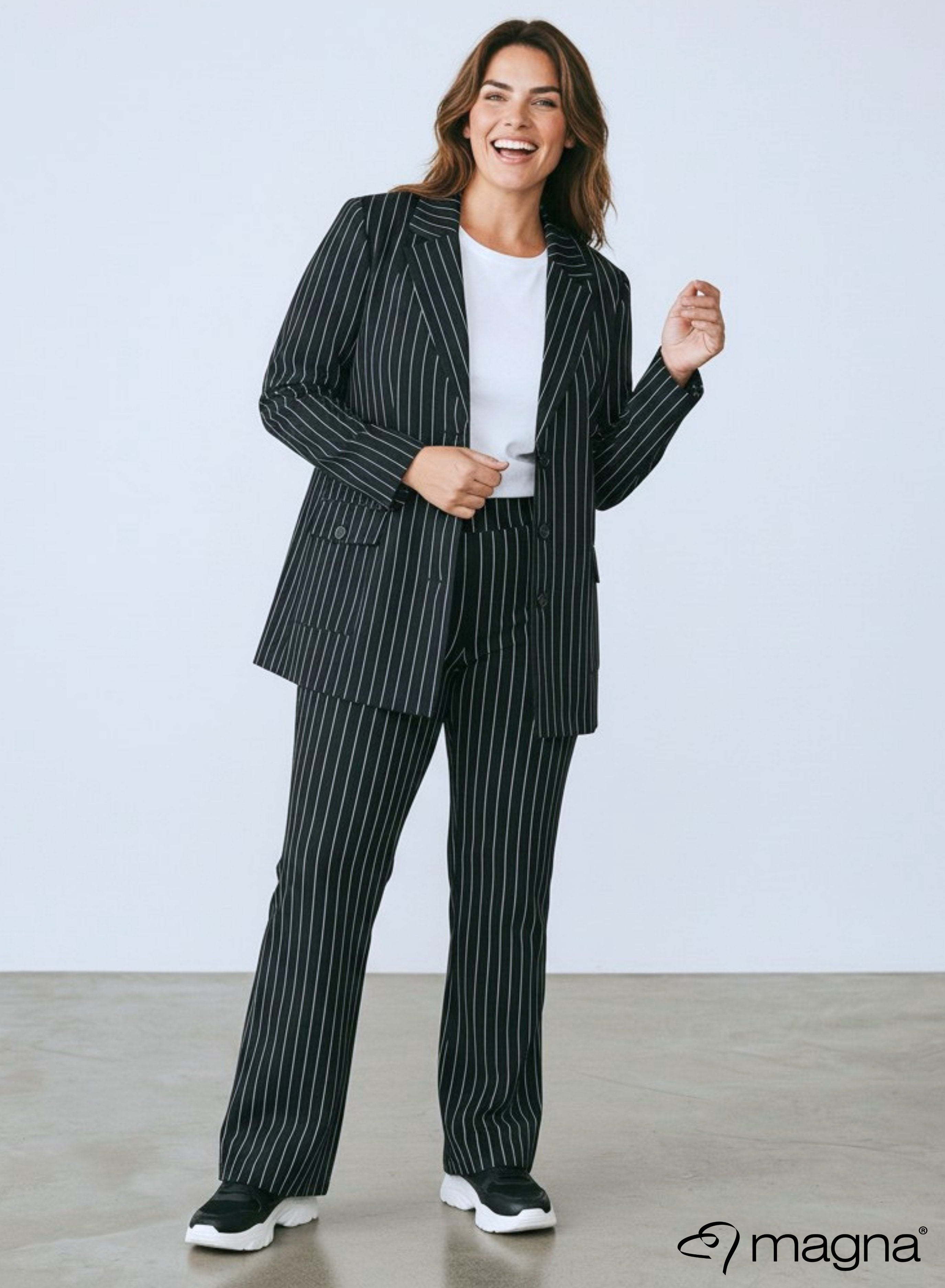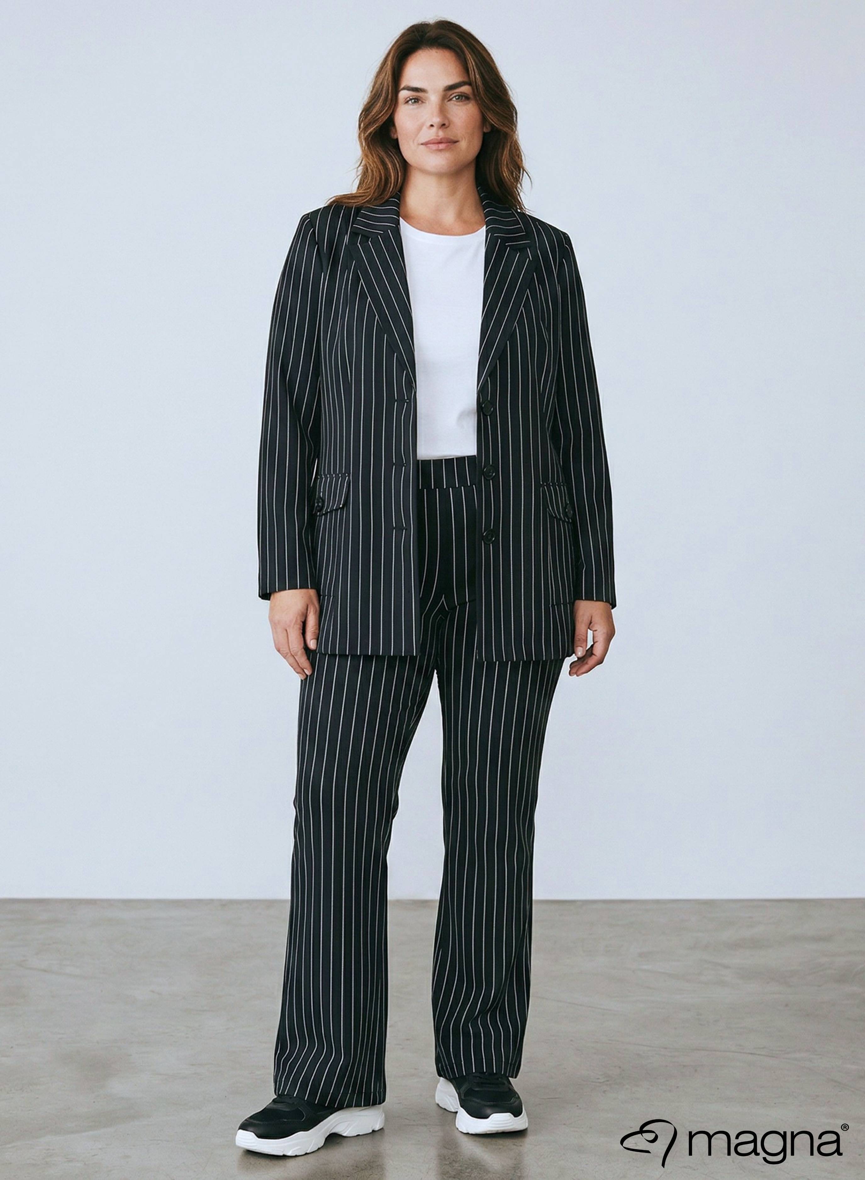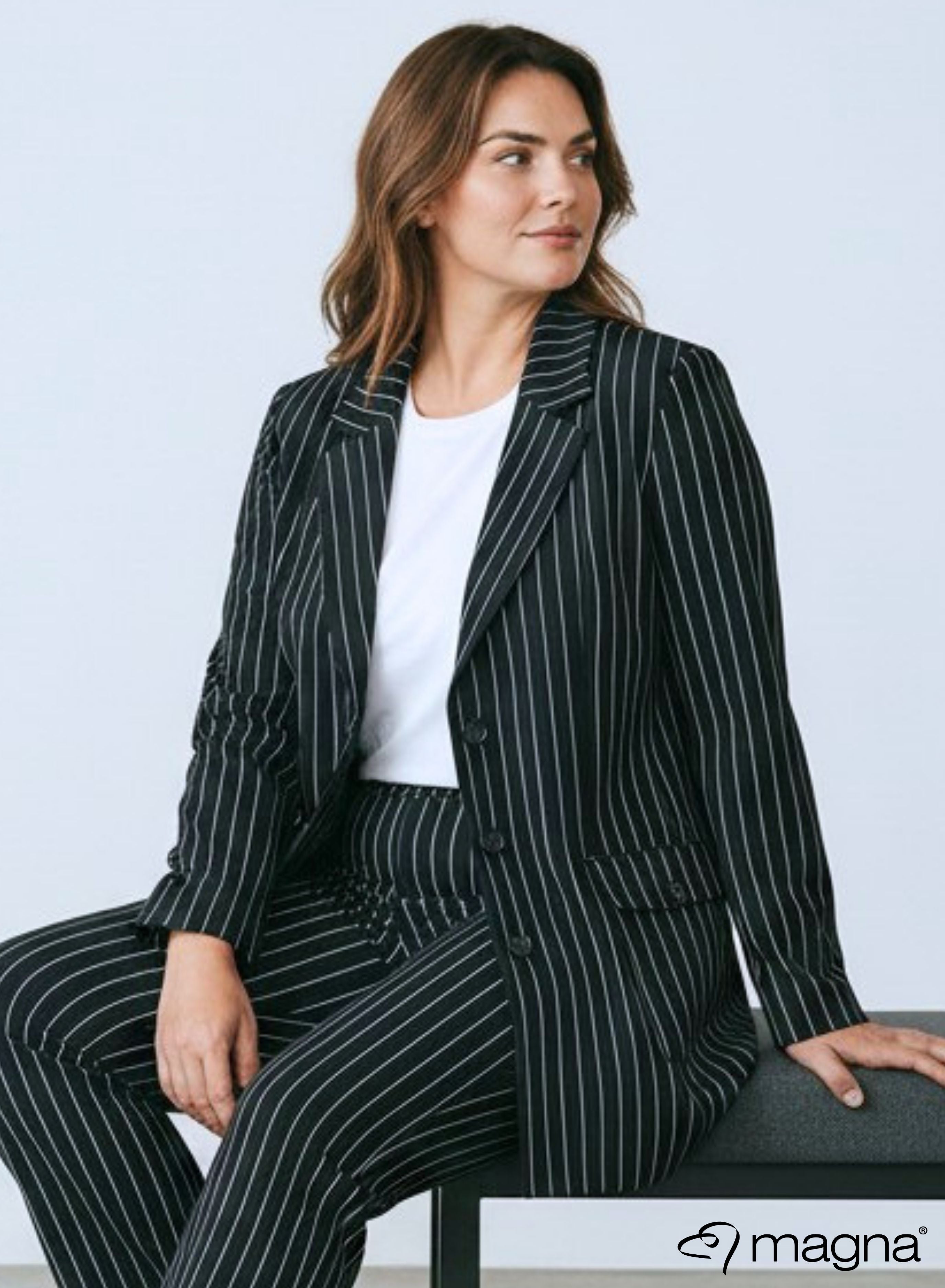 Magna Rekbare Zware Blazer Pinstripe Zwart