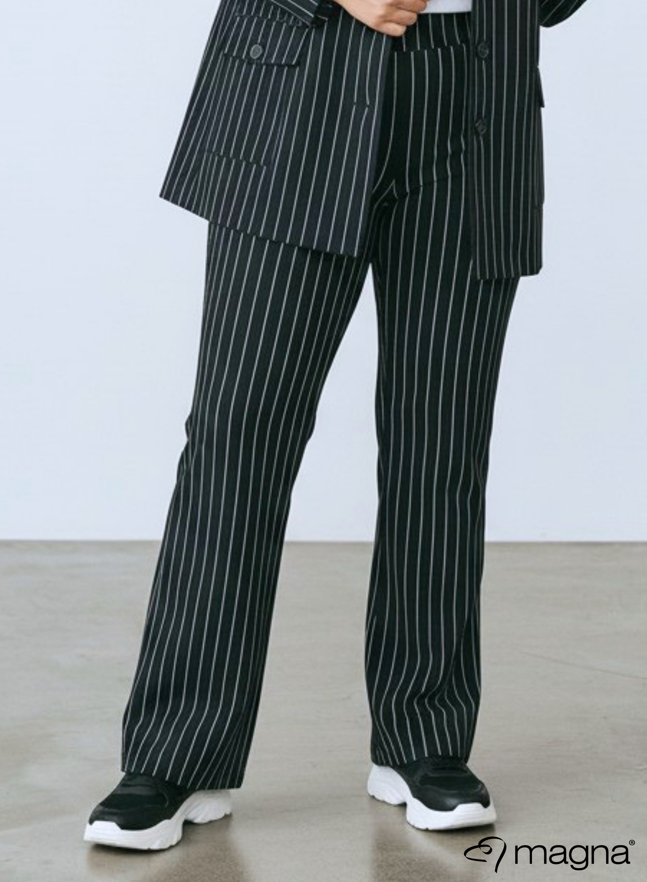 Magna Relaxed Broek met Zakken en Uitlopende Pijpen Pinstripe Zwart