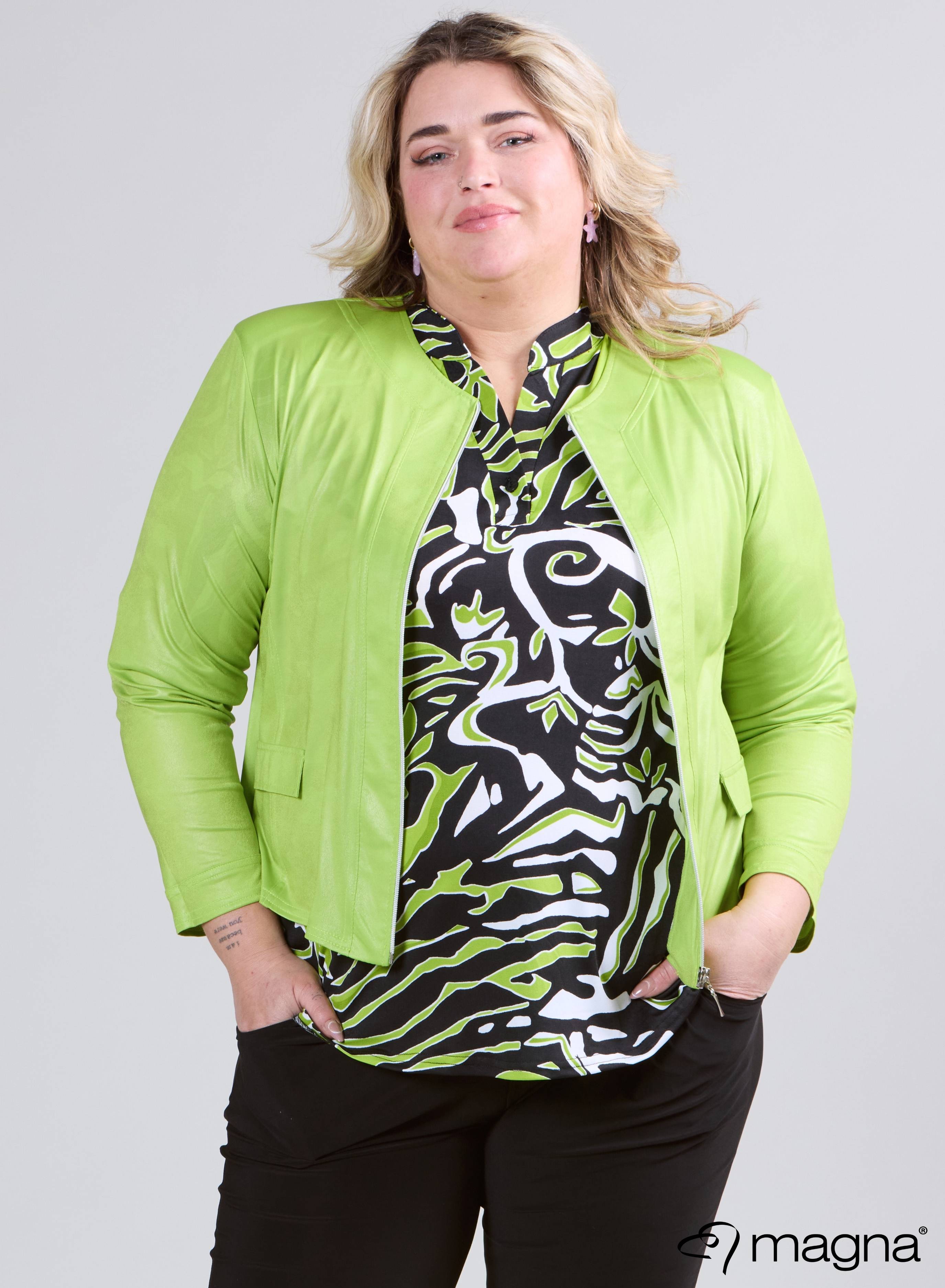 Magna lederlook Jasje L. Khaki