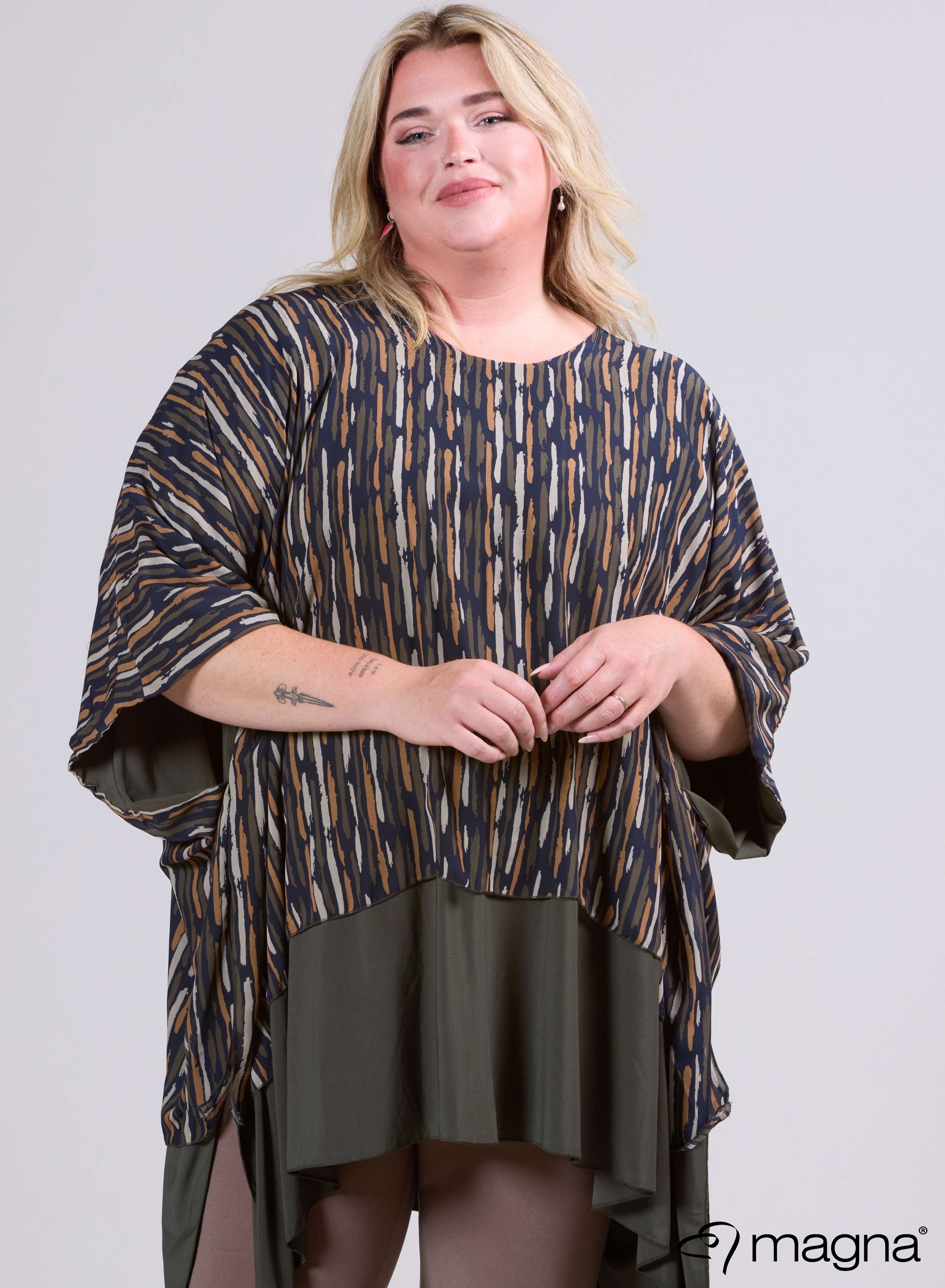 Magna Warme Lange Cover Bloklijnen Zwart/Blauw