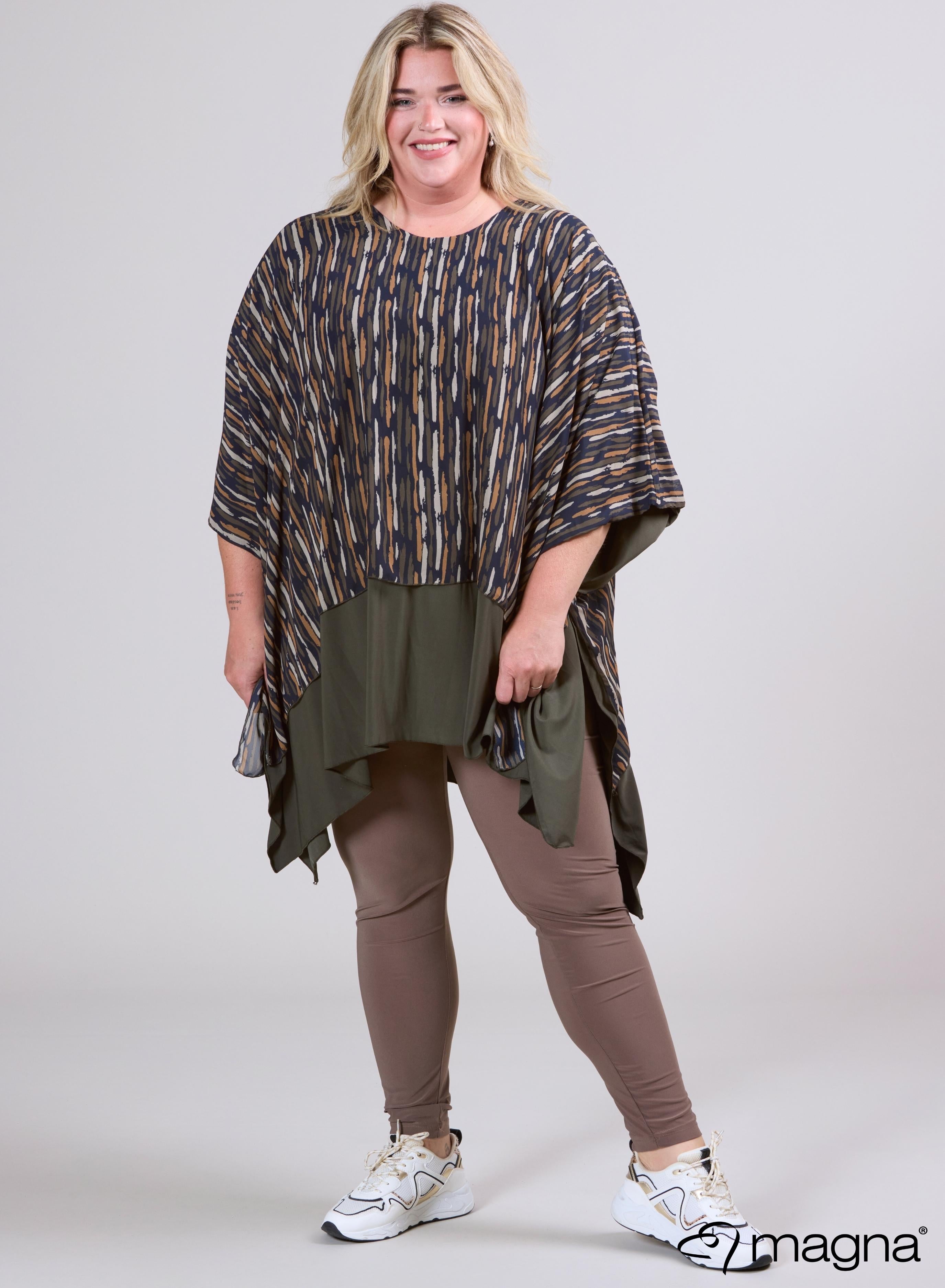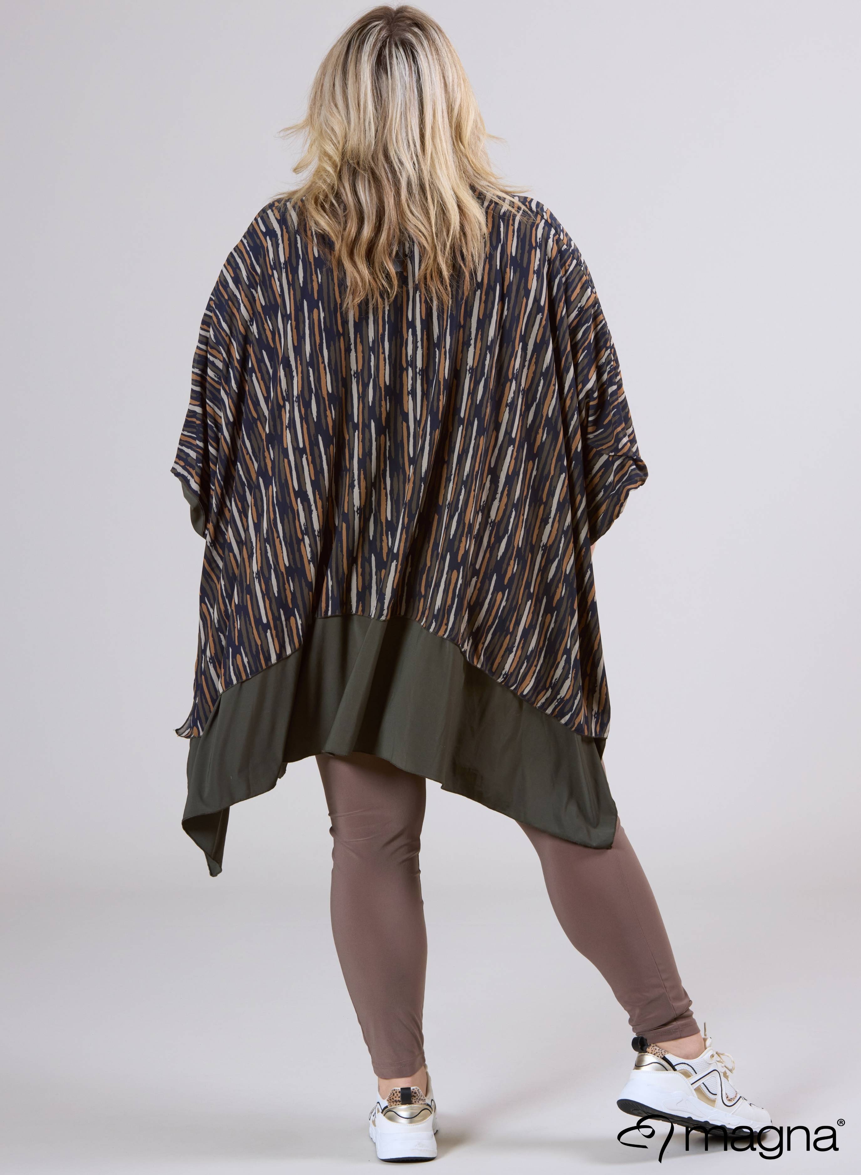 Zeffa Oversized Tunic Poncho with Buttons Herringbone Taupe