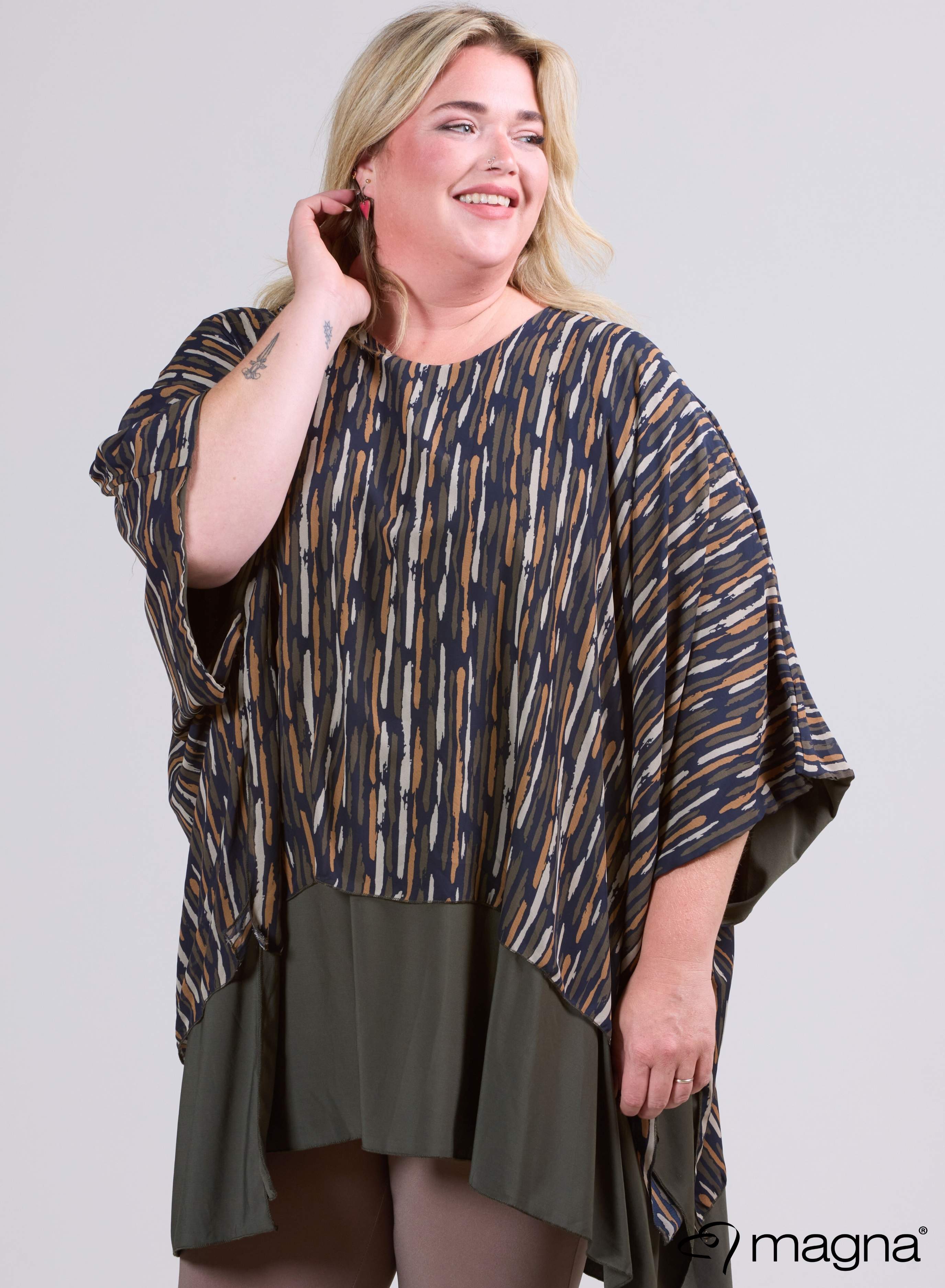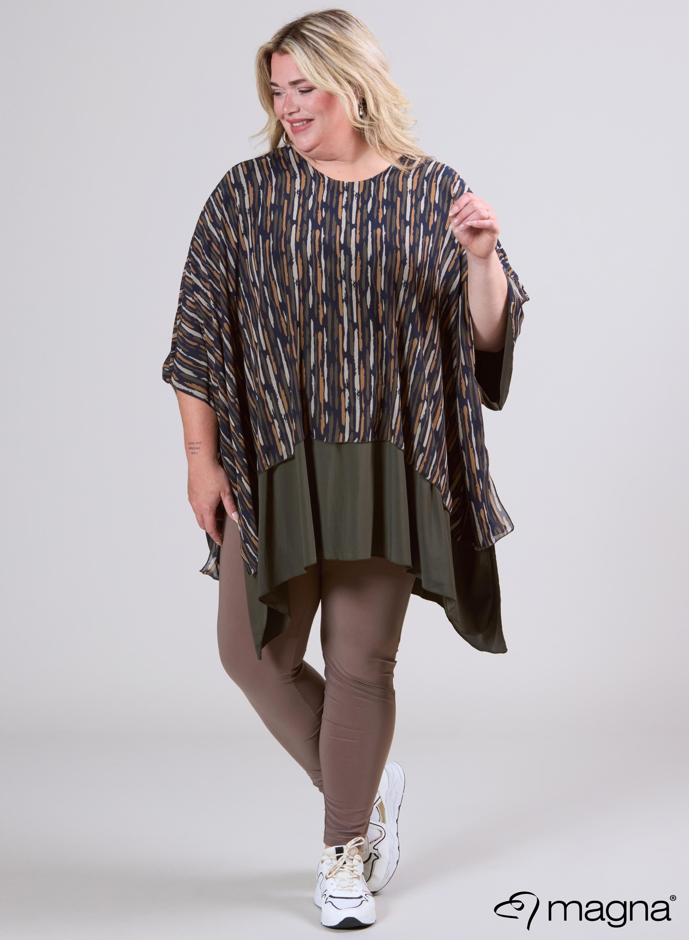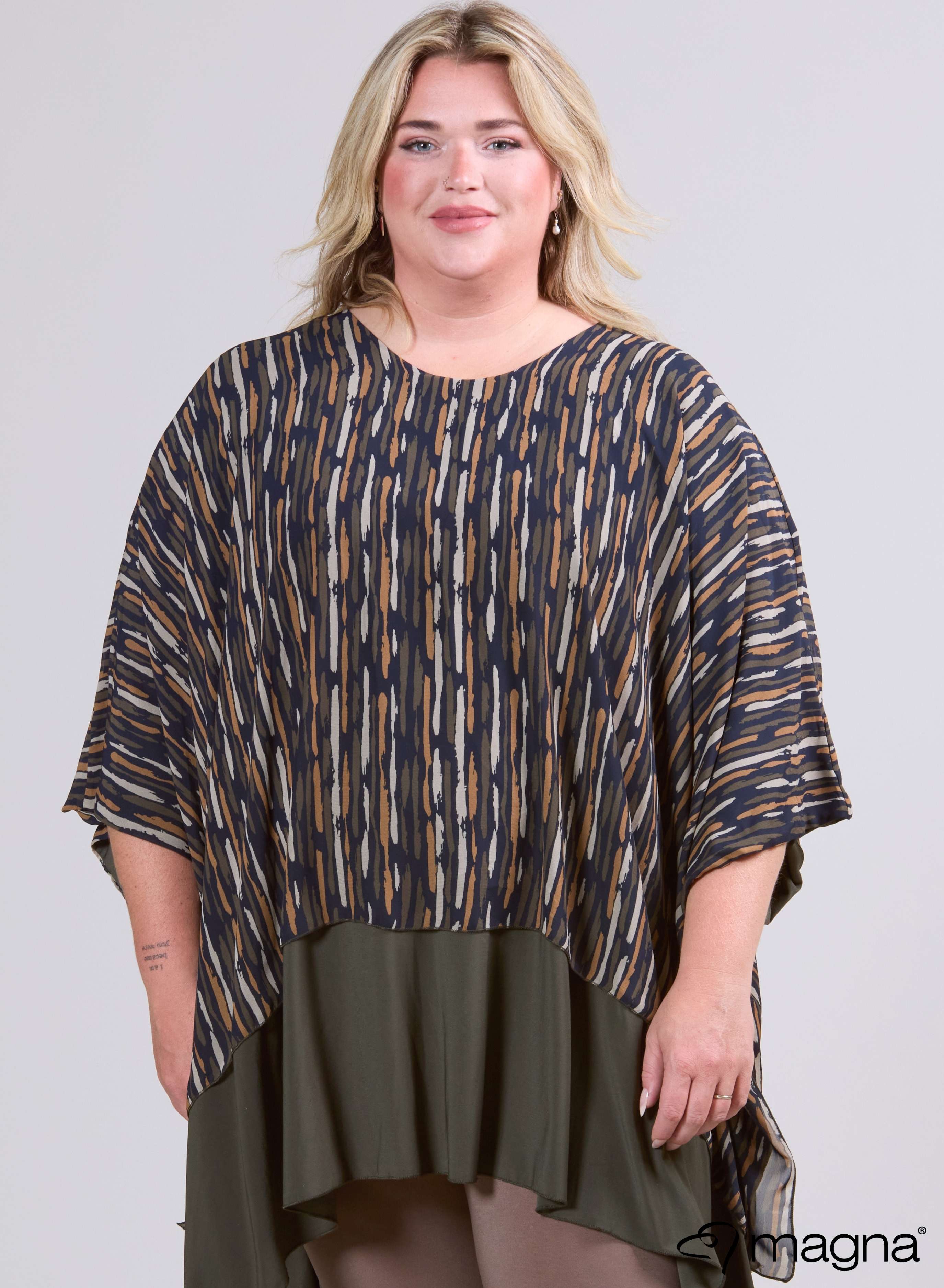 Magna Geprinte Chiffon Poncho Eén Maat Dubbele Laag Streep Patroon Groen