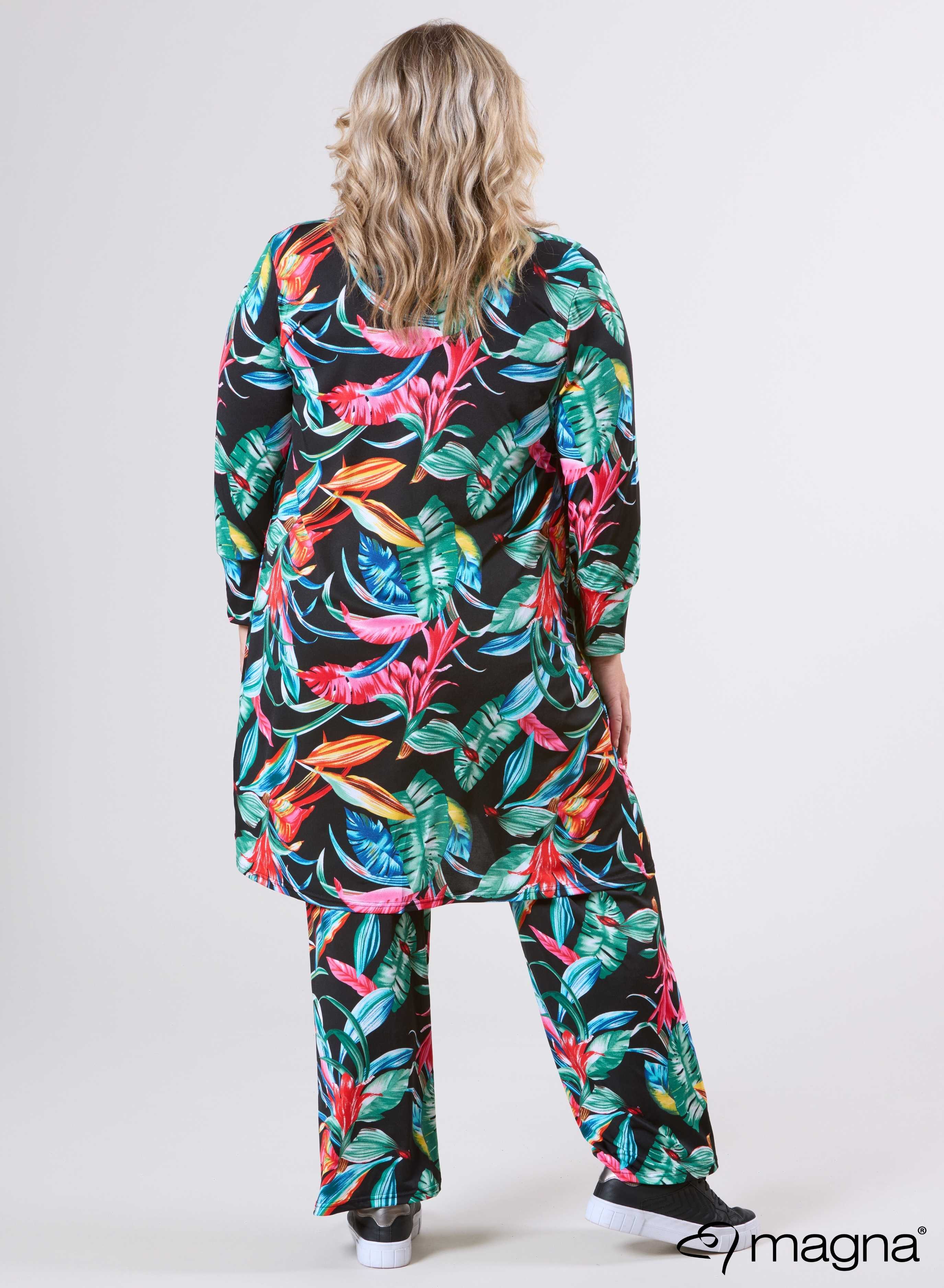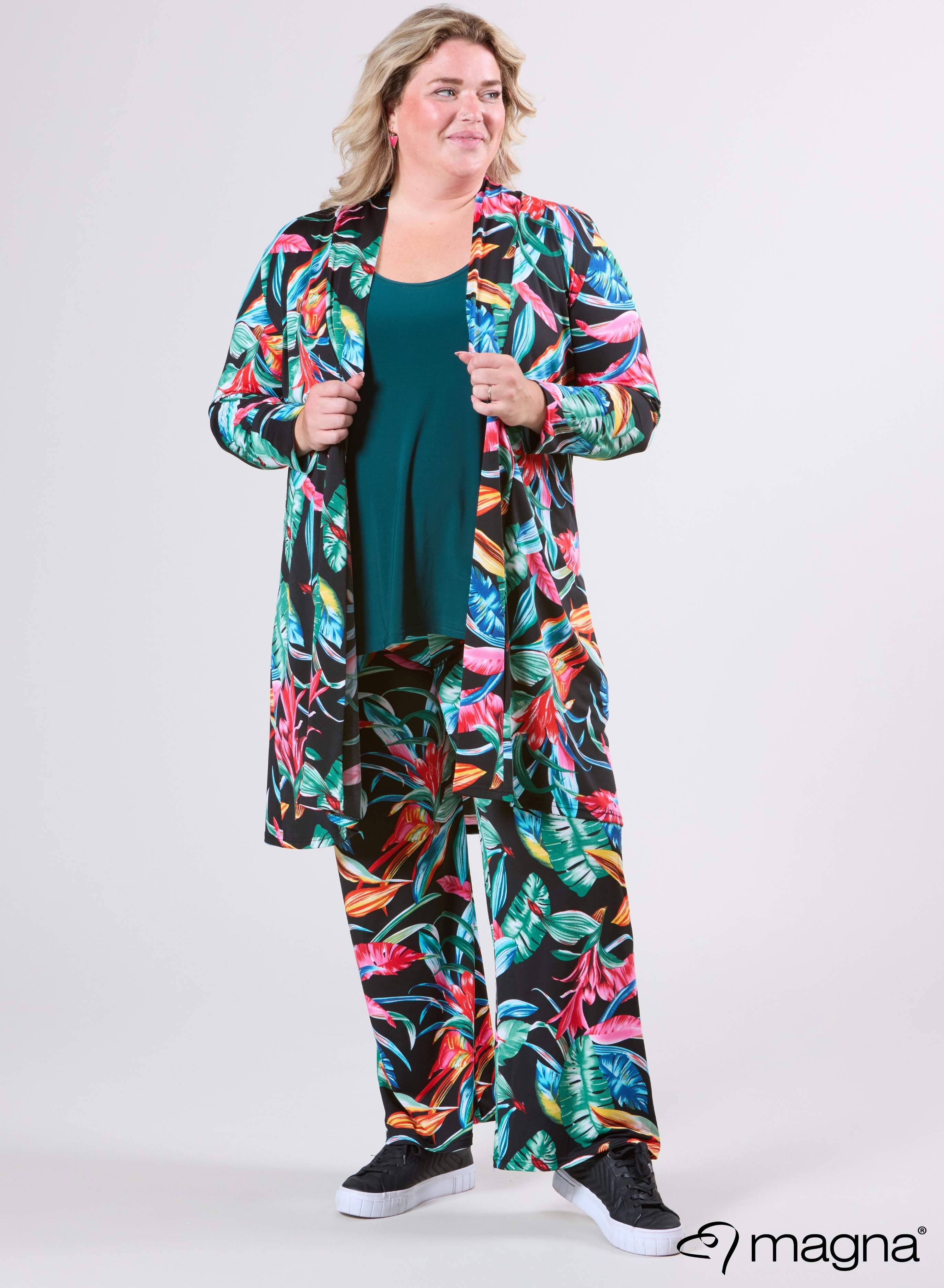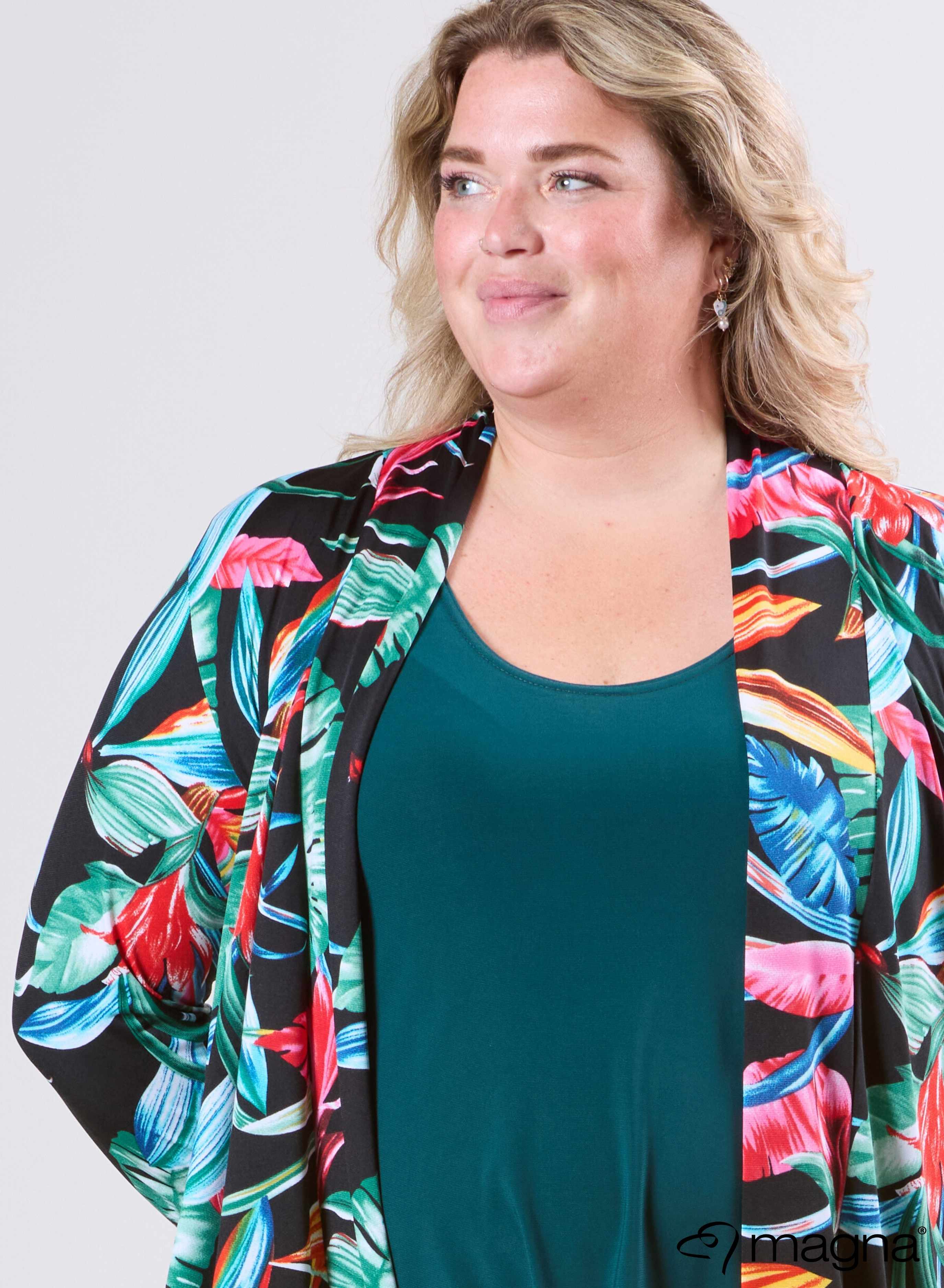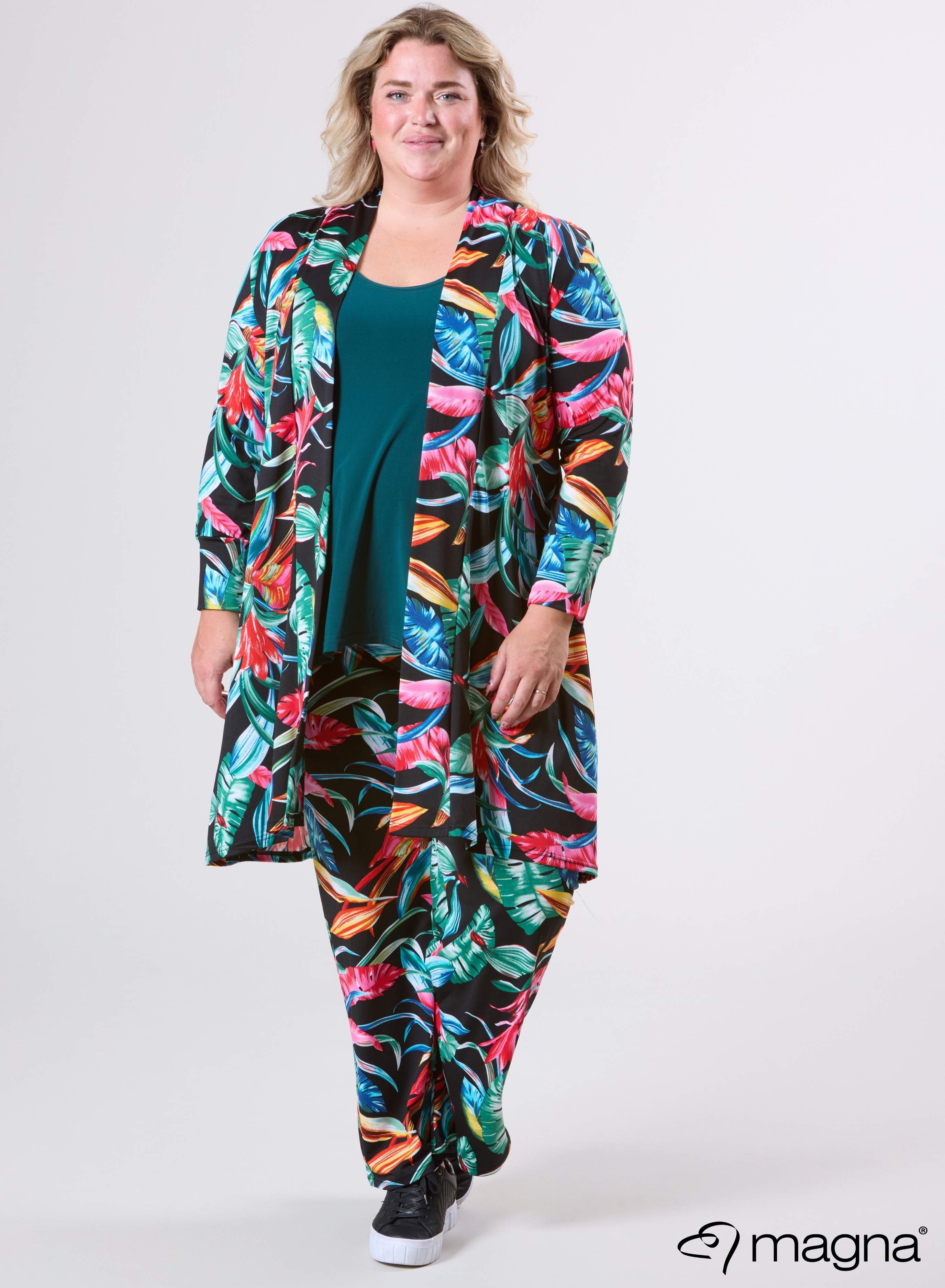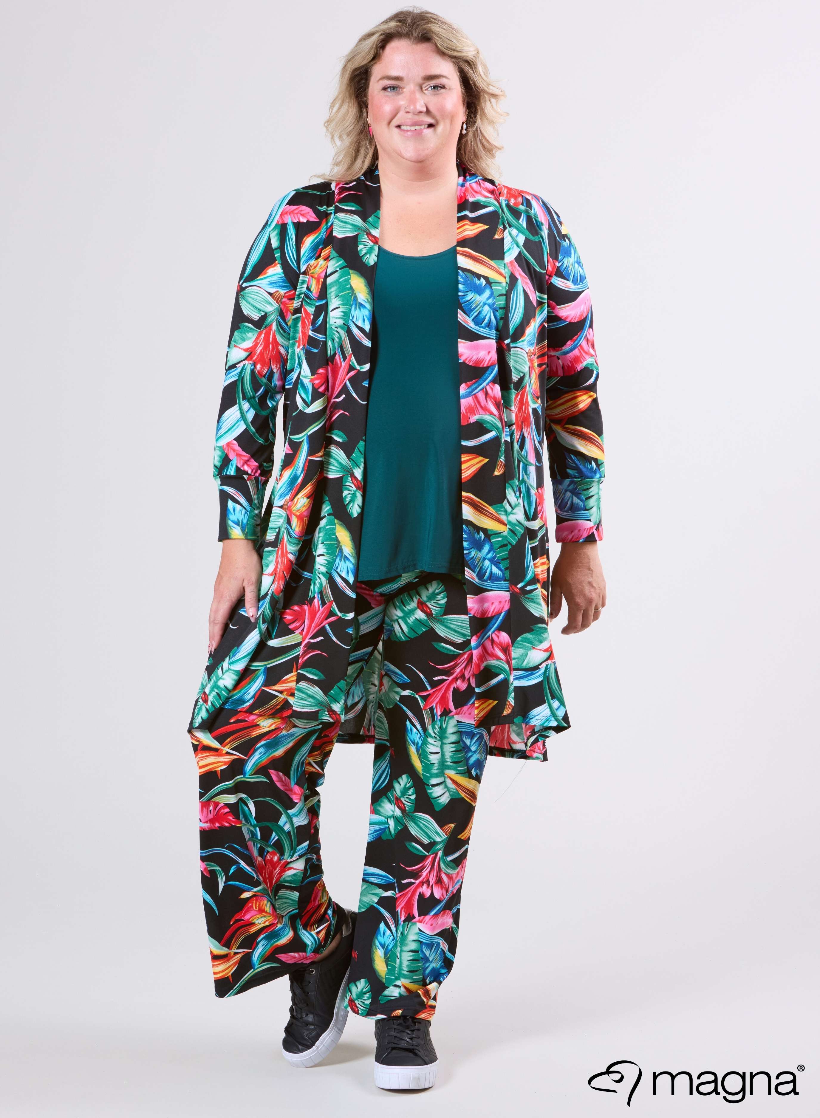 Magna Printed Travel Cardigan Big Leaves Groen Rood