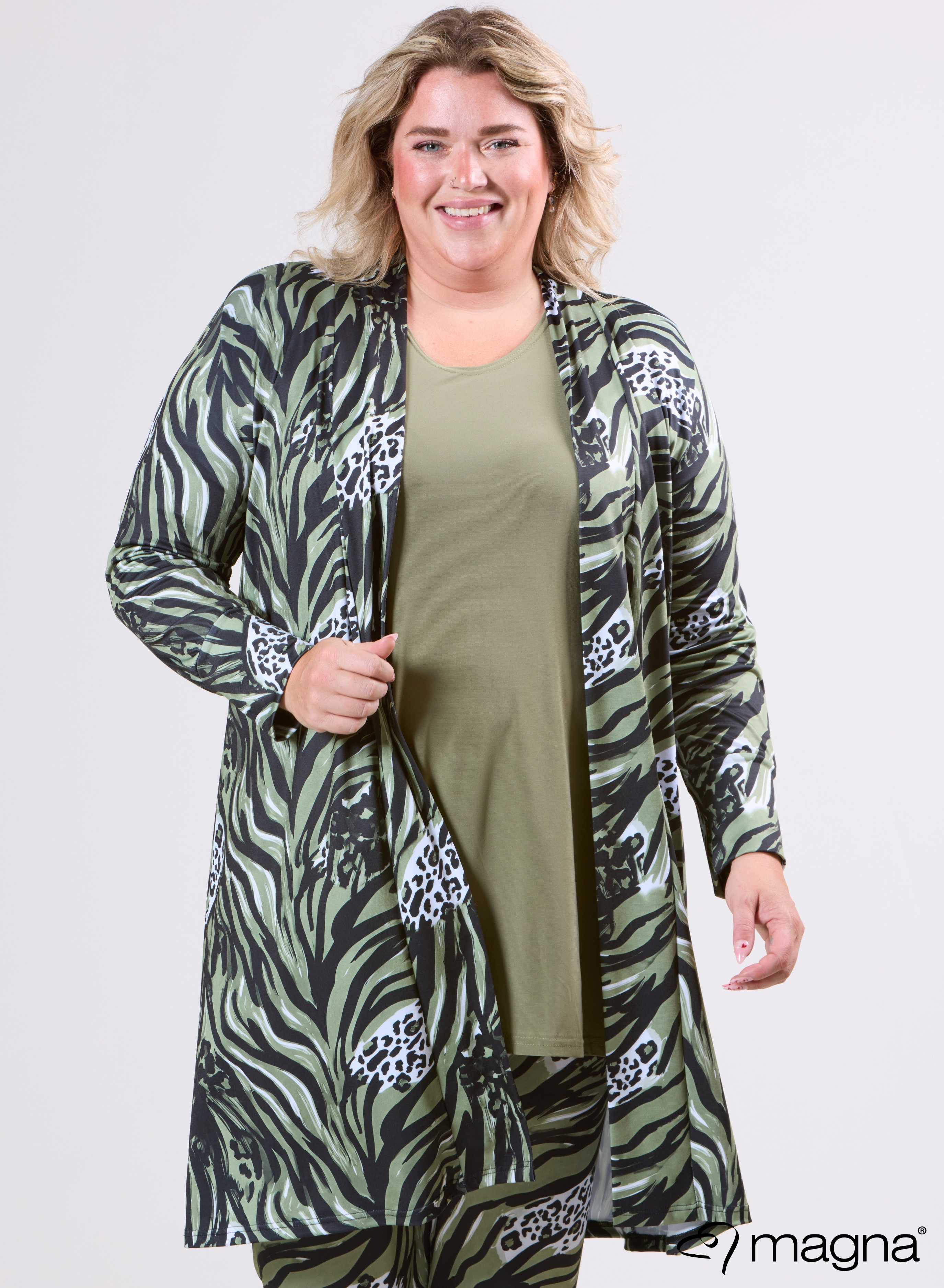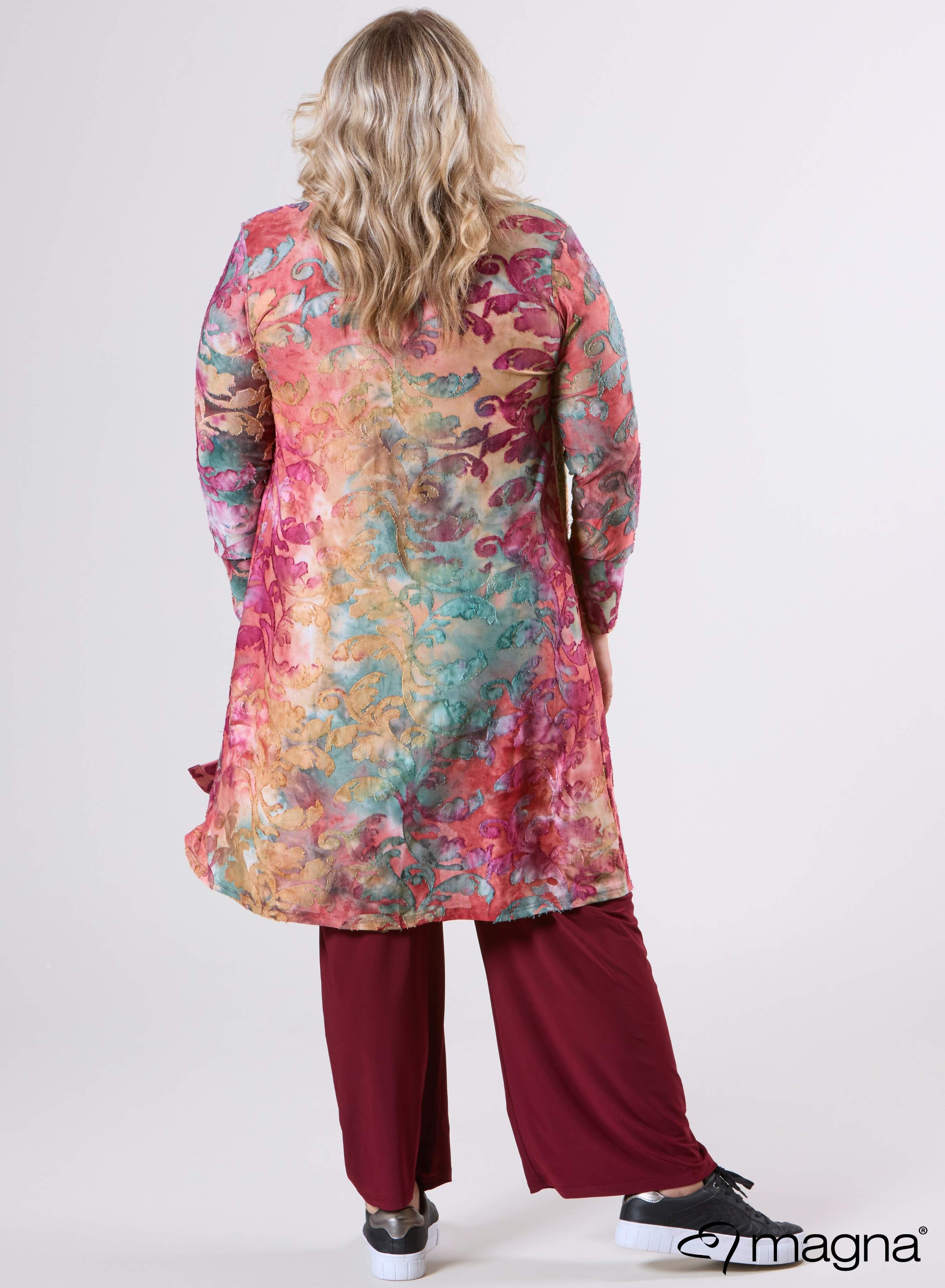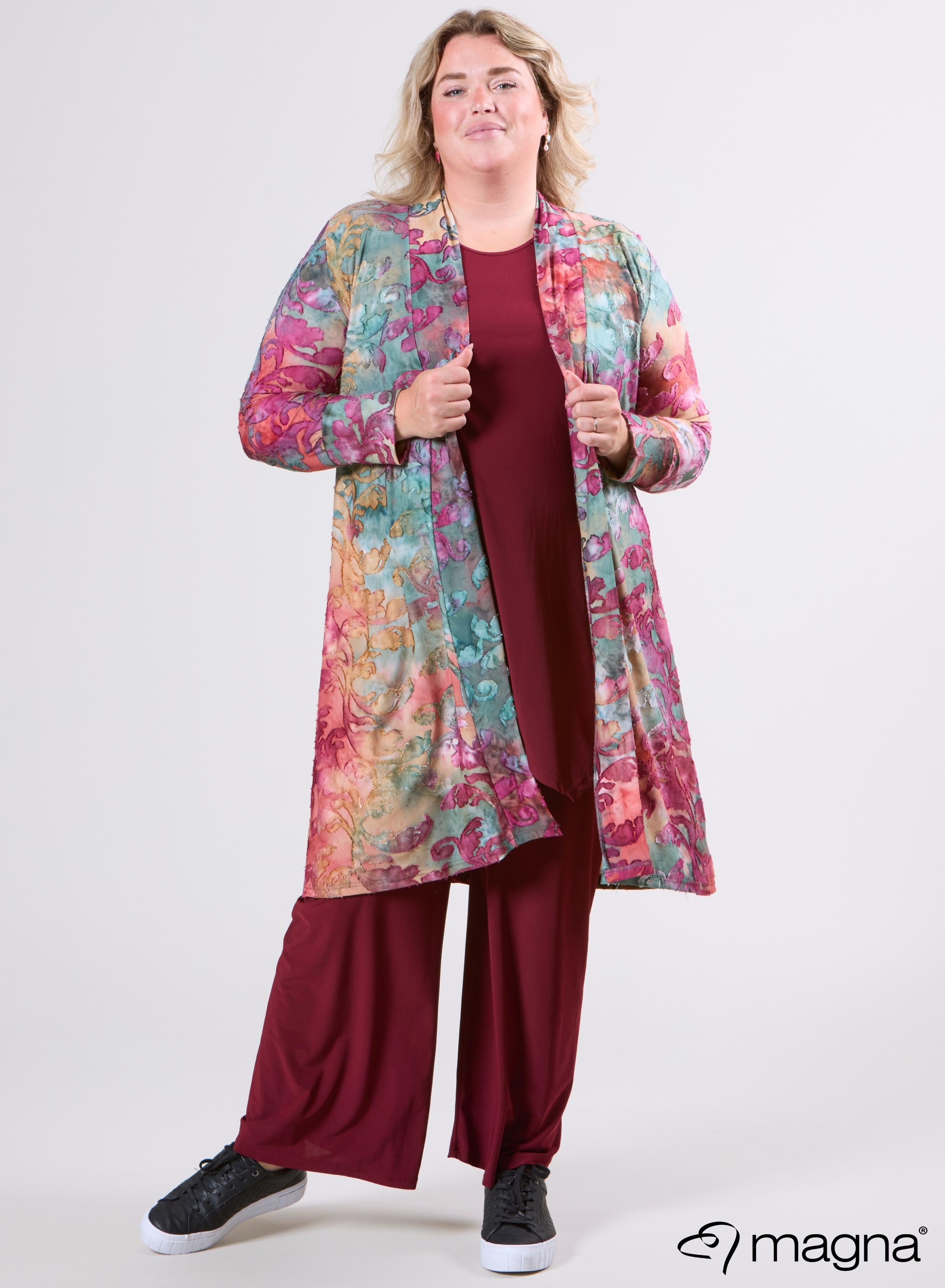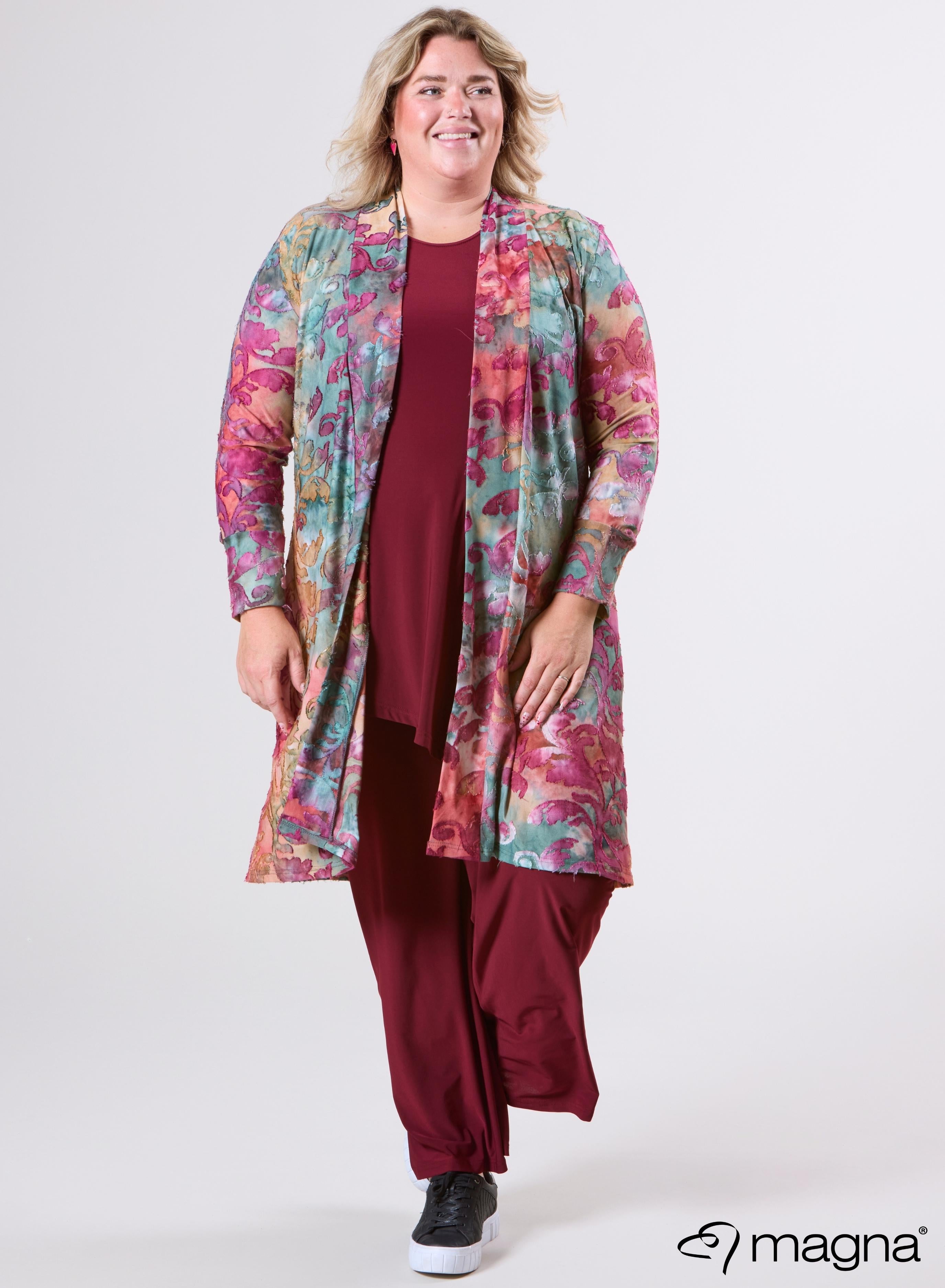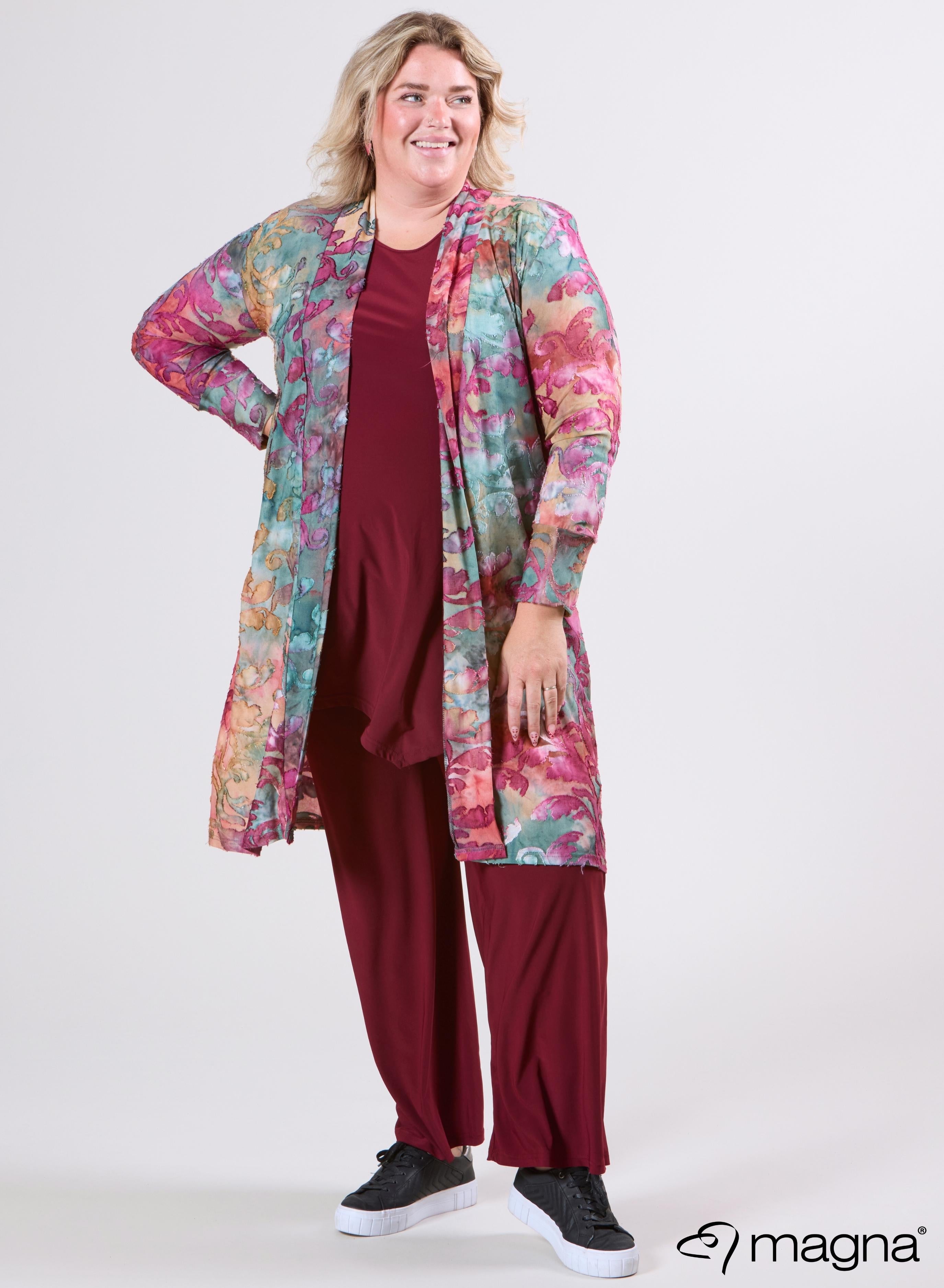 Magna Printed Travel Cardigan Big Leaves Groen Rood