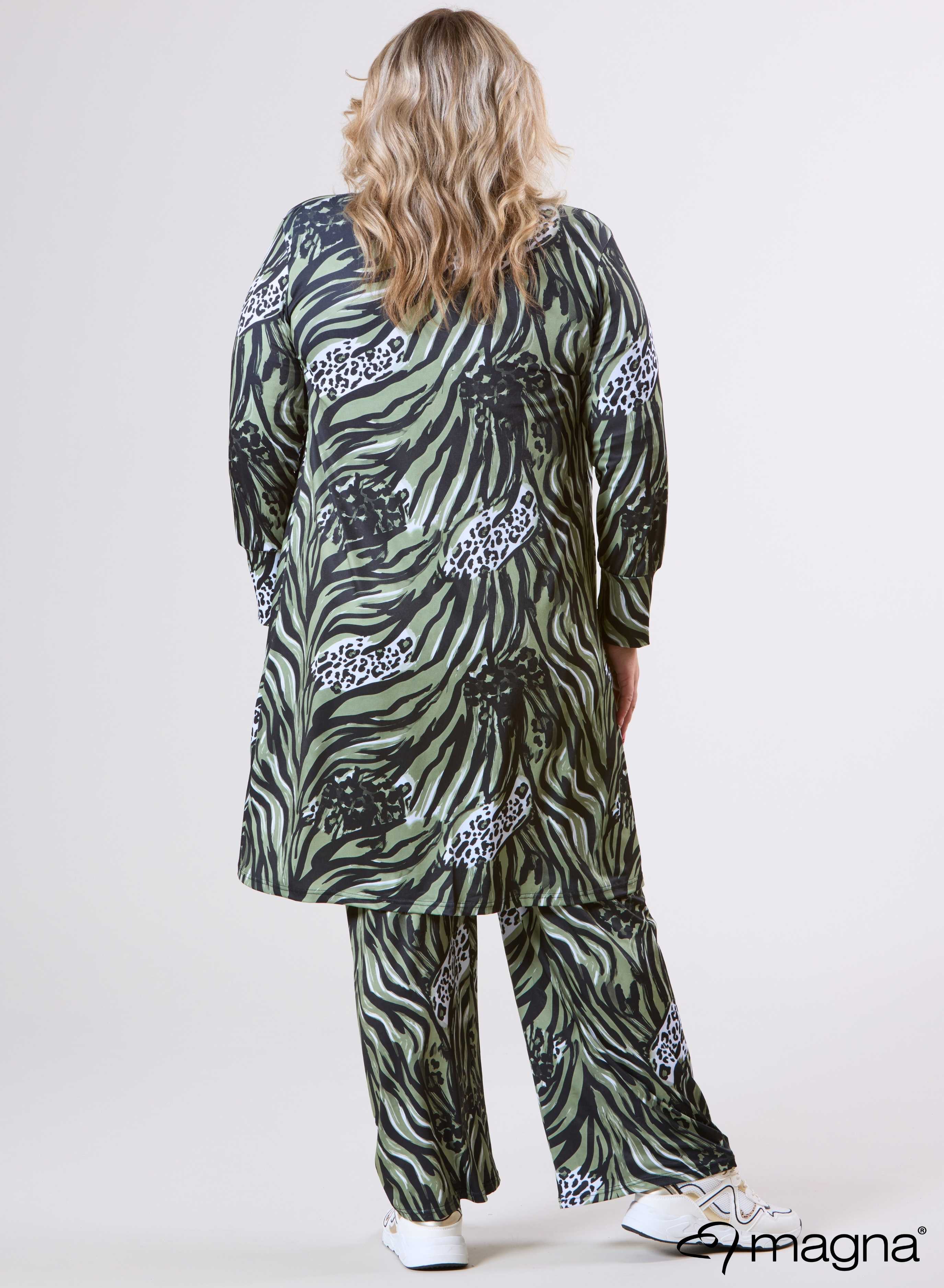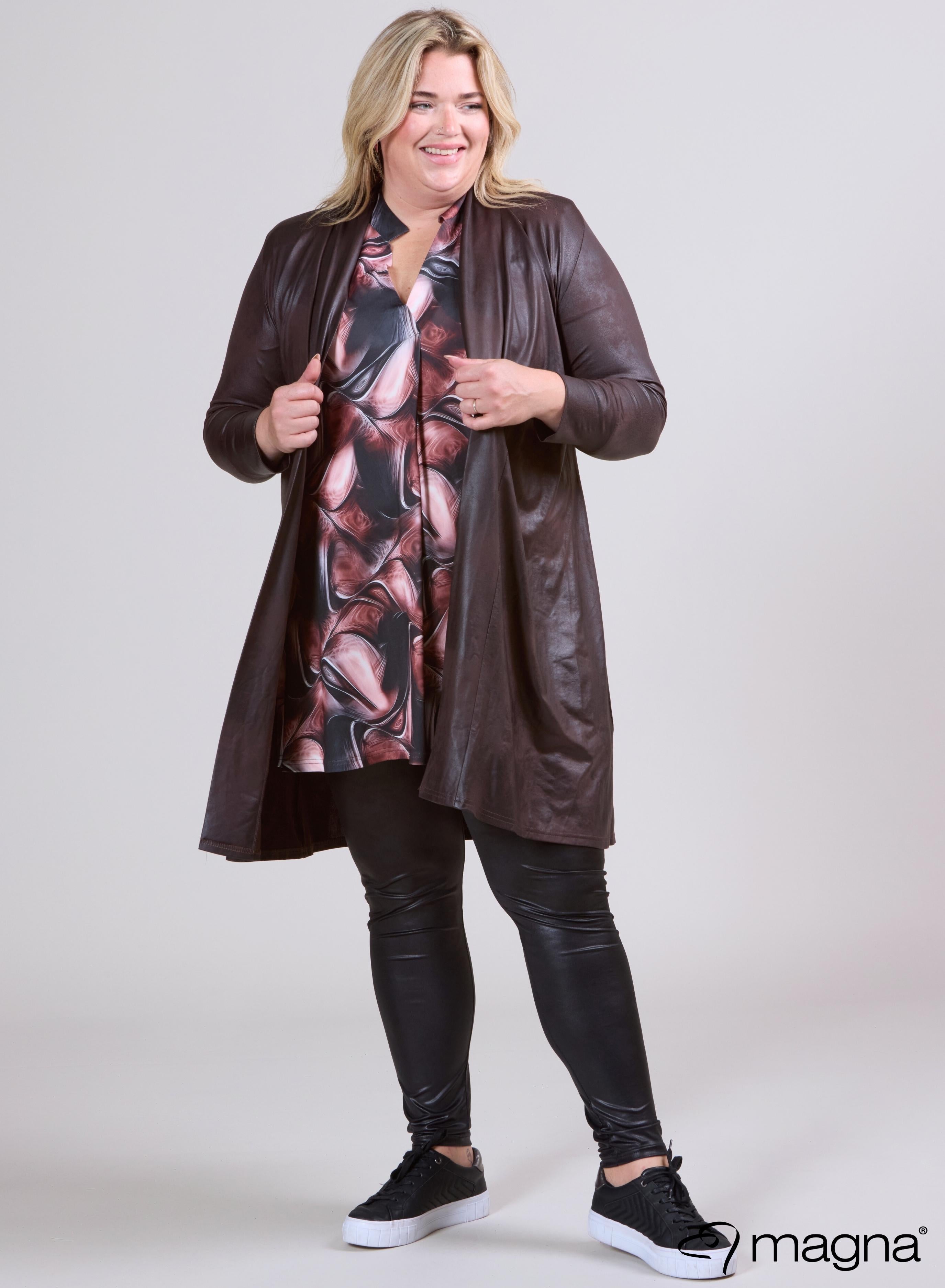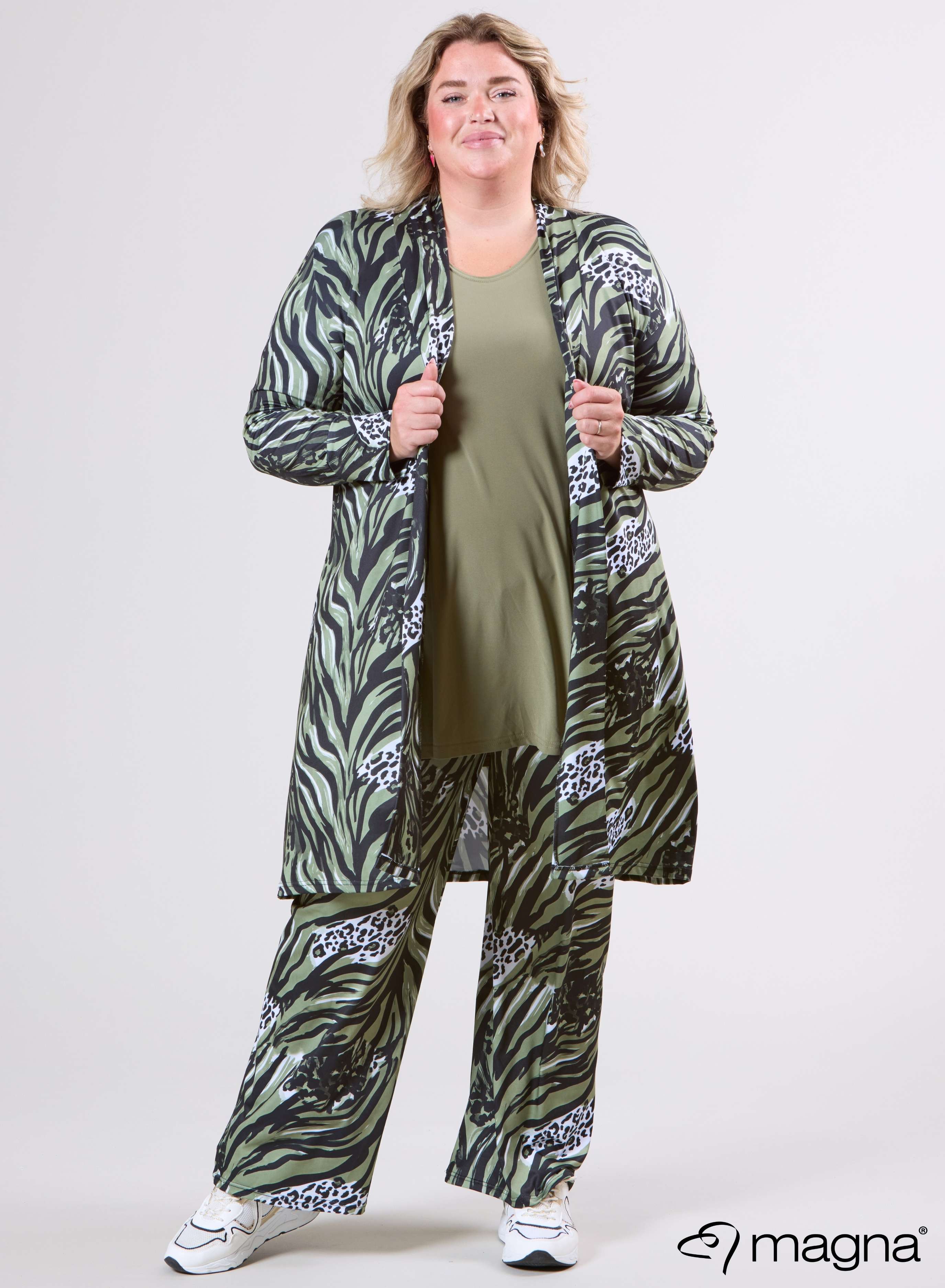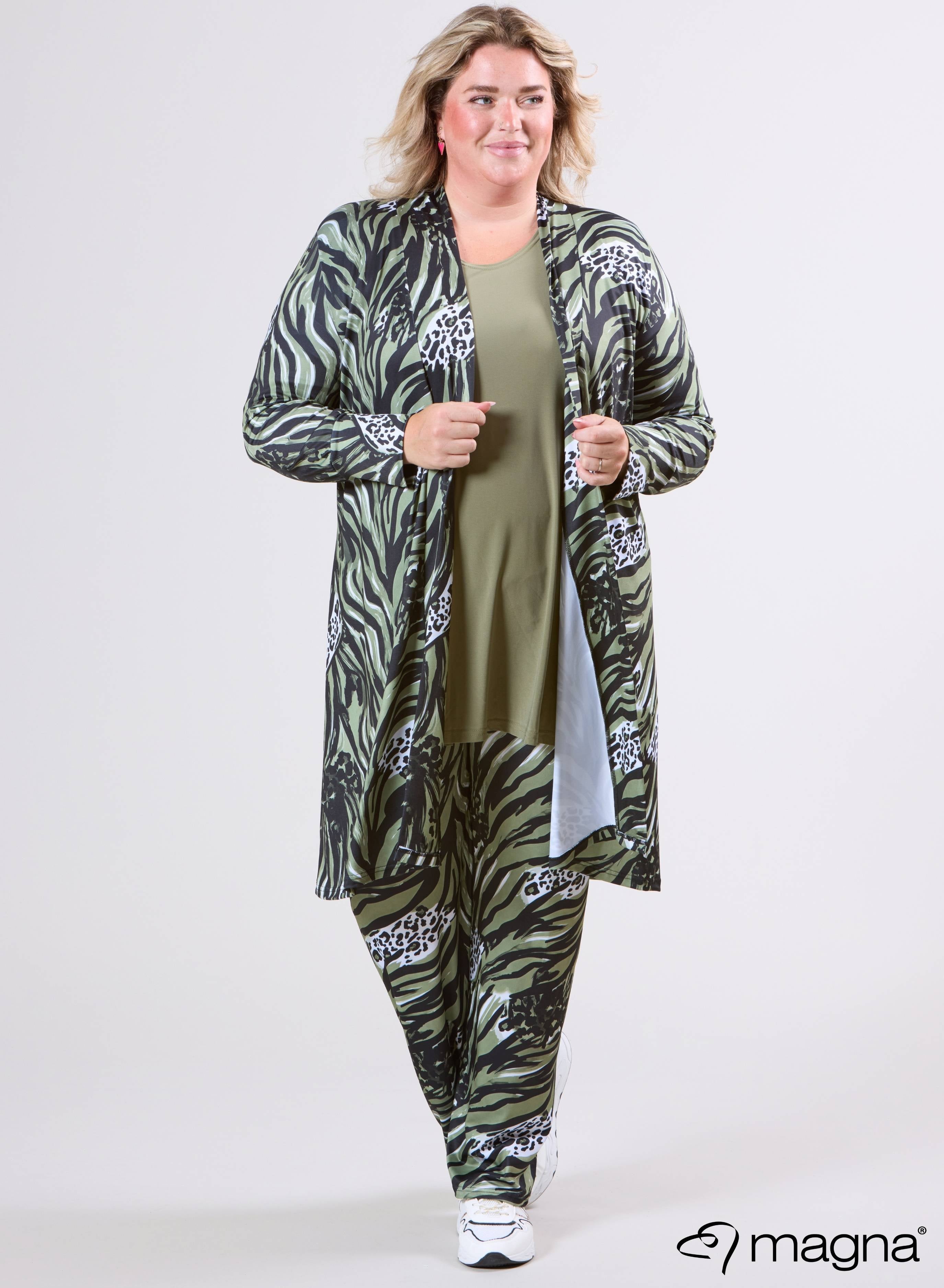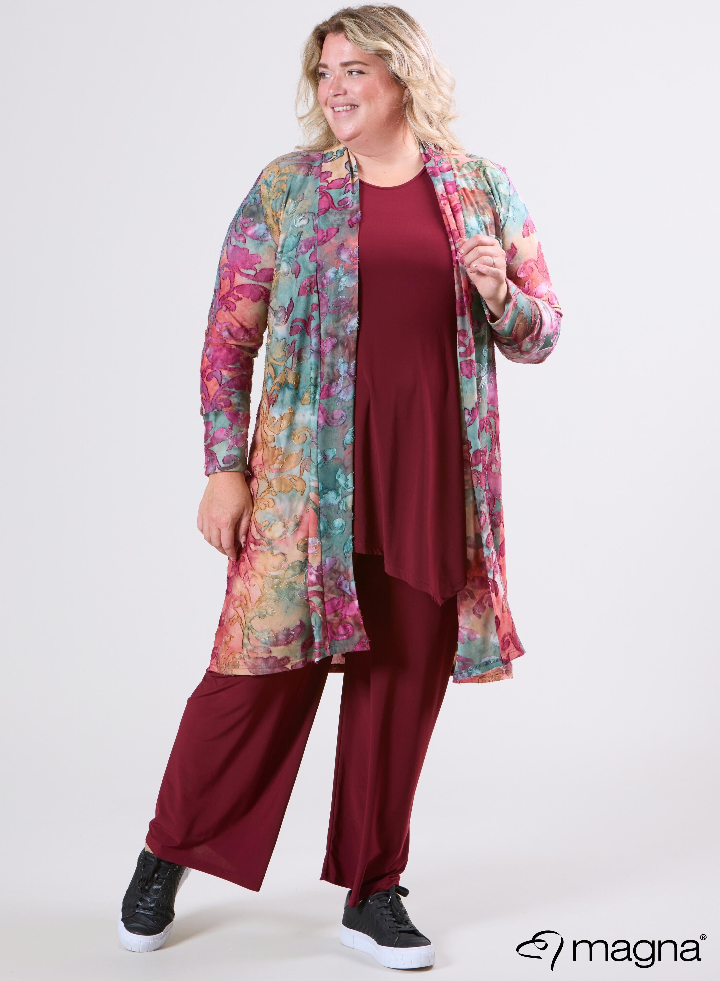 Magna Printed Travel Cardigan Big Leaves Groen Rood