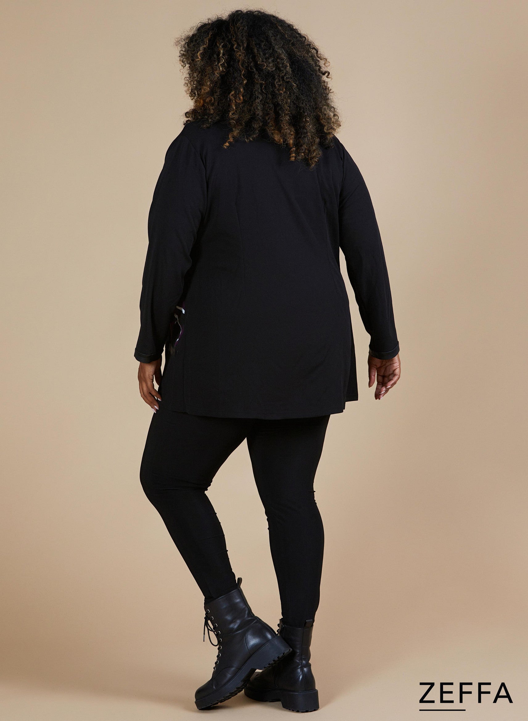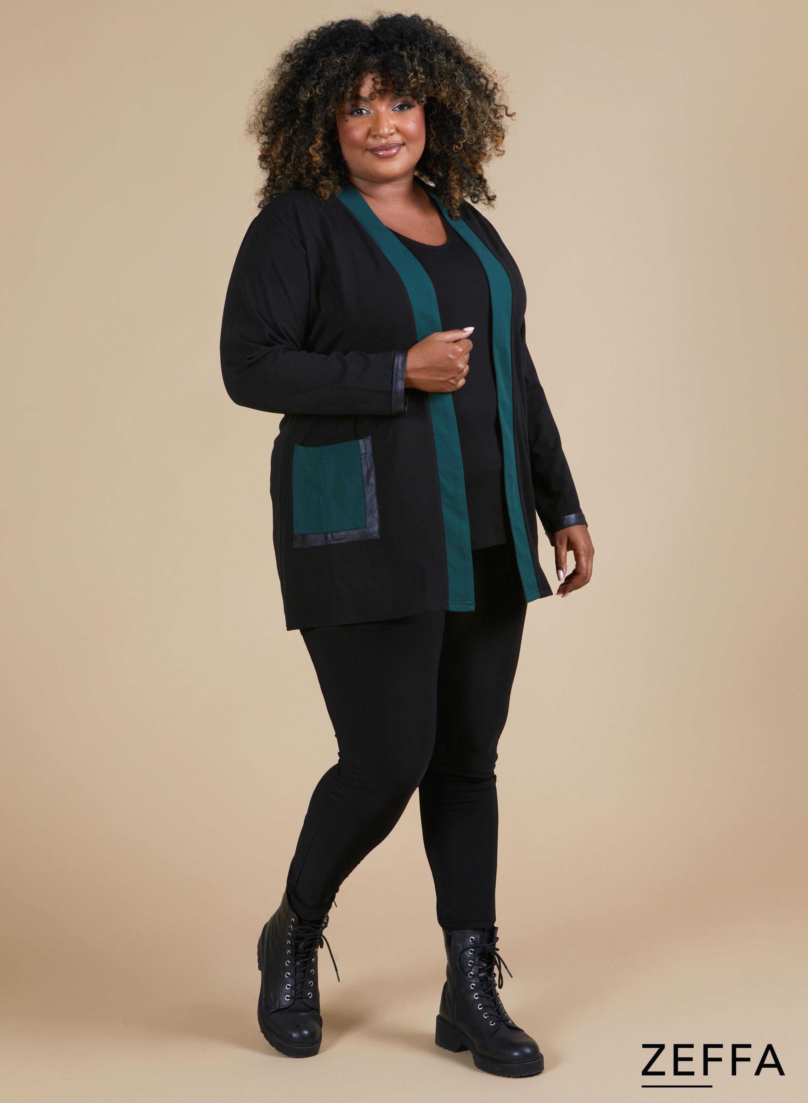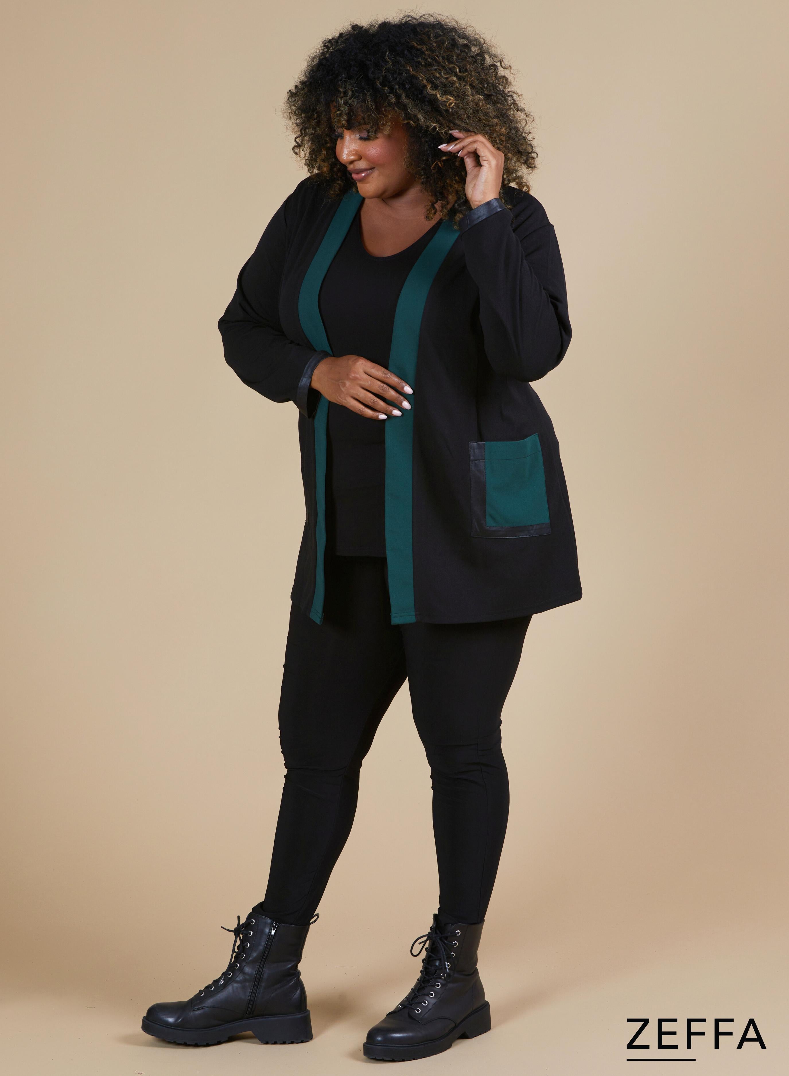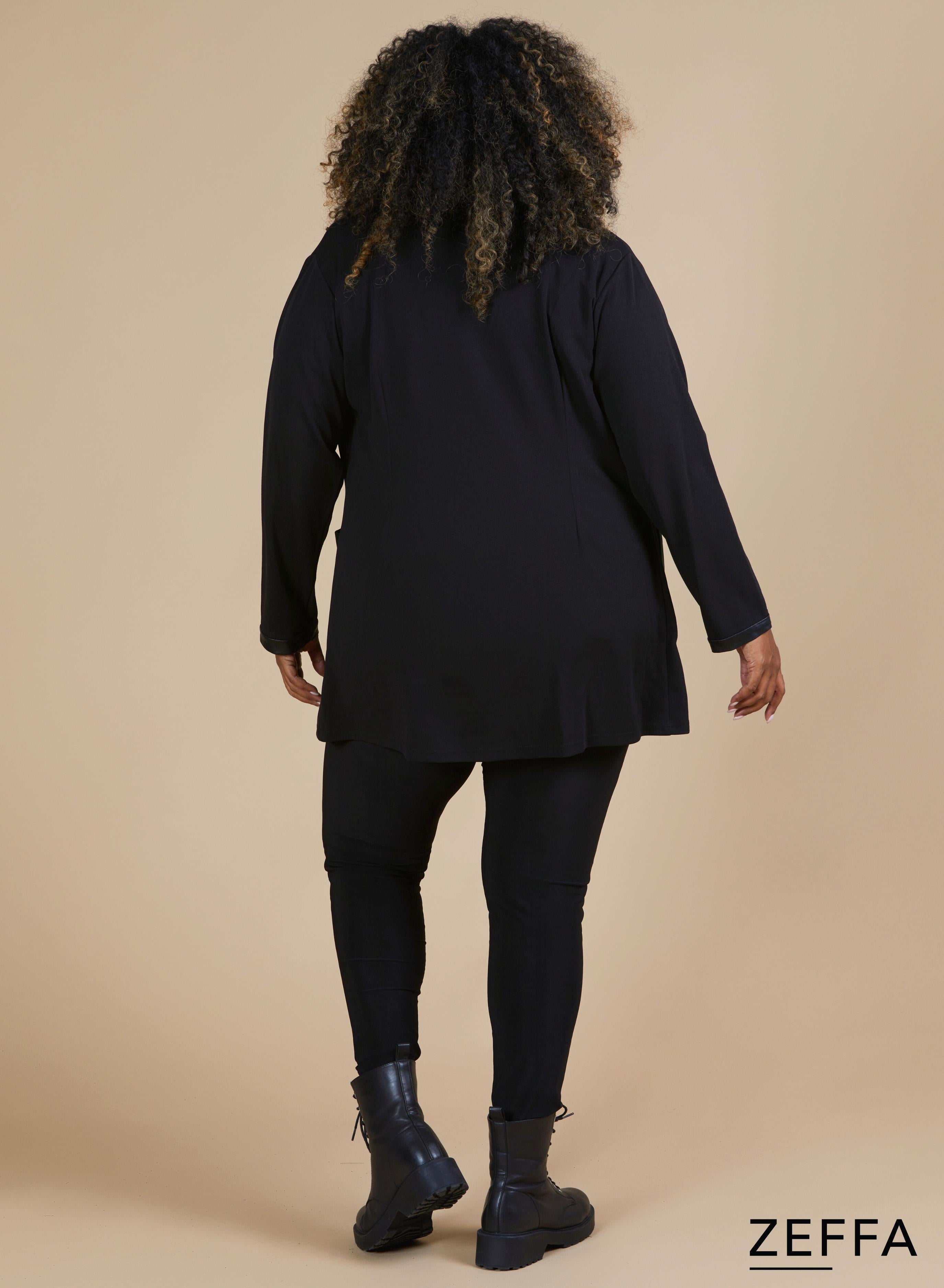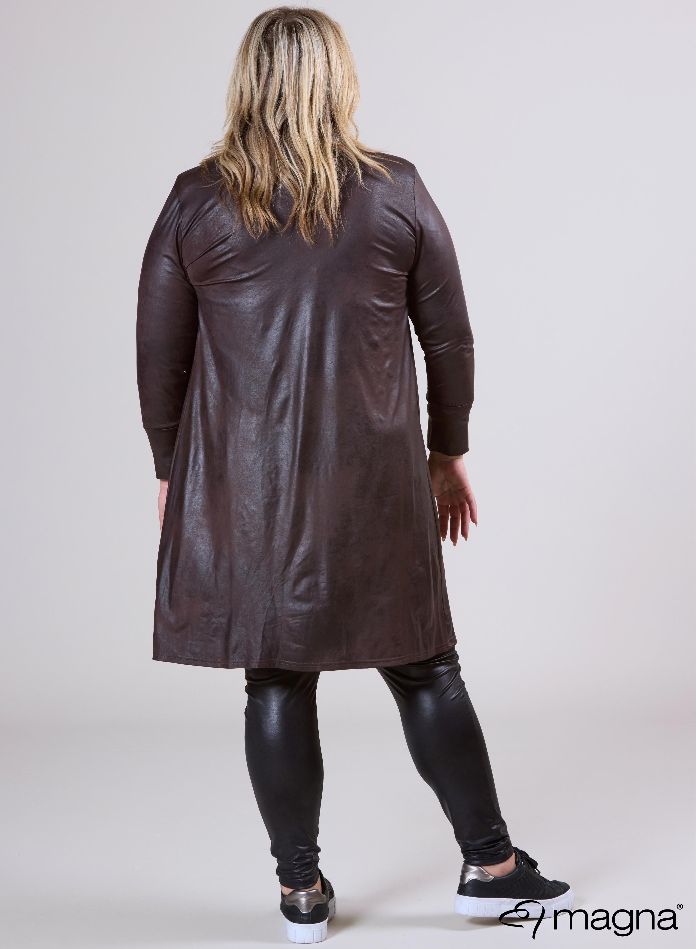 Magna Leather Look Sleeveless Long Vest with Pockets Black