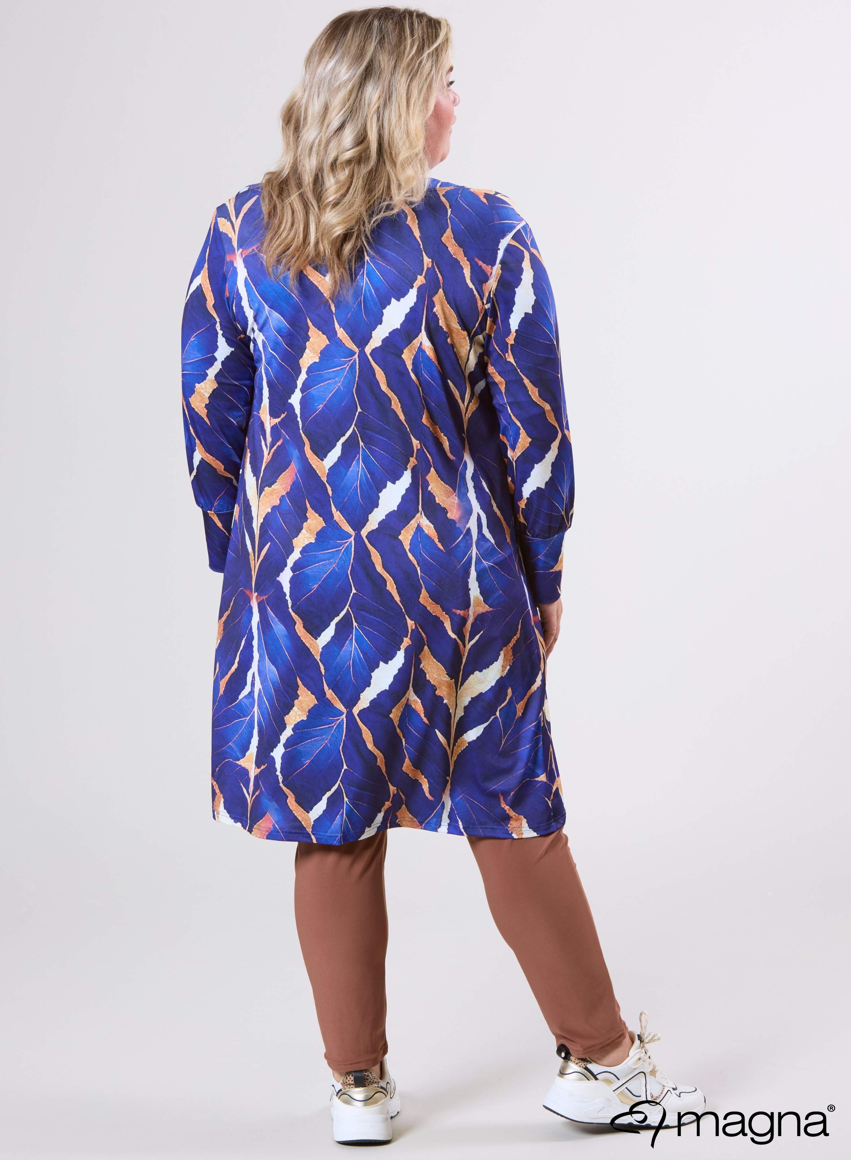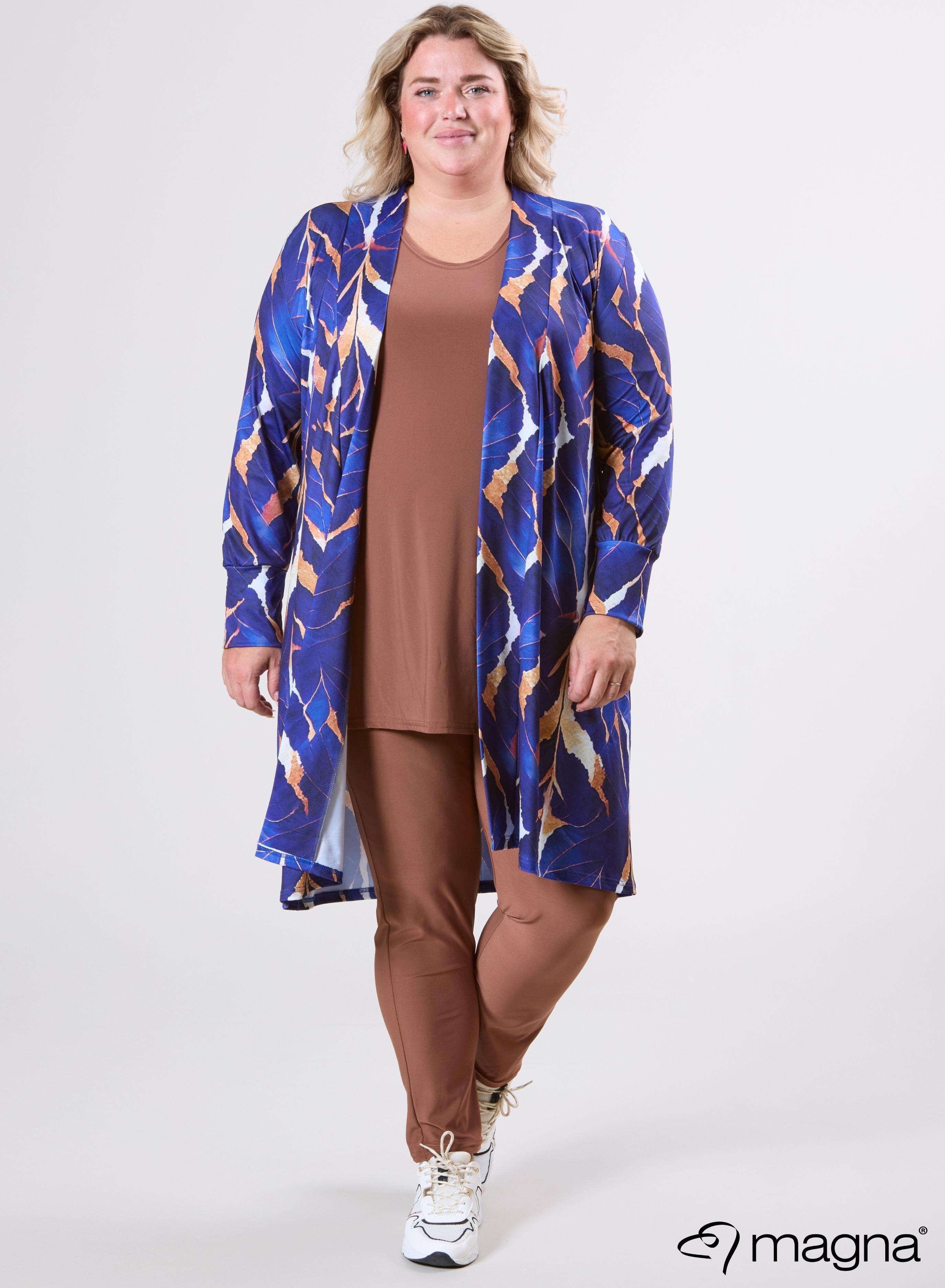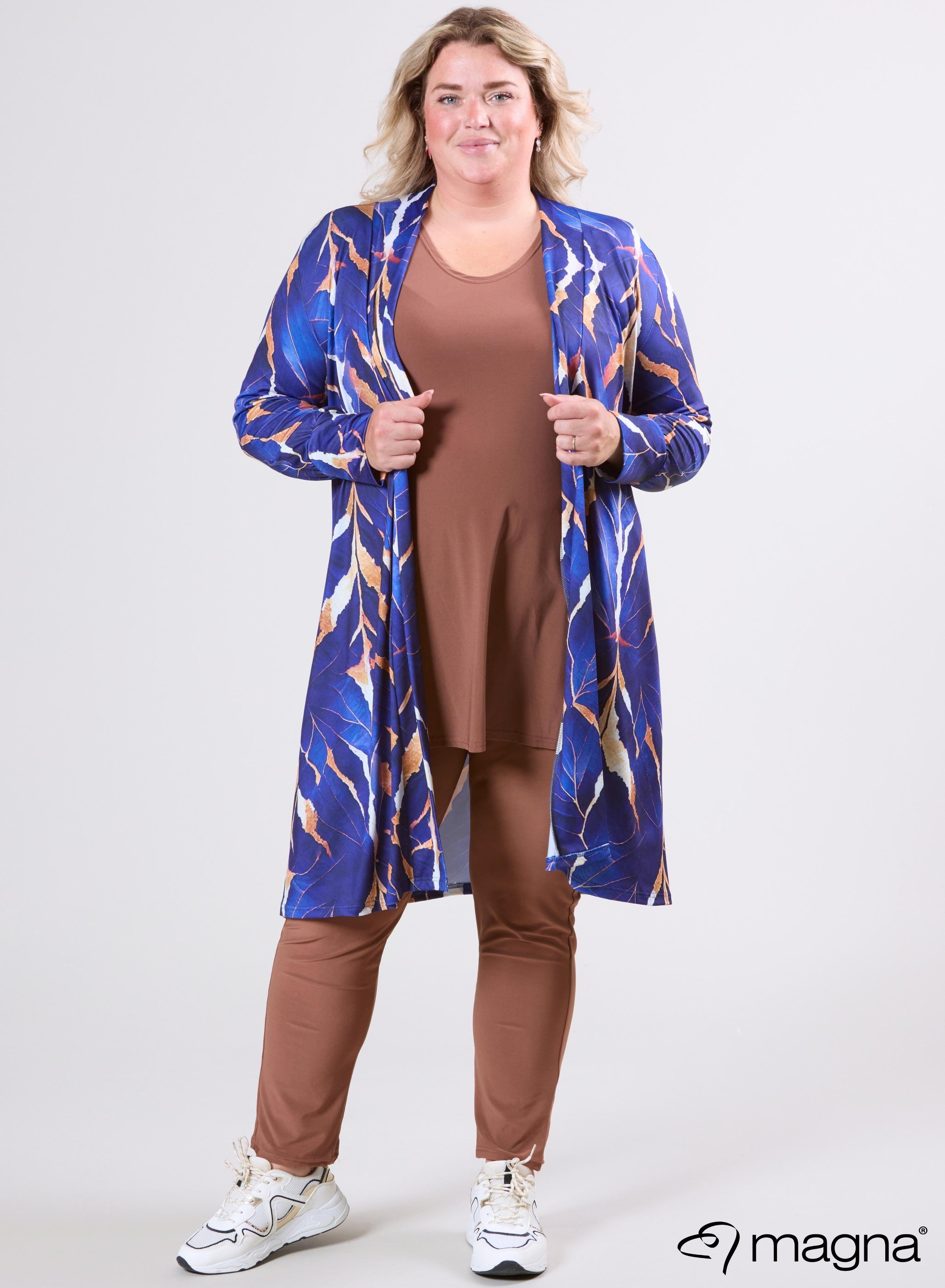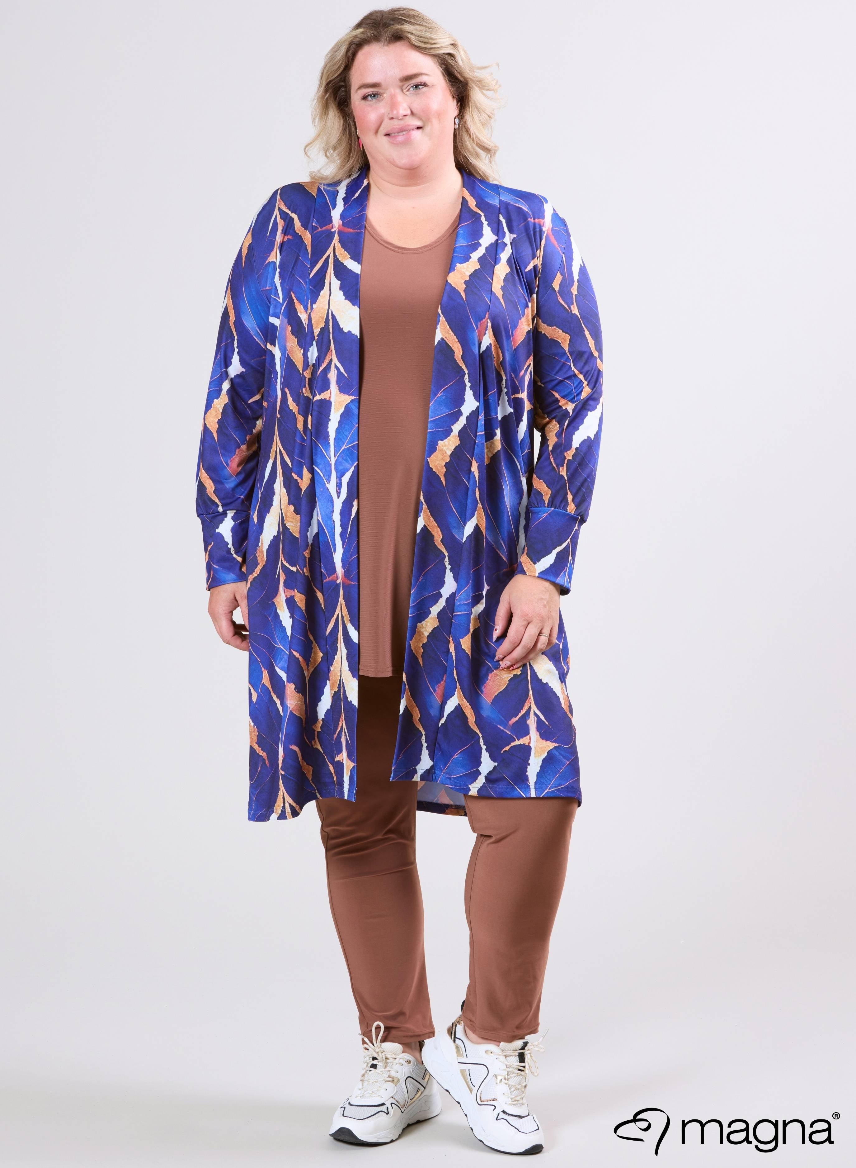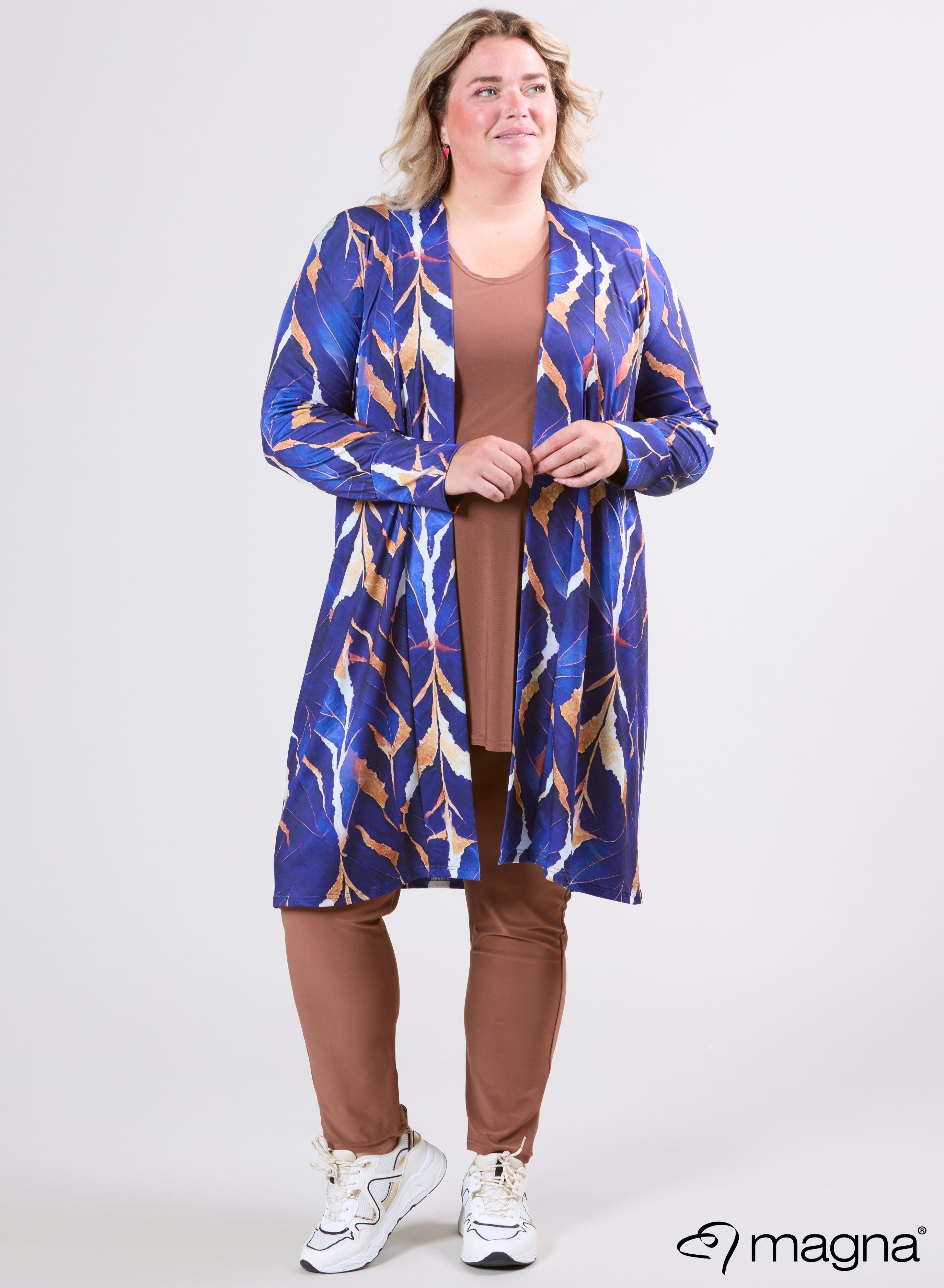 Magna Printed Travel Cardigan Autumn Leaves Camel/Blauw