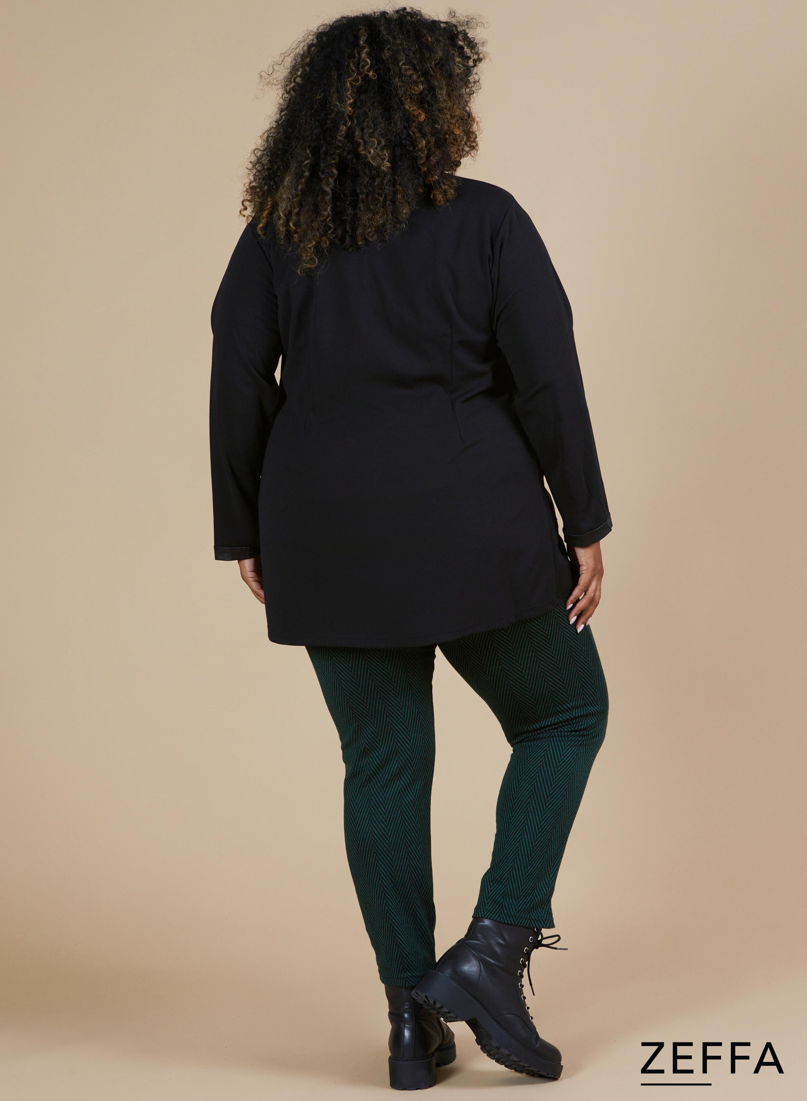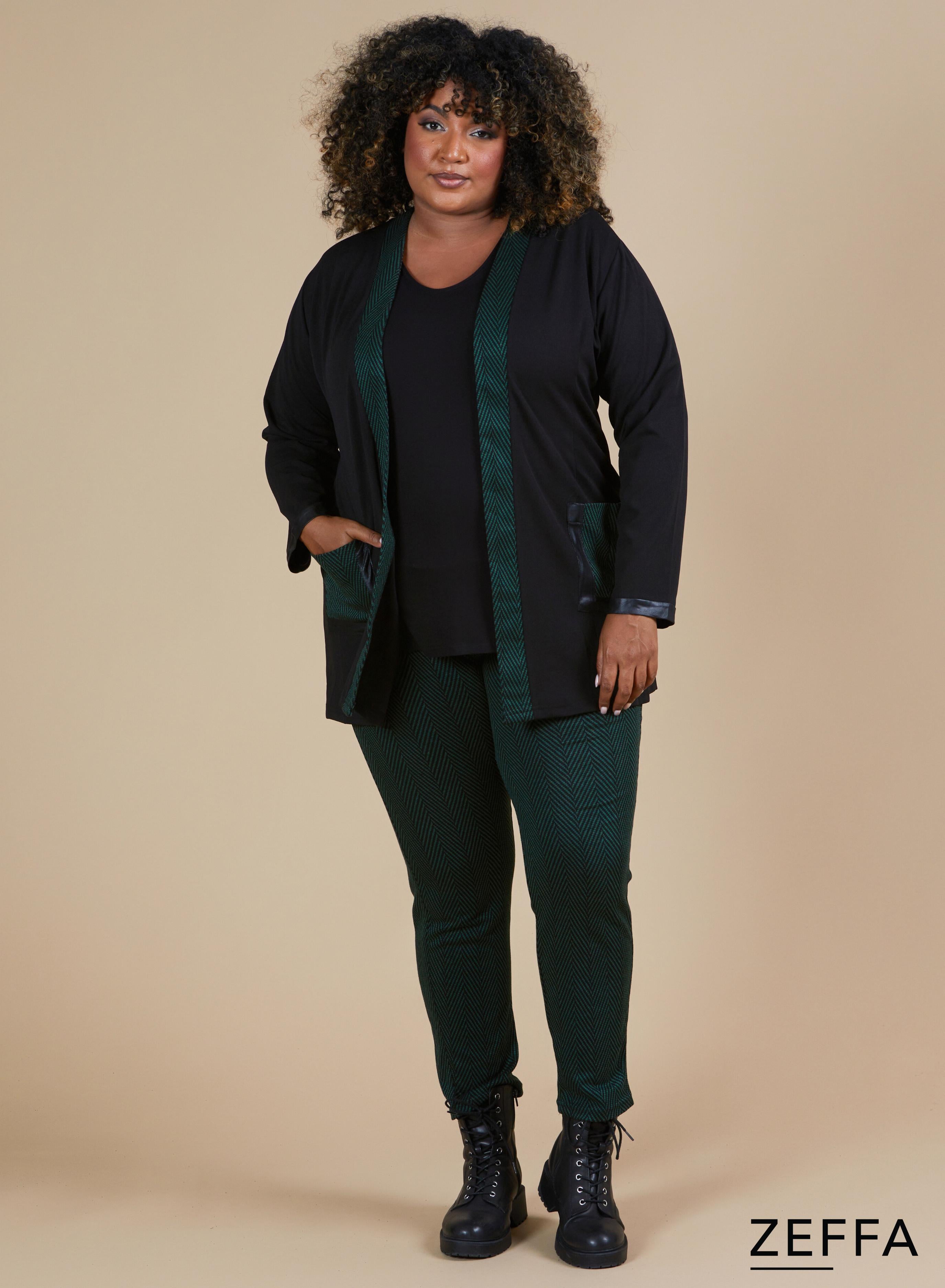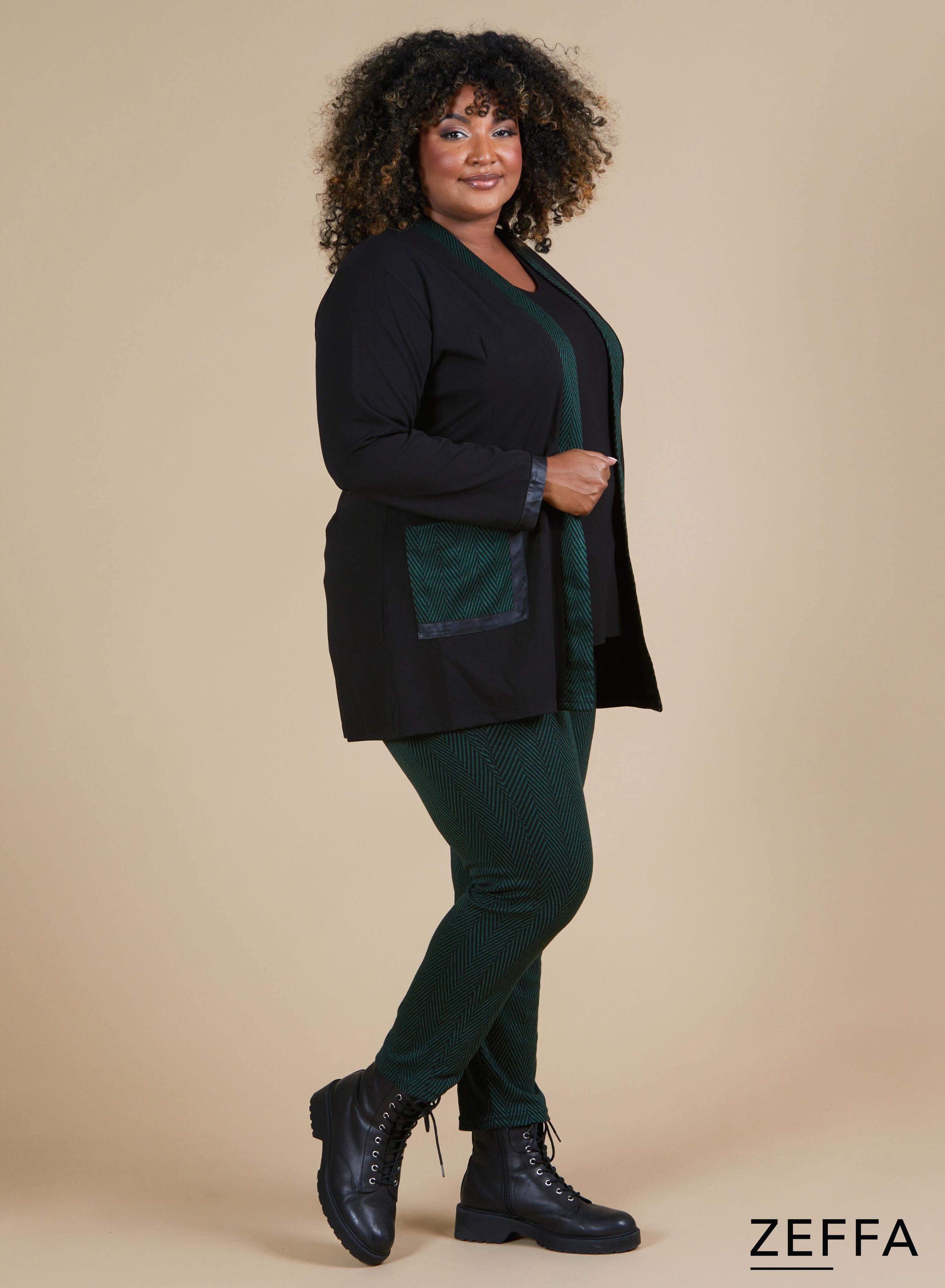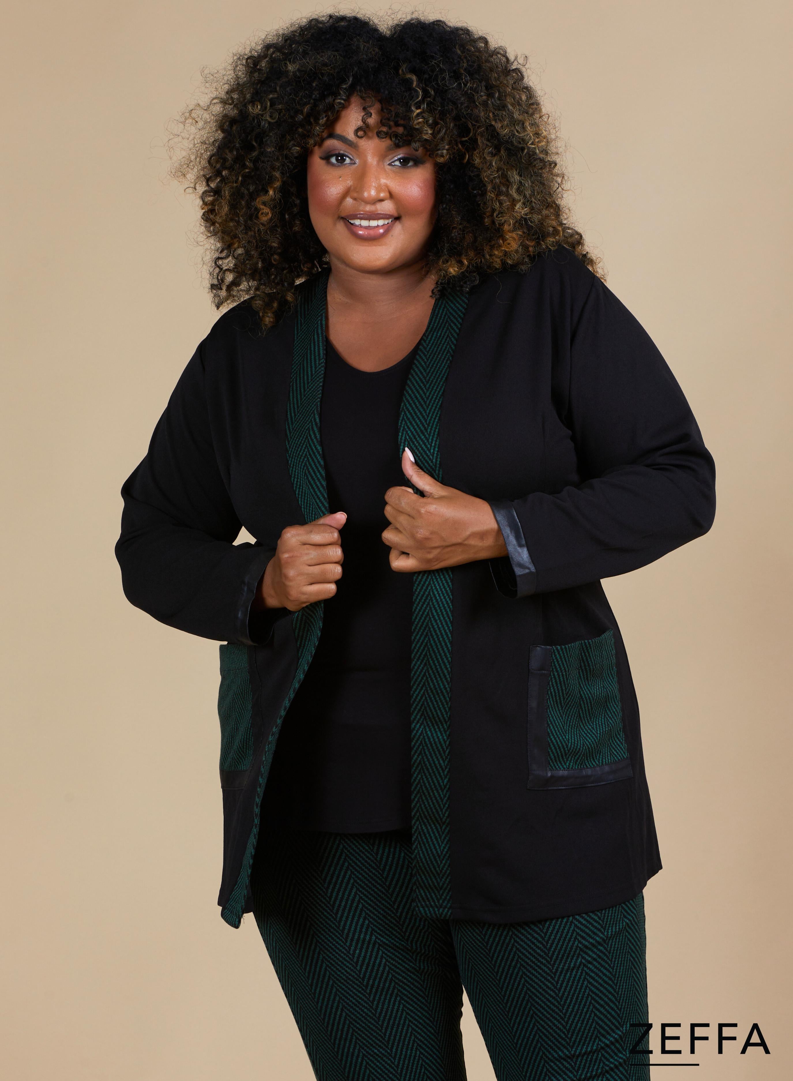 Zeffa Leather Detail Blazer Green ZigZag Print