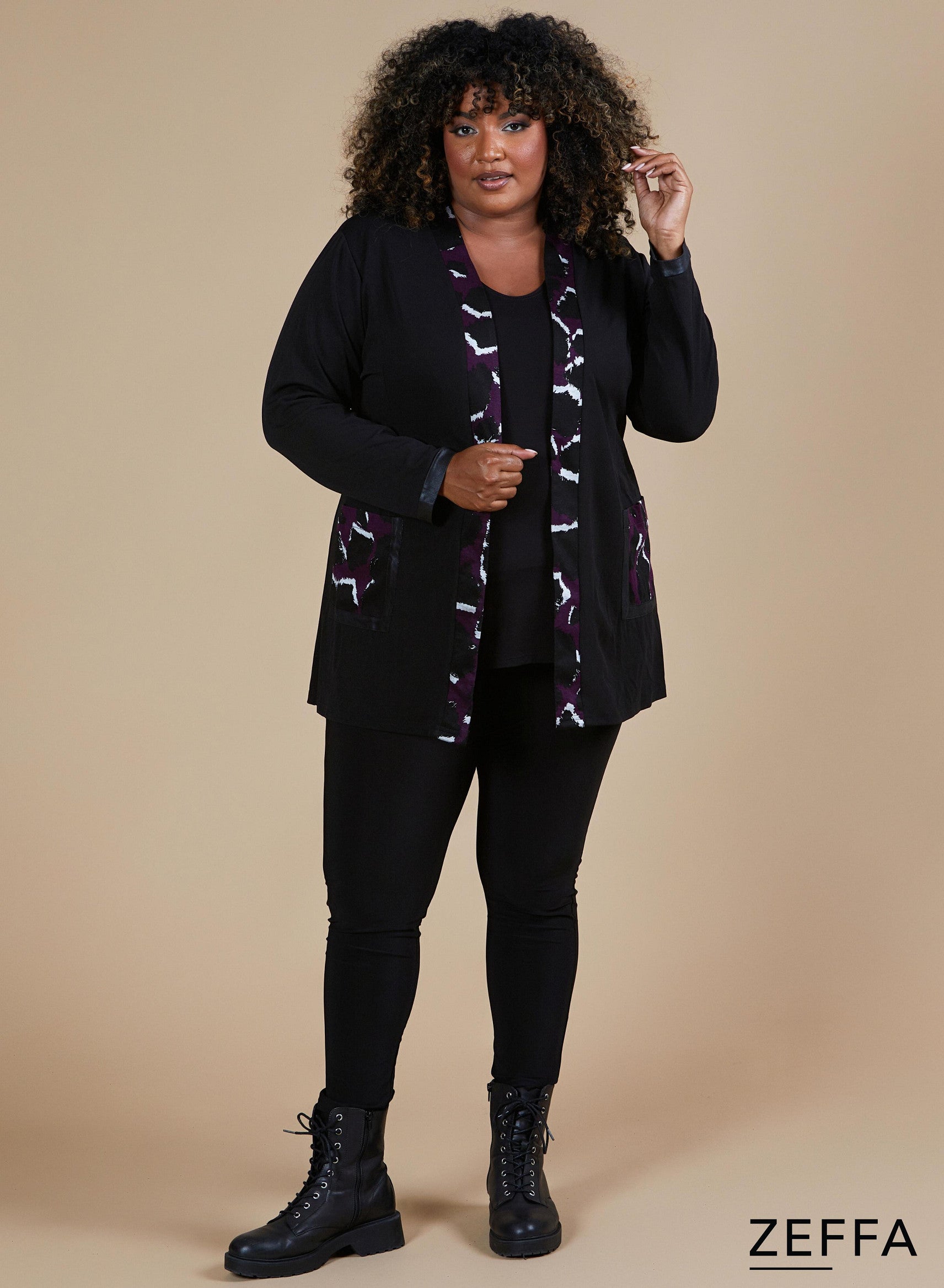 Zeffa Leather Detail Blazer Dark Purple Leo