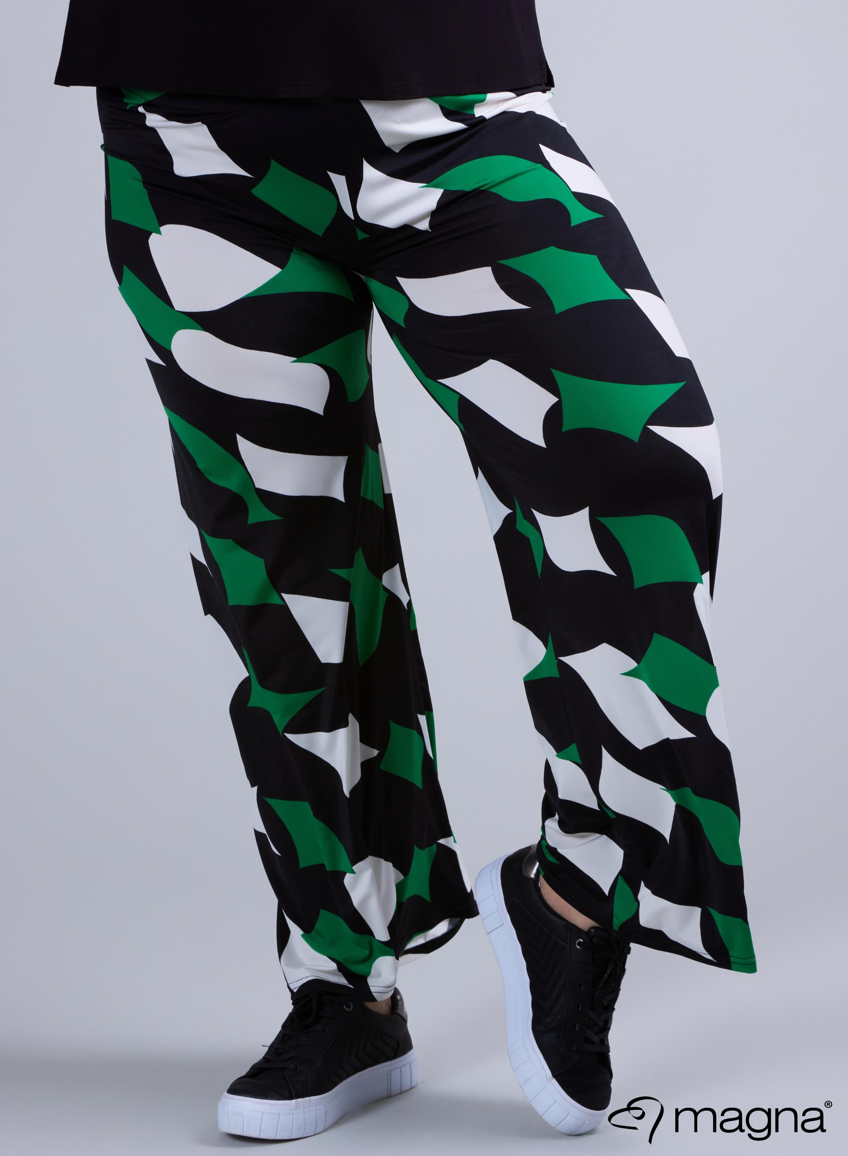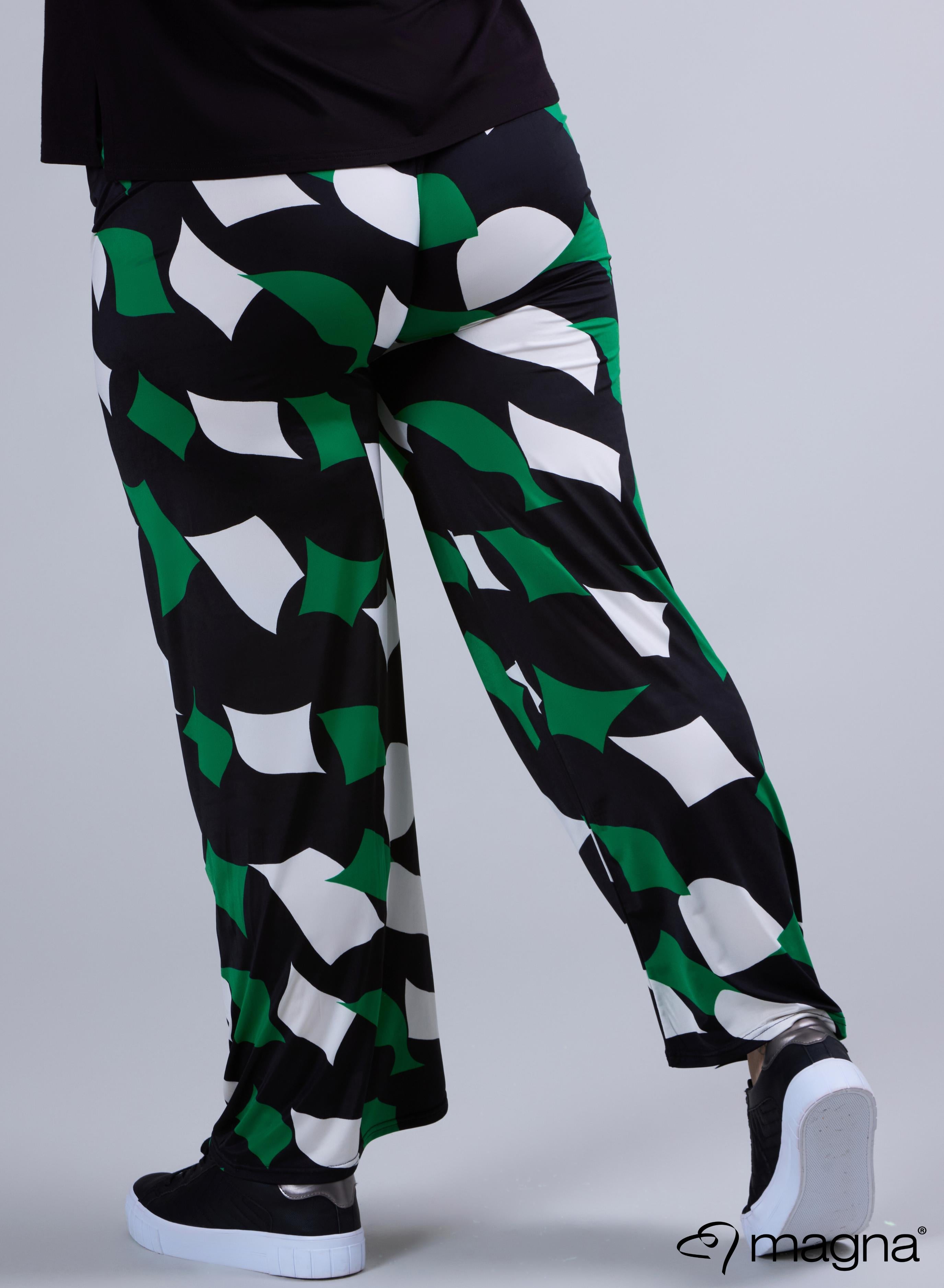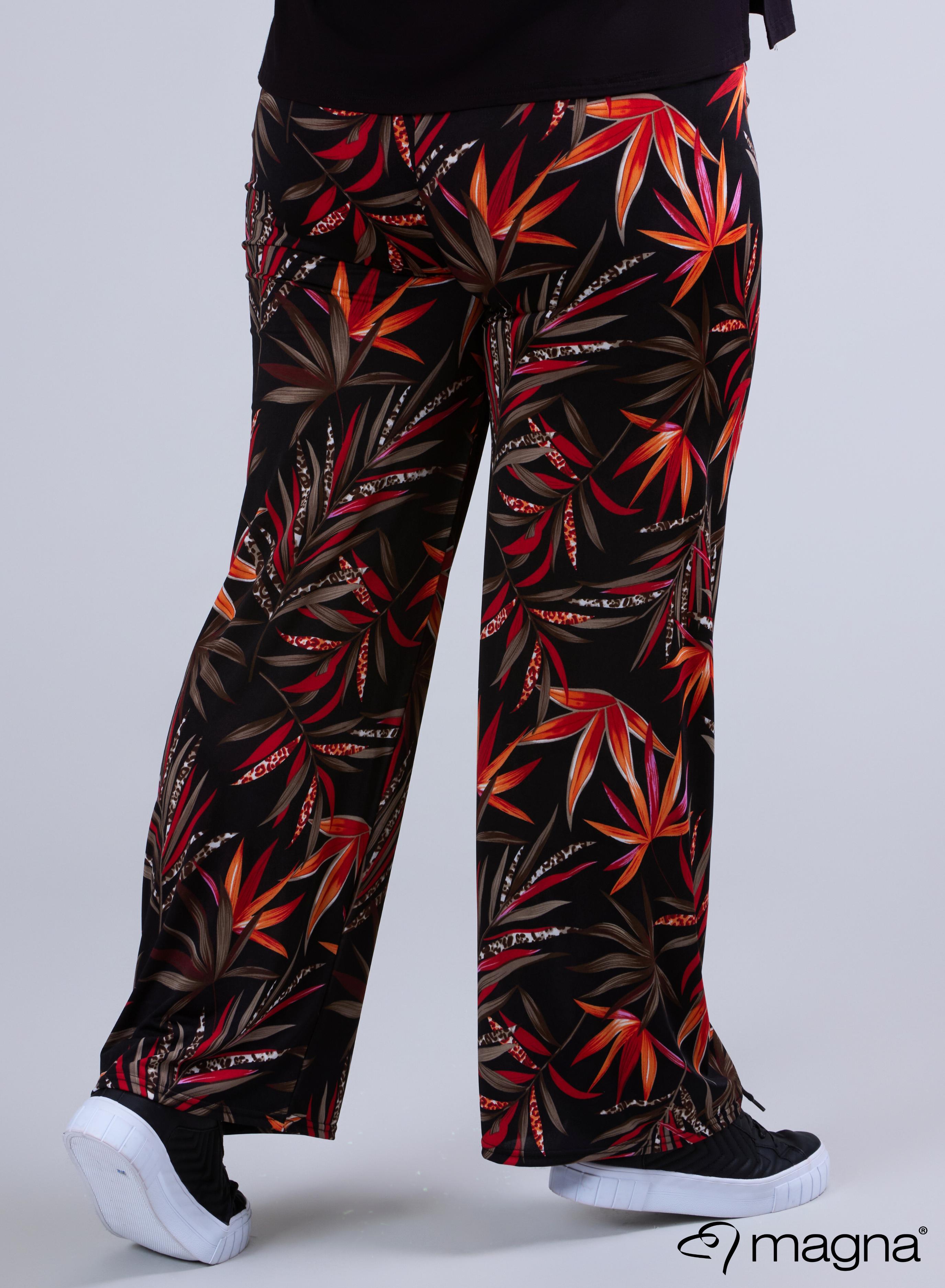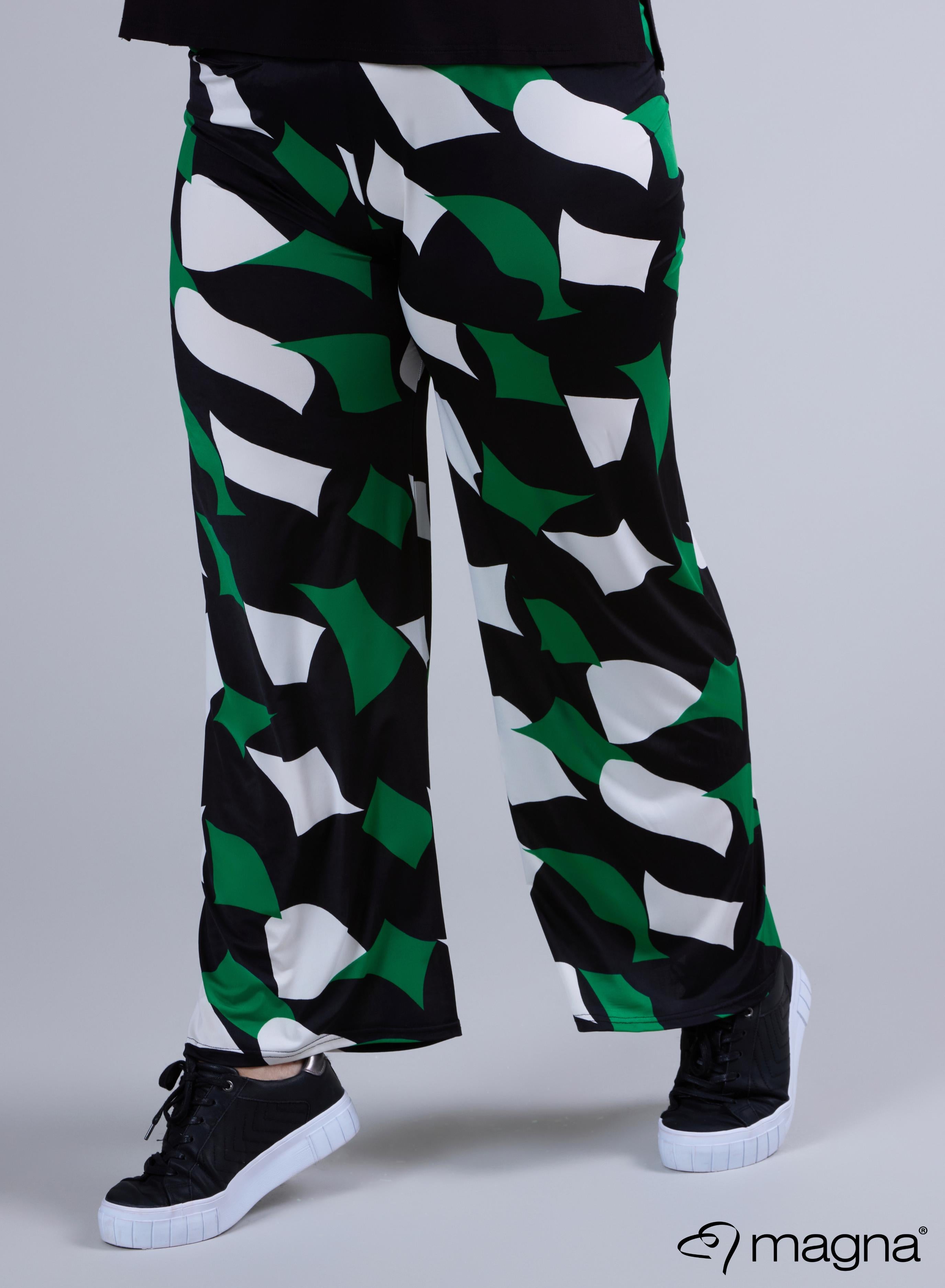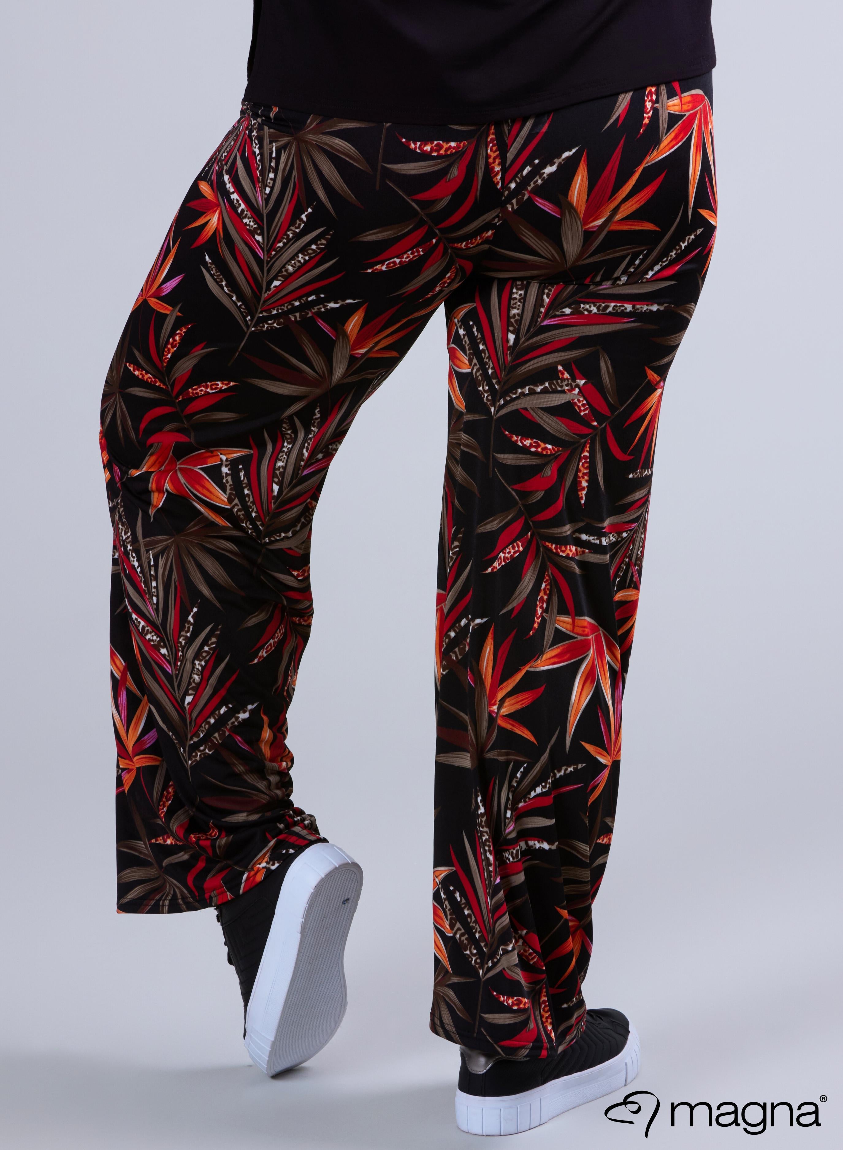 Magna Wide Leg Elastic Trouser Palm Print Petrol