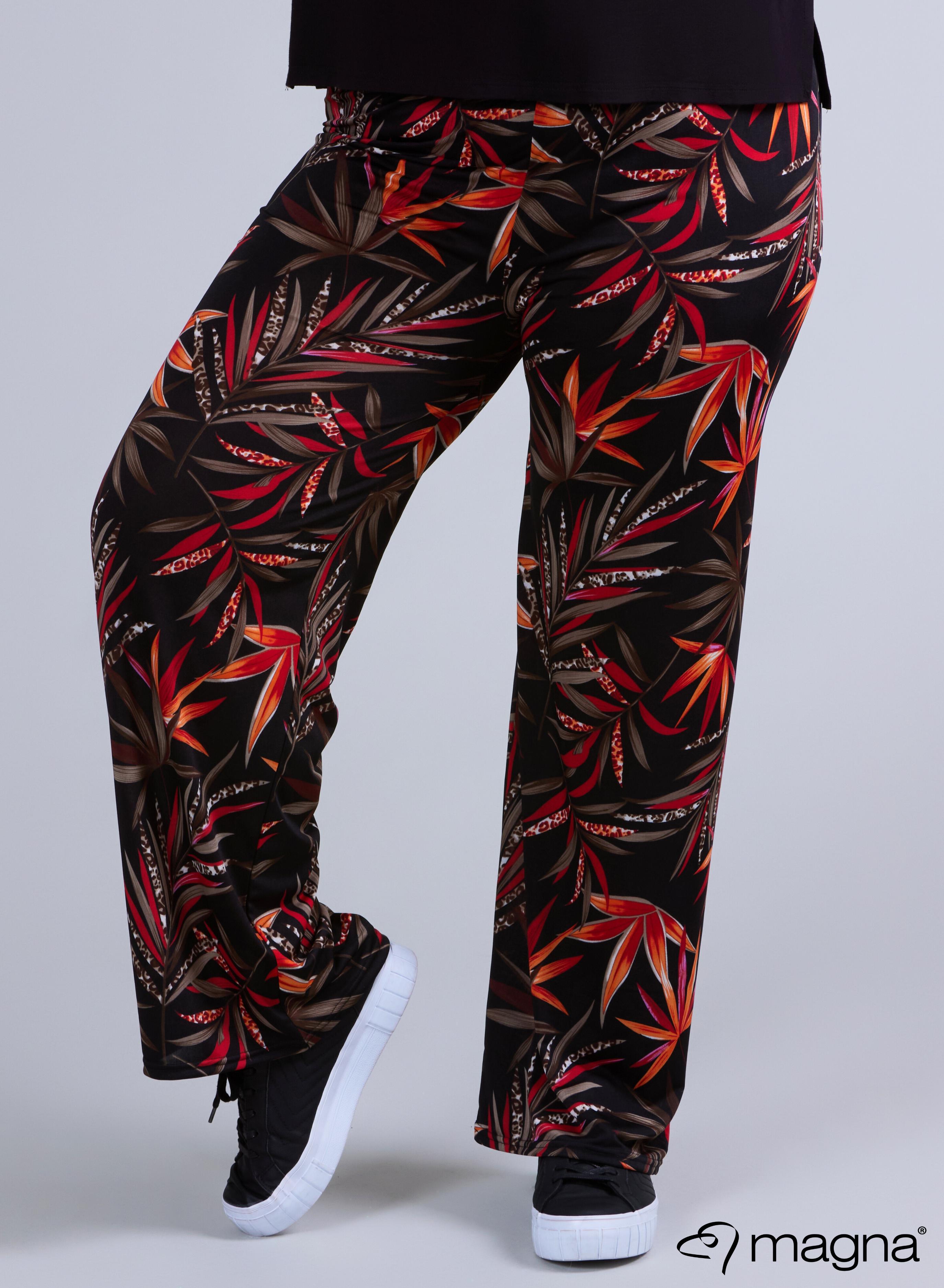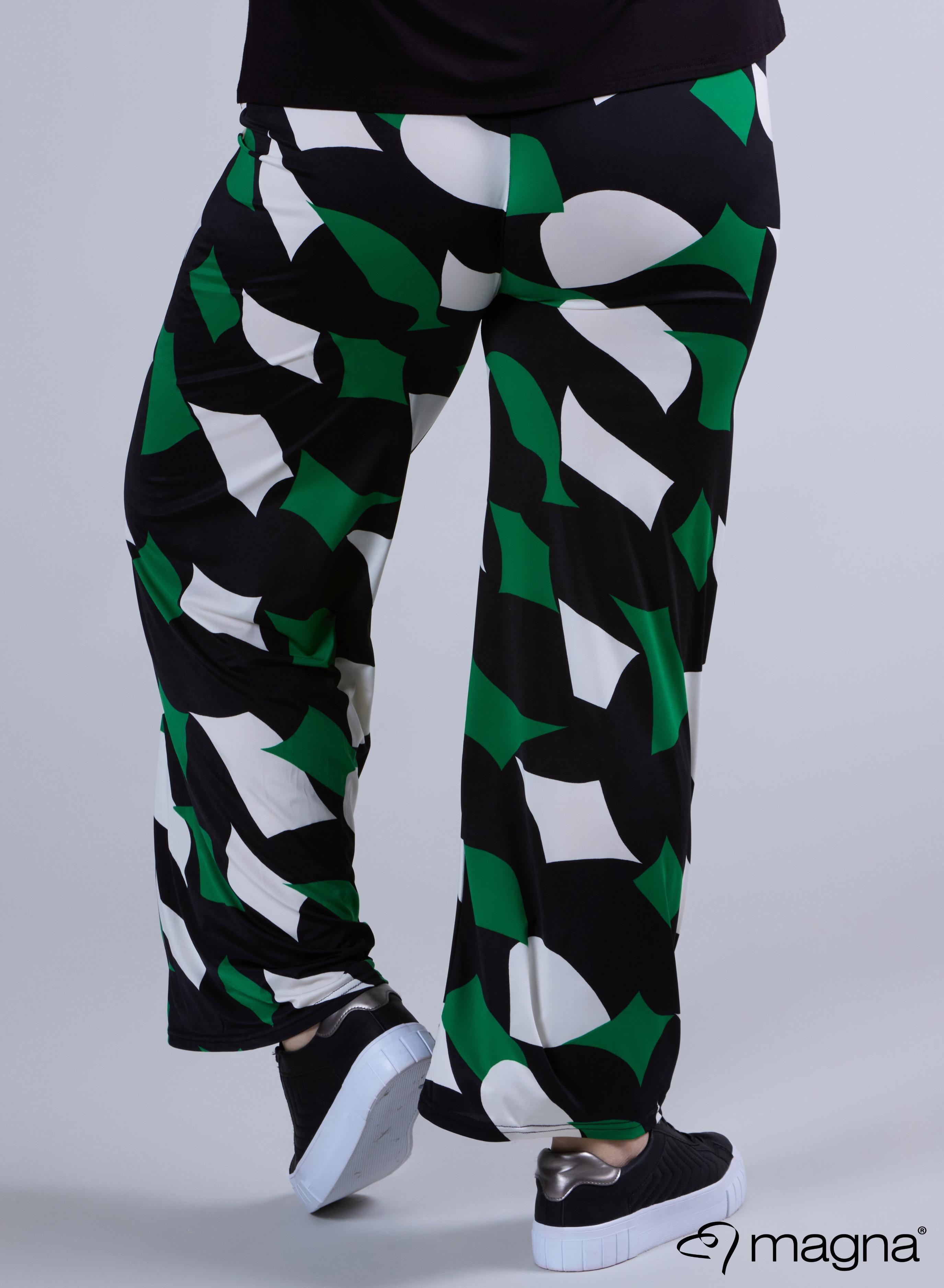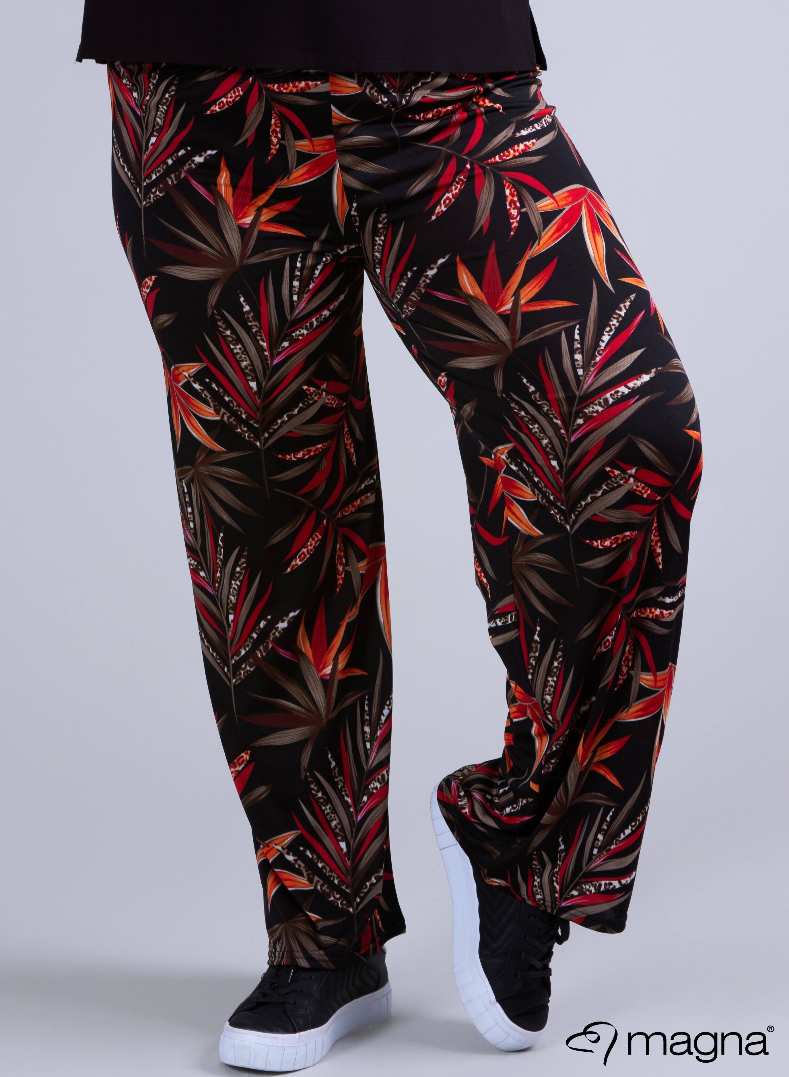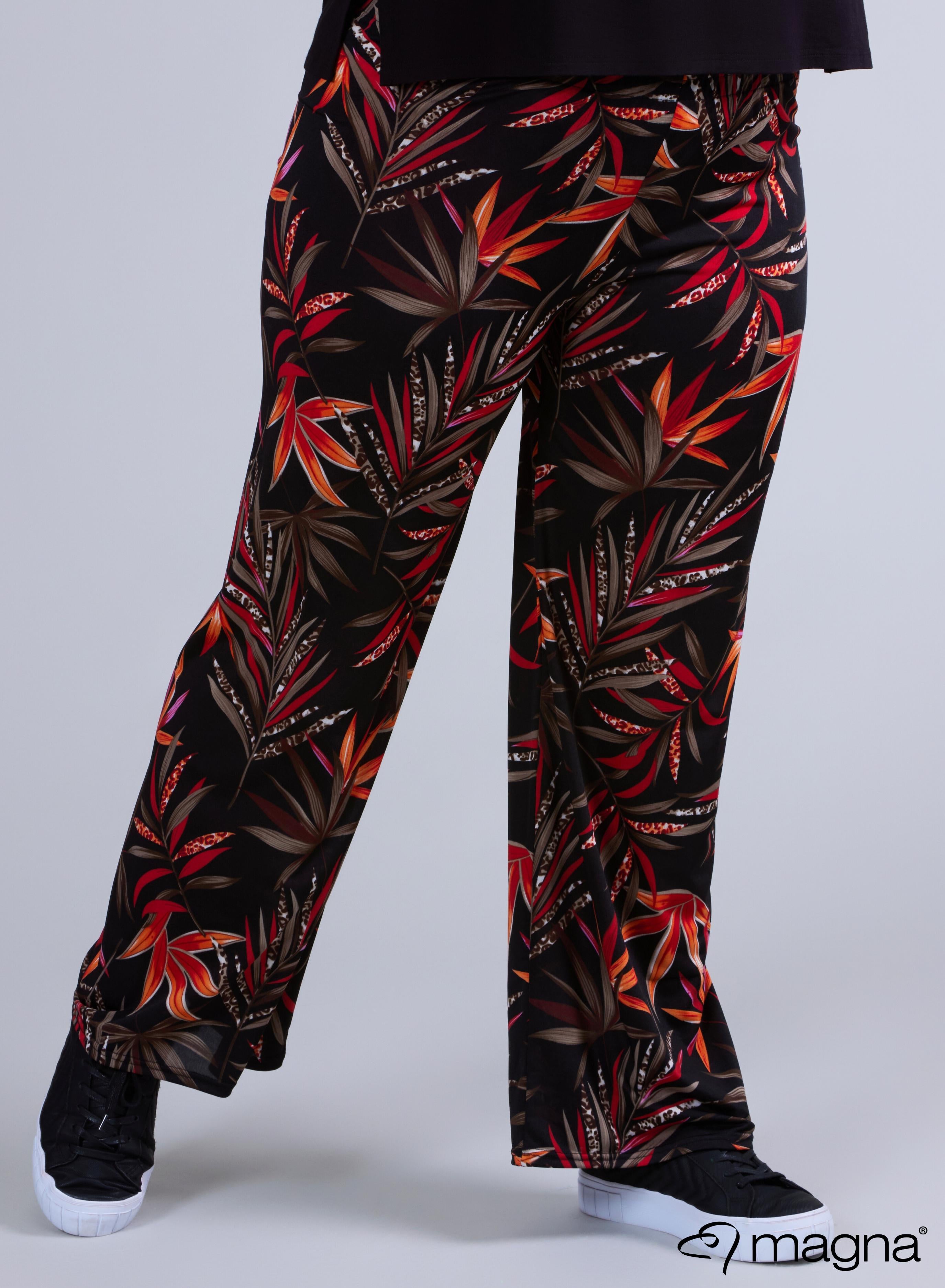 Magna Wide Leg Elastic Trouser Palm Print Petrol
