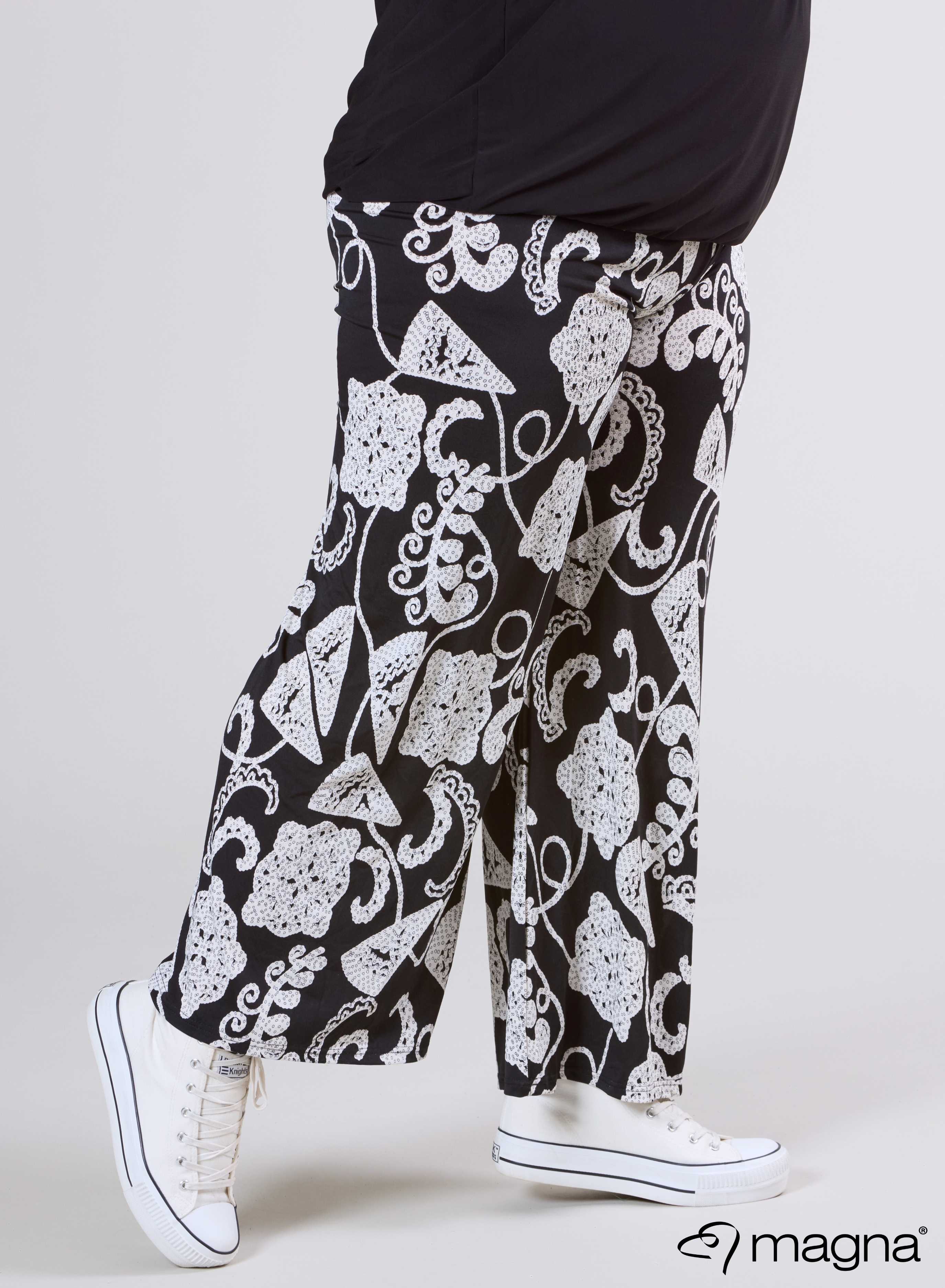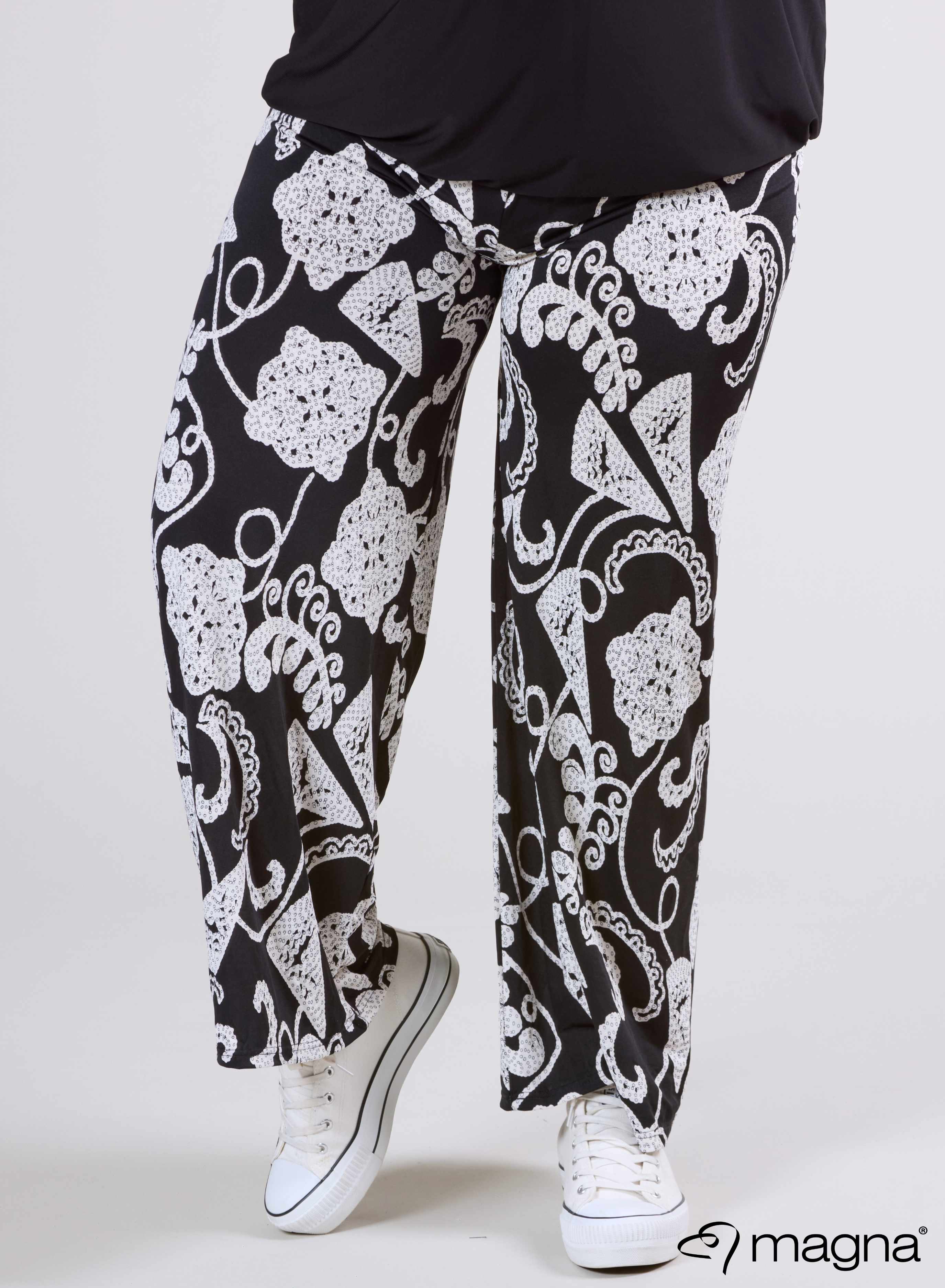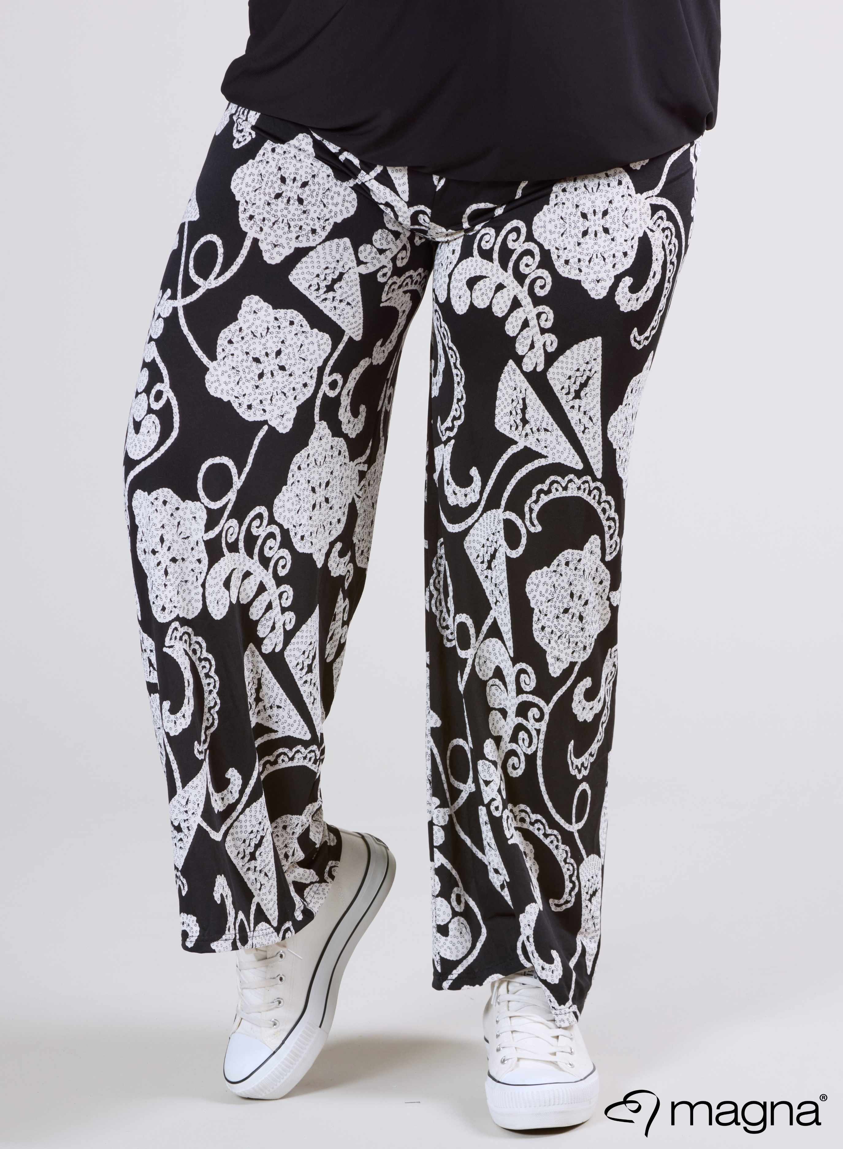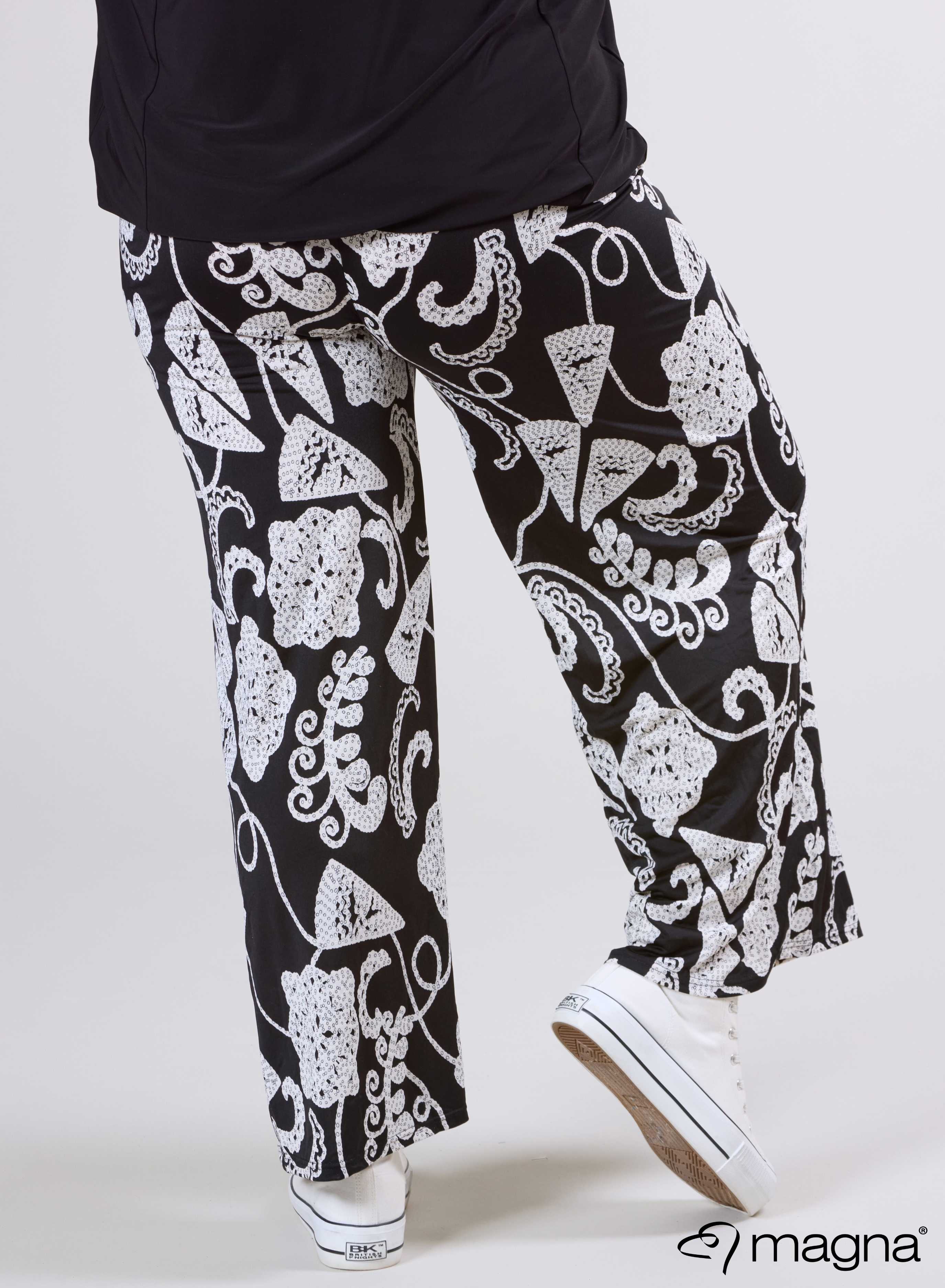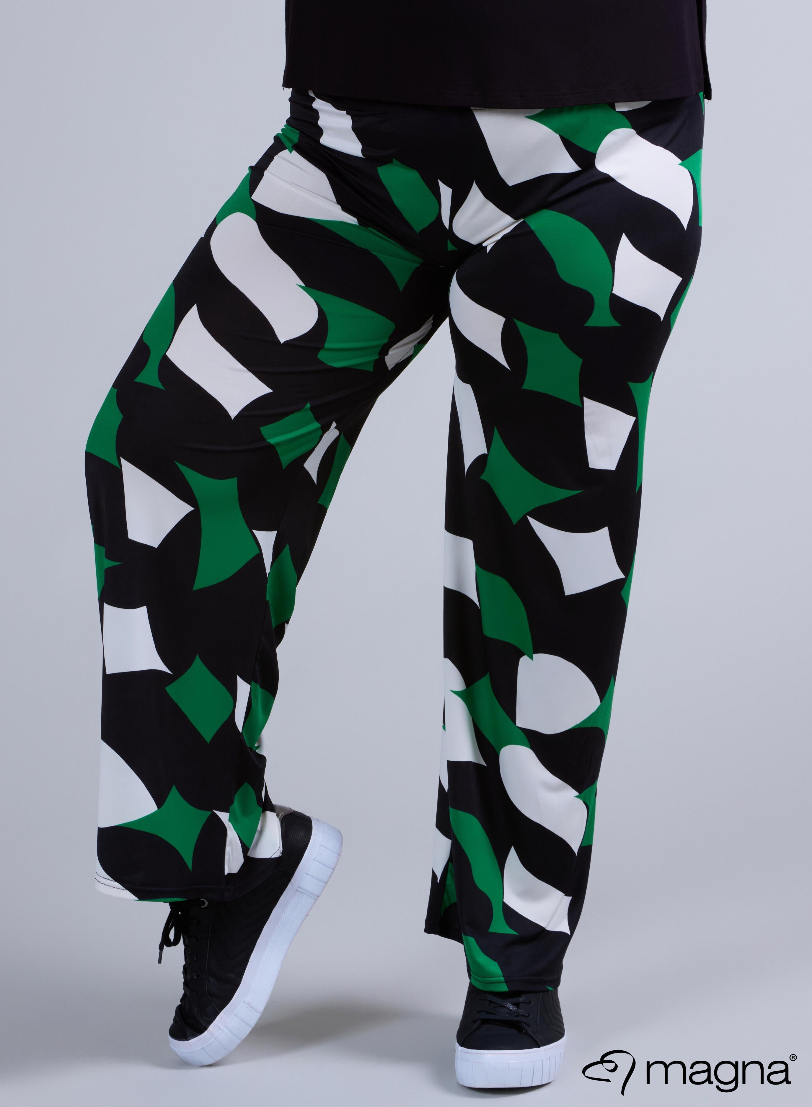 Magna Wide Leg Elastic Trouser Palm Print Petrol