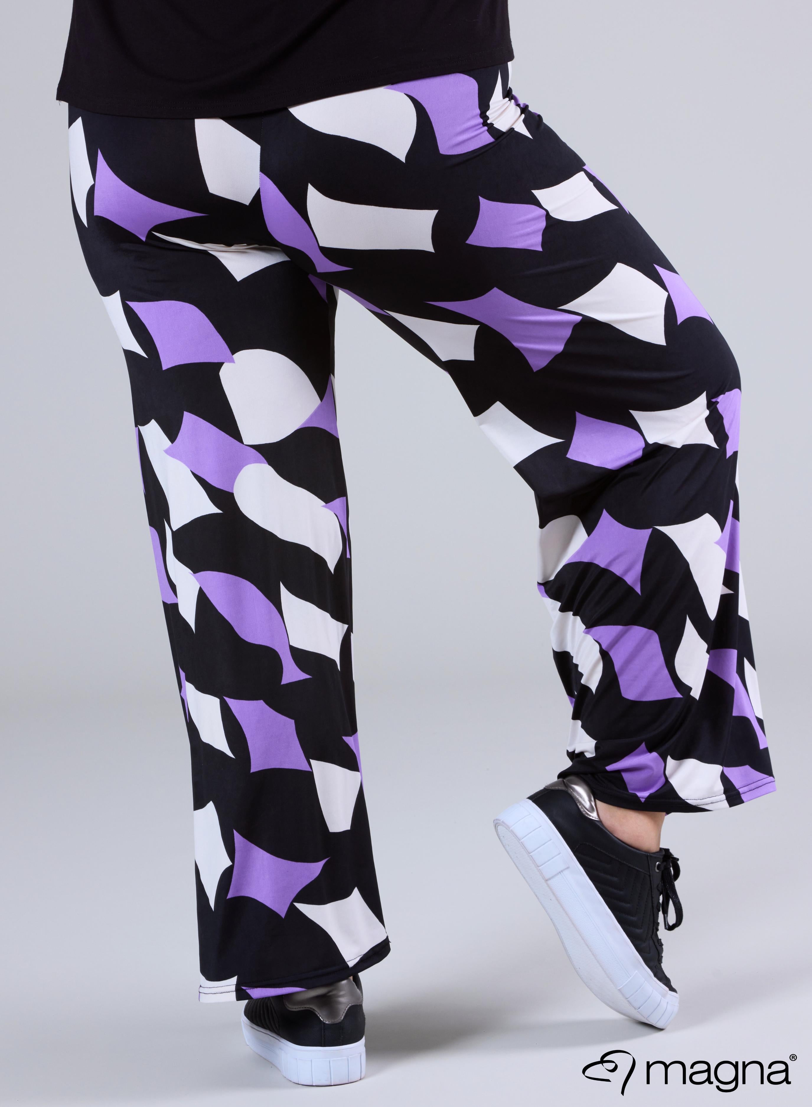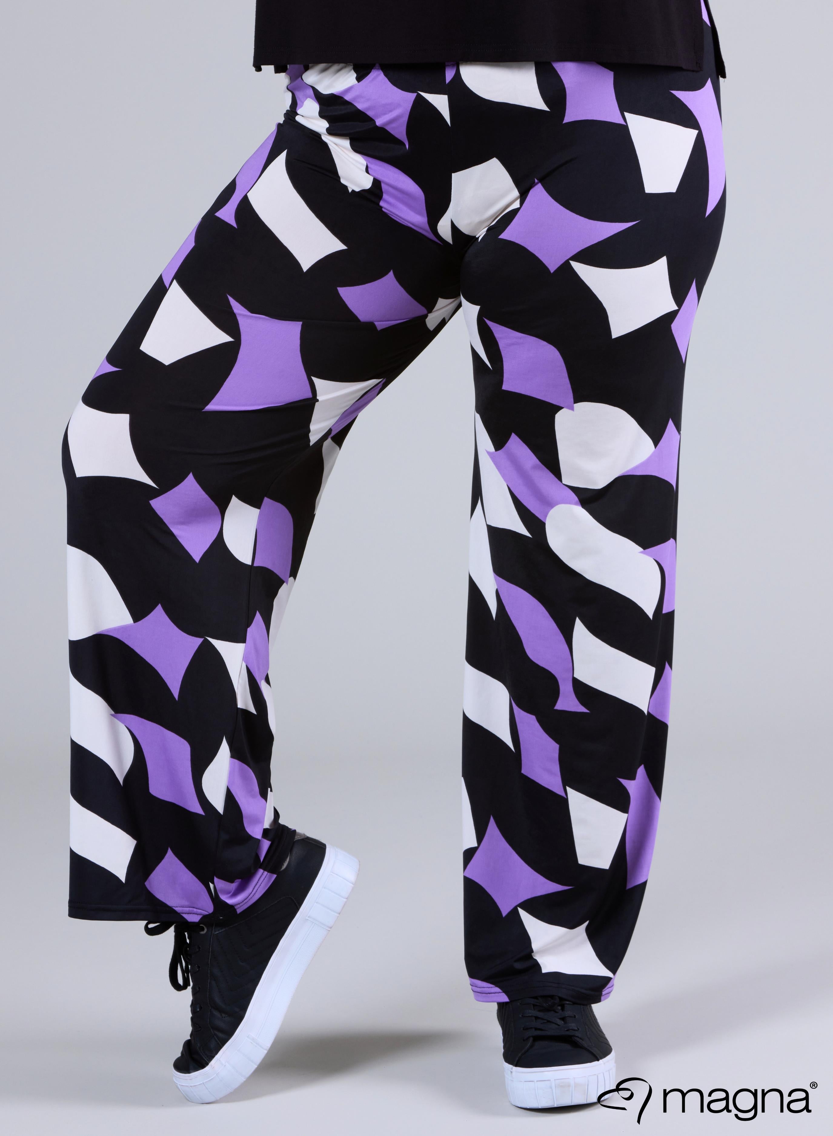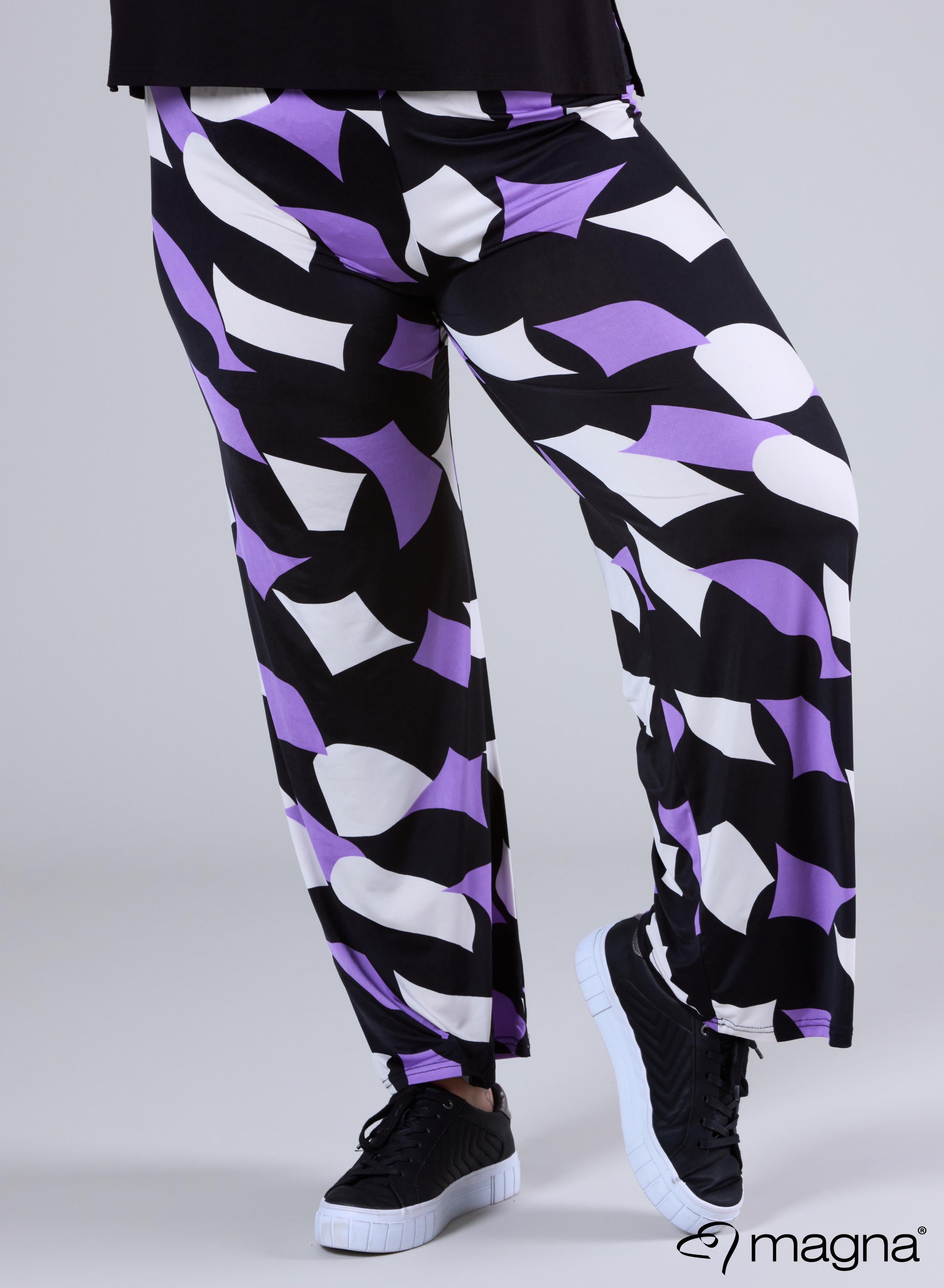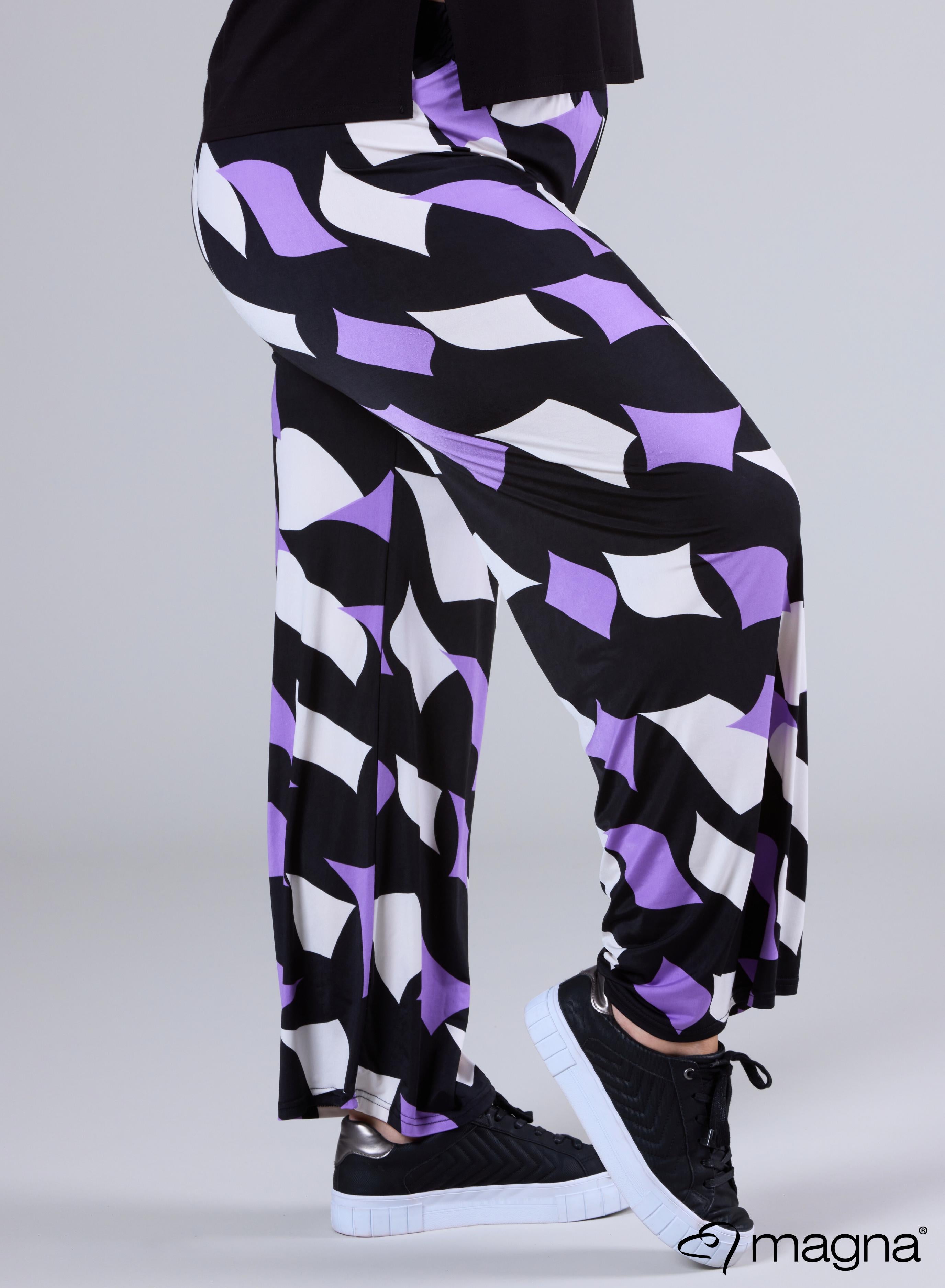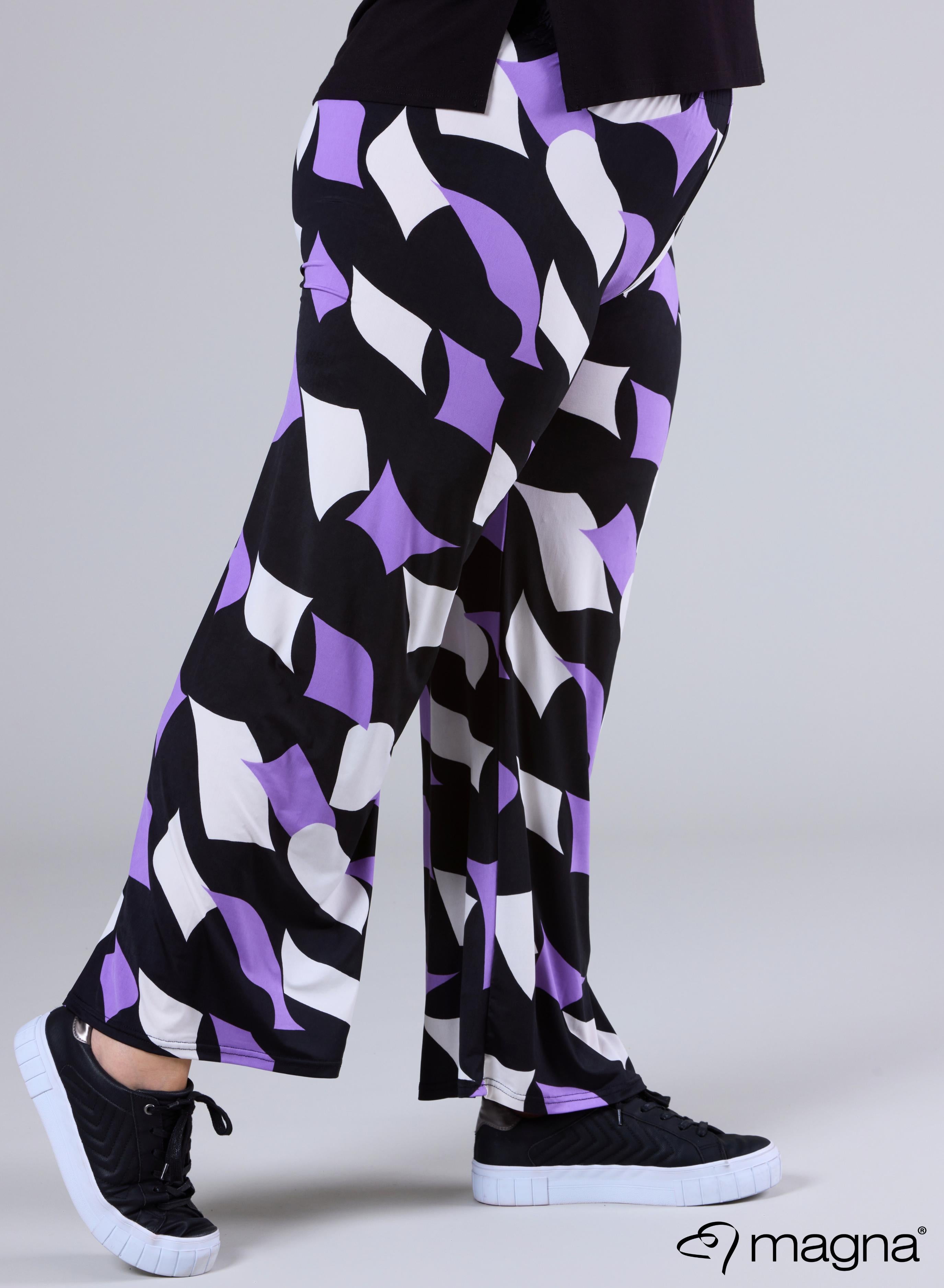 Magna Wide Leg Elastic Trouser Palm Print Purple