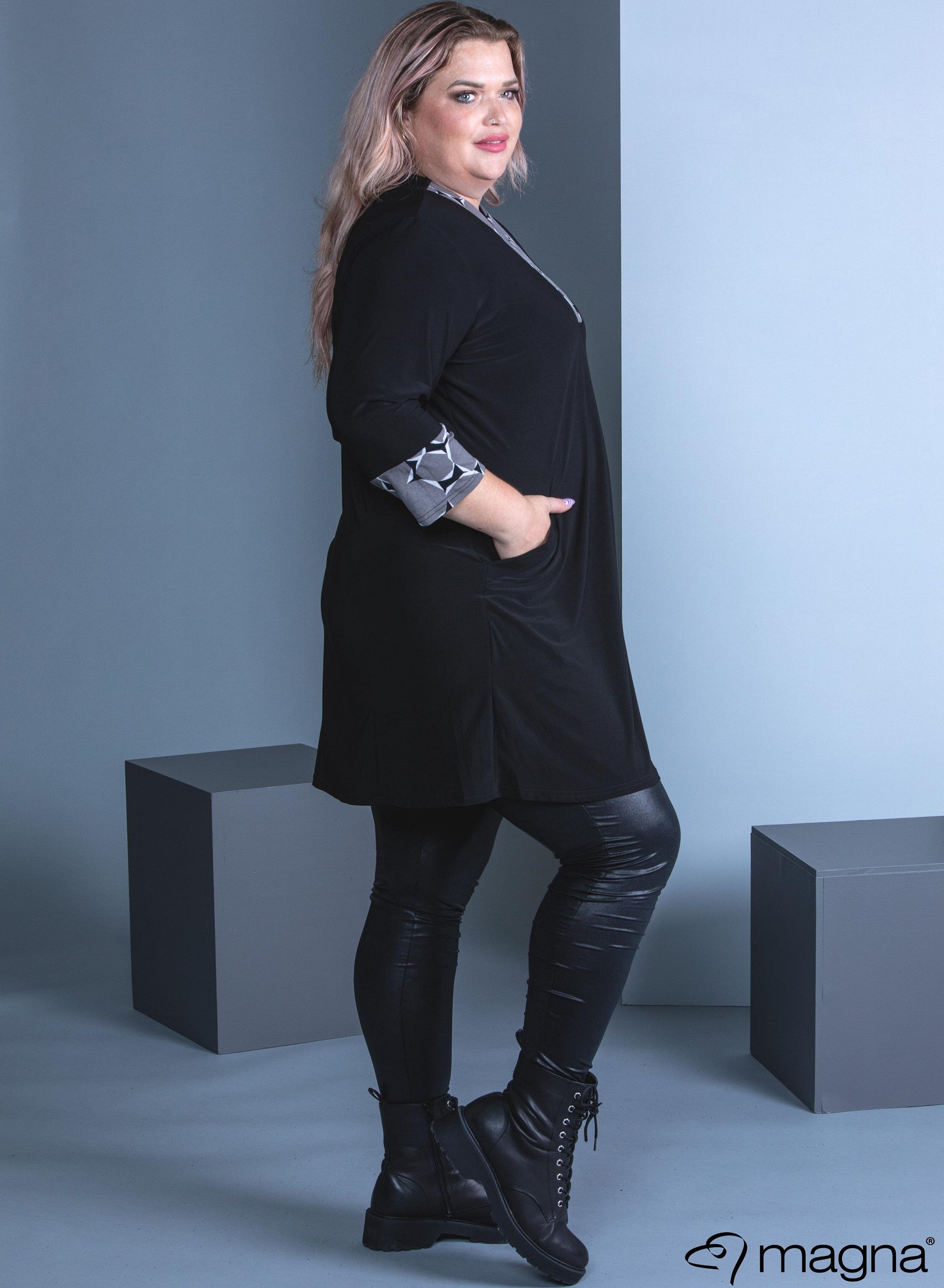 Magna Wide Tunic Leather Combination Textured B/W Print