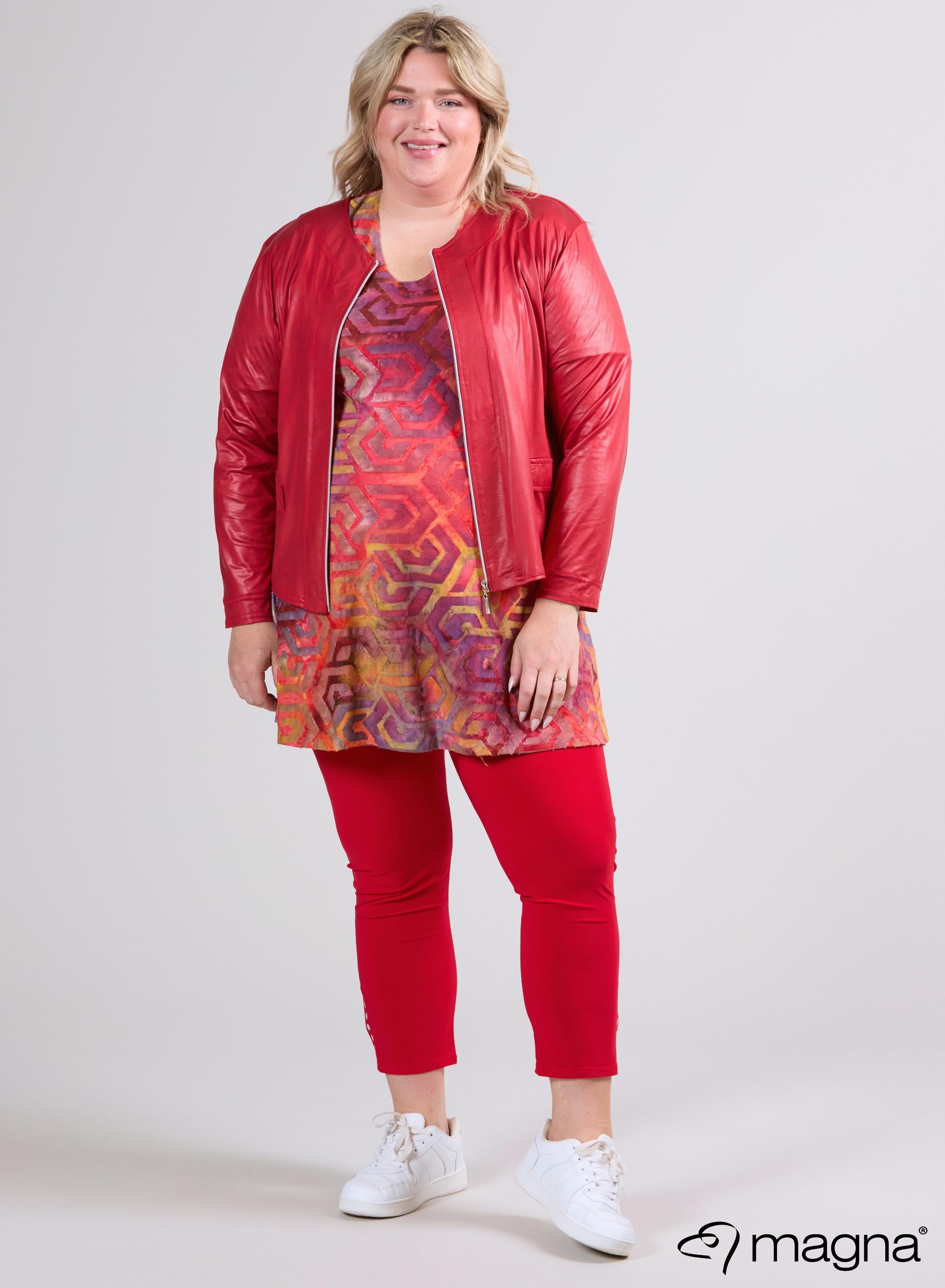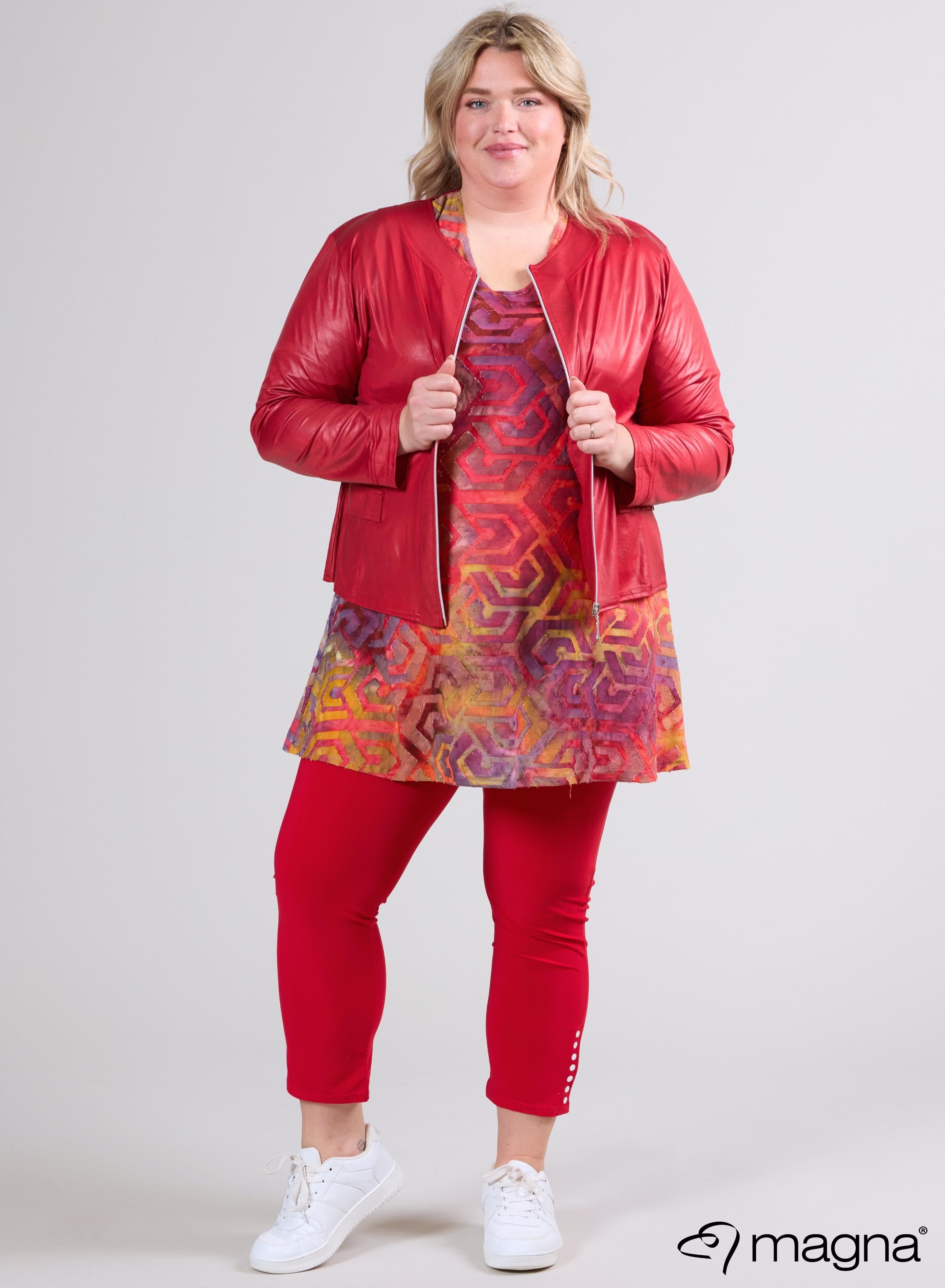 The best-selling Magna Fashion Red Leather Look Jacket is designed specifically for curvy women who value both style and comfort.