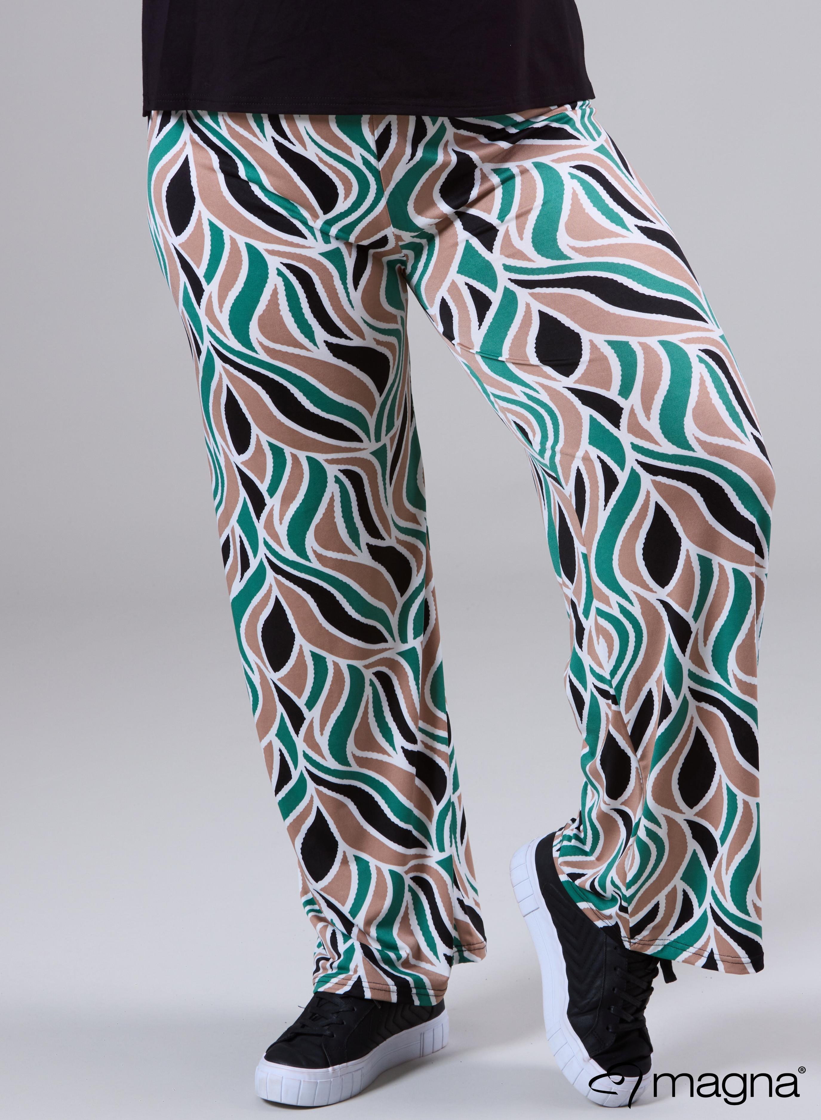 Magna Wide Leg Elastic Trouser Abstract Leaves Sand/Green